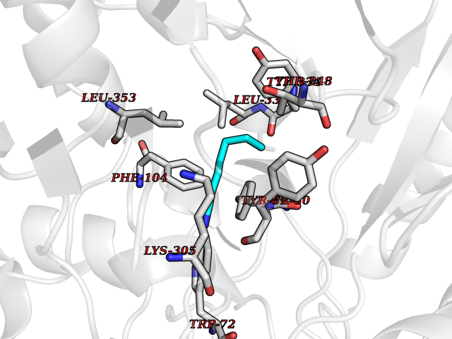 Target general information Gen name AOAH Organism Homo sapiens (Human) Uniprot ID TTD ID Synonyms Acyloxyacyl hydrolase Protein family NA Biochemical class NA Function Removes the secondary (acyloxyacyl-linked) fatty acyl chains from the lipid A region of bacterial lipopolysaccharides. By breaking down LPS, terminates the host response to bacterial infection and prevents prolonged and damaging inflammatory responses (By similarity). In peritoneal macrophages, seems to be important for recovery from a state of immune tolerance following infection by Gram-negative bacteria (By similarity). Related diseases Major depressive disorder (MDD) [MIM:608516]: A common psychiatric disorder. It is a complex trait characterized by one or more major depressive episodes without a history of manic, mixed, or hypomanic episodes. A major depressive episode is characterized by at least 2 weeks during which there is a new onset or clear worsening of either depressed mood or loss of interest or pleasure in nearly all activities. Four additional symptoms must also be present including changes in appetite, weight, sleep, and psychomotor activity; decreased energy; feelings of worthlessness or guilt; difficulty thinking, concentrating, or making decisions; or recurrent thoughts of death or suicidal ideation, plans, or attempts. The episode must be accompanied by distress or impairment in social, occupational, or other important areas of functioning. {ECO:0000269|PubMed:15229186}. Disease susceptibility is associated with variants affecting the gene represented in this entry. Drugs (DrugBank ID) NA Interacts with Q15700 EC number EC 3.1.1.77 Uniprot keywords 3D-structure; Alternative splicing; Calcium; Cytoplasmic vesicle; Direct protein sequencing; Disulfide bond; Glycoprotein; Hydrolase; Lipid metabolism; Metal-binding; Proteomics identification; Reference proteome; Secreted; Signal; Zymogen Protein physicochemical properties Chain ID C Molecular weight (Da) 47779.7 Length 420 Aromaticity 0.1 Instability index 43.45 Isoelectric point 7.72 Charge (pH=7) 2.1 3D Binding mode Sequence GSDICSLPVLAKICQKIKLAMEQSVPFKDVDSDKYSVFPTLRGYHWRGRDCNDSDESVYPGRRPNNWDVHQDSNCNGIWGVDPKDGVPYEKKFCEGSQPRGIILLGDAAGAHFHISPEWITASQMSLNSFINLPTALTNELDWPQLSGATGFLDSTVGIKEKSIYLRLWKRNHCNHRDYQNISRNGASSRNLKKFIESLSRNKVLDYPAIVIYAMIGNDVCSGKSDPVPAMTTPEKLYSNVMQTLKHLNSHLPNGSHVILYGLPDGTFLWDNLHNRYHPLGQLNKDMTYAQLYSFLNCLQVSPCHGWMSSNKTLRTLTSERAEQLSNTLKKIAASEKFTNFNLFYMDFAFHEIIQEWQKRGGQPWQLIEPVDGFHPNEVALLLLADHFWKKVQLQWPQILGKENPFNPQIKQVFGDQGGH Hydrogen bonds contact Hydrophobic contact | ||||