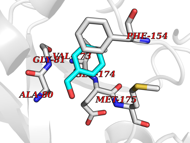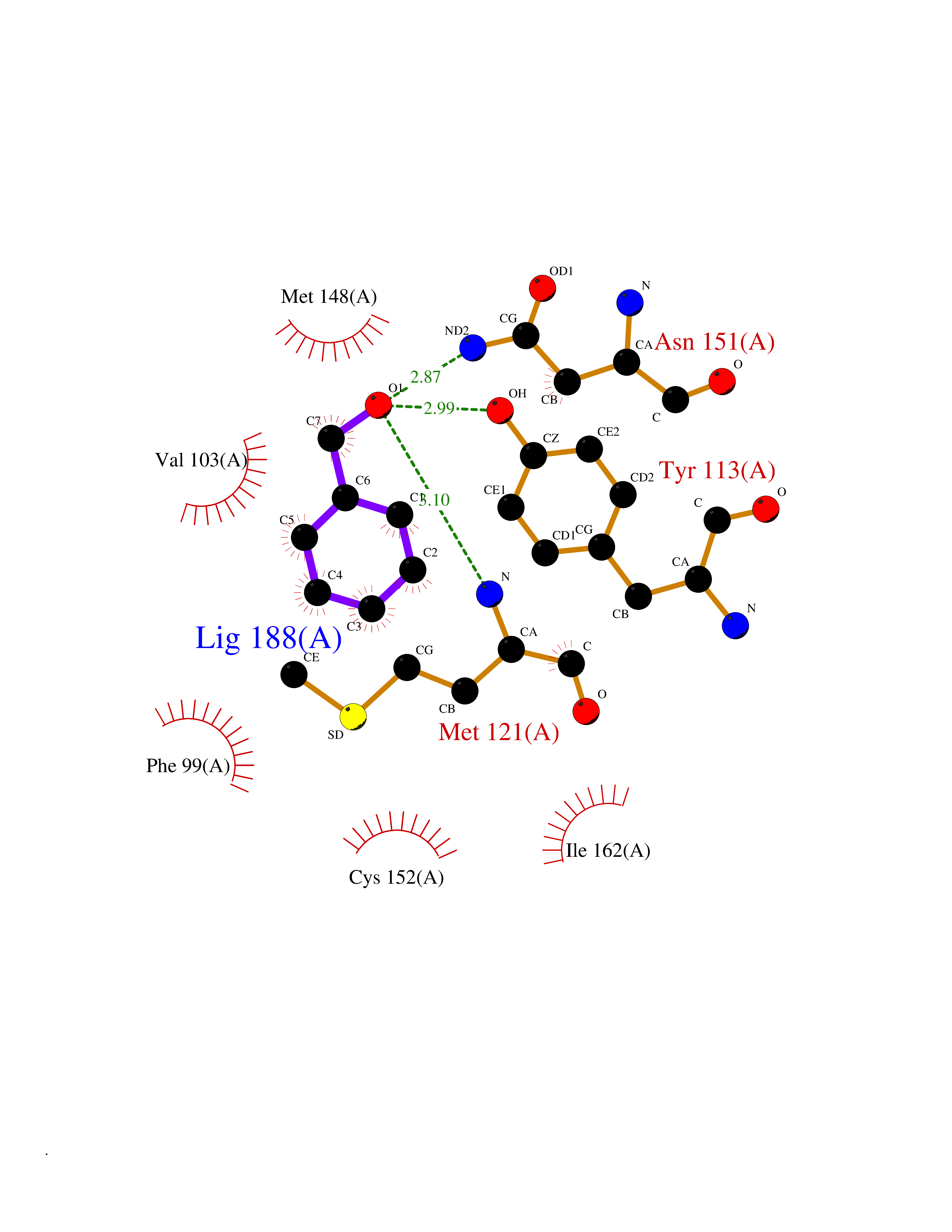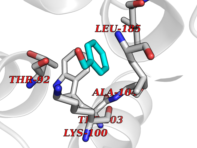 Target general information Gen name PEBP1 Organism Homo sapiens (Human) Uniprot ID TTD ID Synonyms Raf kinase inhibitor protein; RKIP; Prostatic-binding protein; PEBP-1; PEBP; PBP; Neuropolypeptide h3; Hippocampal cholinergic neurostimulating peptide; HCNPpp; HCNP Protein family Phosphatidylethanolamine-binding protein family Biochemical class Phosphatidylethanolamine-binding protein family Function Binds ATP, opioids and phosphatidylethanolamine. Has lower affinity for phosphatidylinositol and phosphatidylcholine. Serine protease inhibitor which inhibits thrombin, neuropsin and chymotrypsin but not trypsin, tissue type plasminogen activator and elastase. Inhibits the kinase activity of RAF1 by inhibiting its activation and by dissociating the RAF1/MEK complex and acting as a competitive inhibitor of MEK phosphorylation. Related diseases Retinitis pigmentosa 49 (RP49) [MIM:613756]: A retinal dystrophy belonging to the group of pigmentary retinopathies. Retinitis pigmentosa is characterized by retinal pigment deposits visible on fundus examination and primary loss of rod photoreceptor cells followed by secondary loss of cone photoreceptors. Patients typically have night vision blindness and loss of midperipheral visual field. As their condition progresses, they lose their far peripheral visual field and eventually central vision as well. {ECO:0000269|PubMed:15570217, ECO:0000269|PubMed:7479749}. The disease is caused by variants affecting the gene represented in this entry. Drugs (DrugBank ID) DB09130; DB09568 Interacts with P16050; Q9NRD5; P04049; Q15208; Q9NS68; Q9JLL3 EC number NA Uniprot keywords 3D-structure; ATP-binding; Cytoplasm; Direct protein sequencing; Disulfide bond; Lipid-binding; Nucleotide-binding; Phosphoprotein; Protease inhibitor; Proteomics identification; Reference proteome; Serine protease inhibitor Protein physicochemical properties Chain ID A Molecular weight (Da) 20928.3 Length 186 Aromaticity 0.1 Instability index 24.05 Isoelectric point 6.59 Charge (pH=7) -0.98 3D Binding mode Sequence MPVDLSKWSGPLSLQEVDEQPQHPLHVTYAGAAVDELGKVLTPTQVKNRPTSISWDGLDSGKLYTLVLTDPDAPSRKDPKYREWHHFLVVNMKGNDISSGTVLSDYVGSGPPKGTGLHRYVWLVYEQDRPLKCDEPILSNRSGDHRGKFKVASFRKKYELRAPVAGTCYQAEWDDYVPKLYEQLSG Hydrogen bonds contact Hydrophobic contact | ||||