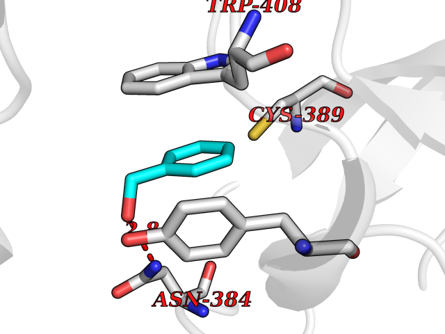 Target general information Gen name HELPY mtnN Organism Helicobacter pylori (strain ATCC 700392 / 26695) (Campylobacter pylori) Uniprot ID TTD ID Synonyms MTAN; MTA/SAH nucleosidase; Aminofutalosine nucleosidase; Aminodeoxyfutalosine nucleosidase; AFL nucleosidase; 6-amino-6-deoxyfutalosine N-ribosylhydrolase; 5'-methylthioadenosine/S-adenosylhomocystei Protein family PNP/UDP phosphorylase family Biochemical class NA Function Catalyzes the direct conversion of aminodeoxyfutalosine (AFL) into dehypoxanthine futalosine (DHFL) and adenine via the hydrolysis of the N-glycosidic bond; this reaction seems to represent an essential step in the menaquinone biosynthesis pathway in Helicobacter species. Can also probably catalyzes the hydrolysis of 5'-methylthioadenosine (MTA) and S-adenosylhomocysteine (SAH) to adenine and the corresponding thioribose, 5'-methylthioribose and S-ribosylhomocysteine, respectively. These other activities highlight the tremendous versatility of the enzyme, which also plays key roles in S-adenosylmethionine recycling and in the biosynthesis of the quorum-sensing molecule autoinducer-2. Does not act on futalosine (FL) as substrate. Related diseases Progressive familial heart block 1B (PFHB1B) [MIM:604559]: A cardiac bundle branch disorder characterized by progressive alteration of cardiac conduction through the His-Purkinje system, with a pattern of a right bundle-branch block and/or left anterior hemiblock occurring individually or together. It leads to complete atrio-ventricular block causing syncope and sudden death. {ECO:0000269|PubMed:19726882, ECO:0000269|PubMed:20562447, ECO:0000269|PubMed:21887725}. The disease is caused by variants affecting the gene represented in this entry.; DISEASE: Erythrokeratodermia variabilis et progressiva 6 (EKVP6) [MIM:618531]: A form of erythrokeratodermia variabilis et progressiva, a genodermatosis characterized by the coexistence of two independent skin lesions: transient erythema and hyperkeratosis that is usually localized but occasionally occurs in its generalized form. Clinical presentation varies significantly within a family and from one family to another. Palmoplantar keratoderma is present in around 50% of cases. EKVP6 inheritance is autosomal dominant. {ECO:0000269|PubMed:30528822}. The disease is caused by variants affecting the gene represented in this entry. Drugs (DrugBank ID) NA Interacts with NA EC number NA Uniprot keywords 3D-structure; Amino-acid biosynthesis; Hydrolase; Menaquinone biosynthesis; Methionine biosynthesis; Reference proteome Protein physicochemical properties Chain ID A,B Molecular weight (Da) 50547.6 Length 464 Aromaticity 0.08 Instability index 26.92 Isoelectric point 5.13 Charge (pH=7) -20.92 3D Binding mode Sequence VQKIGILGAMREEITPILELFGVDFEEIPLGGNVFHKGVYHNKEIIVAYSKIGKVHSTLTTTSMILAFGVQKVLFSGVAGSLVKDLKINDLLVAIQLVQHDVDLSAFDHPLGFIPESAIFIETSESLNALAKEVANEQHIVLKEGVIASGDQFVHSKERKEFLVSEFKASAVEMEGASVAFVCQKFGVPCCVLRSISNNADEEANMSFDAFLEKSAQTSAKFLKSMVDELGSHMVQKIGILGAMREEITPILELFGVDFEEIPLGGNVFHKGVYHNKEIIVAYSKIGKVHSTLTTTSMILAFGVQKVLFSGVAGSLVKDLKINDLLVAIQLVQHDVDLSAFDHPLGFIPESAIFIETSESLNALAKEVANEQHIVLKEGVIASGDQFVHSKERKEFLVSEFKASAVEMEGASVAFVCQKFGVPCCVLRSISNNADEEANMSFDAFLEKSAQTSAKFLKSMVDEL Hydrogen bonds contact Hydrophobic contact | ||||