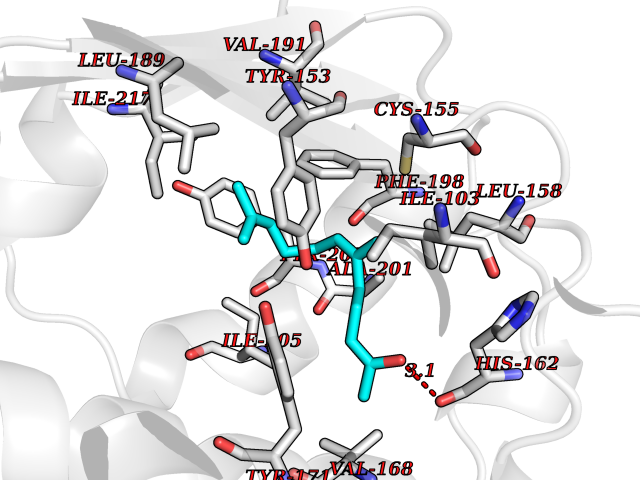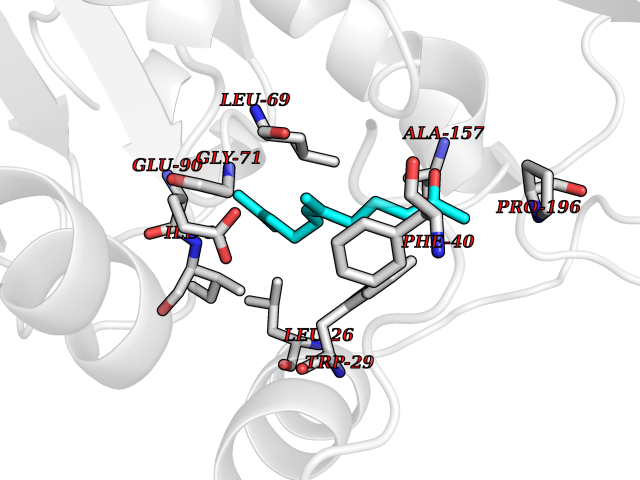 Target general information Gen name PNMT Organism Homo sapiens (Human) Uniprot ID TTD ID Synonyms PNMTase; PENT; Noradrenaline N-methyltransferase Protein family Class I-like SAM-binding methyltransferase superfamily, NNMT/PNMT/TEMT family Biochemical class NA Function Converts noradrenaline to adrenaline. Related diseases A chromosomal aberration involving TRIM24/TIF1 is found in papillary thyroid carcinomas (PTCs). Translocation t(7;10)(q32;q11) with RET. The translocation generates the TRIM24/RET (PTC6) oncogene. {ECO:0000269|PubMed:10439047}. Drugs (DrugBank ID) DB08129; DB08128; DB07739; DB07798; DB07747; DB03468; DB08550; DB03824; DB04273; DB07906; DB07597; DB09571; DB00968; DB08631; DB01752; DB08654 Interacts with Q9P2G9-2; Q8TBB1 EC number EC 2.1.1.28 Uniprot keywords 3D-structure; Catecholamine biosynthesis; Direct protein sequencing; Methyltransferase; Phosphoprotein; Proteomics identification; Reference proteome; S-adenosyl-L-methionine; Transferase Protein physicochemical properties Chain ID A Molecular weight (Da) 29198.9 Length 264 Aromaticity 0.09 Instability index 54.33 Isoelectric point 5.91 Charge (pH=7) -3.69 3D Binding mode Sequence APGQAAVASAYQRFEPRAYLRNNYAPPRGDLCNPNGVGPWKLRCLAQTFATGEVSGRTLIDIGSGPTVYQLLSACSHFEDITMTDFLEVNRQELGRWLQEEPGAFNWSMYSQHACLIEGKGECWQDKERQLRARVKRVLPIDVHQPQPLGAGSPAPLPADALVSAFCLEAVSPDLASFQRALDHITTLLRPGGHLLLIGALEESWYLAGEARLTVVPVSEEEVREALVRSGYKVRDLRTYIMPAHLQTGVDDVKGVFFAWAQKV Hydrogen bonds contact Hydrophobic contact | ||||