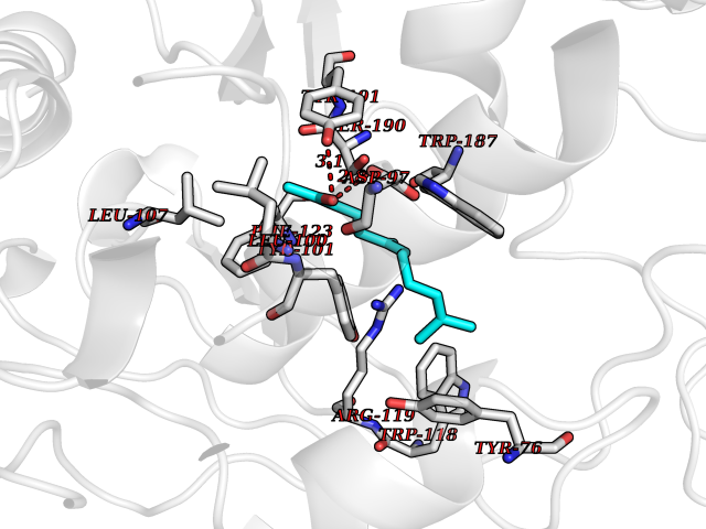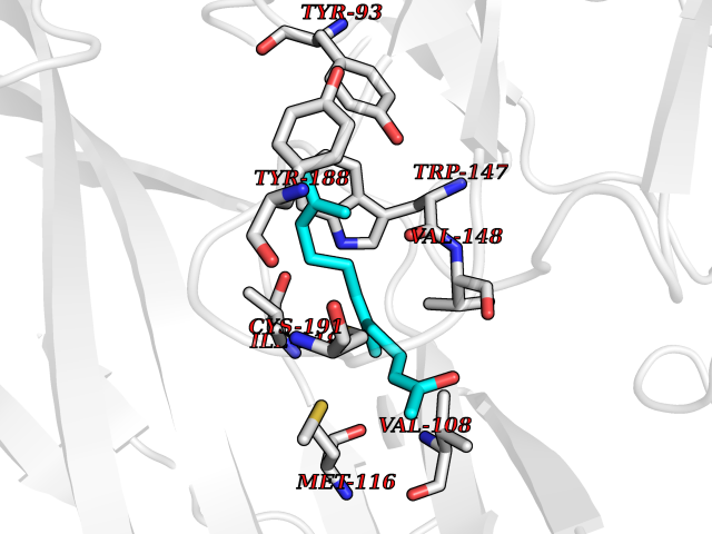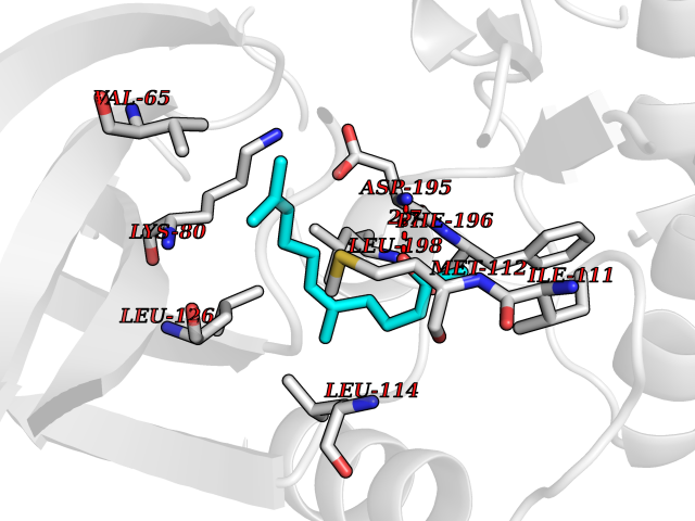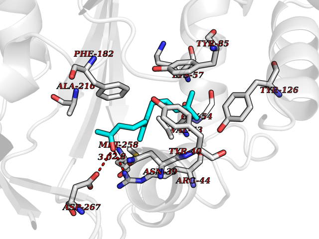 Target general information Gen name AOAH Organism Homo sapiens (Human) Uniprot ID TTD ID Synonyms Acyloxyacyl hydrolase Protein family NA Biochemical class NA Function Removes the secondary (acyloxyacyl-linked) fatty acyl chains from the lipid A region of bacterial lipopolysaccharides. By breaking down LPS, terminates the host response to bacterial infection and prevents prolonged and damaging inflammatory responses (By similarity). In peritoneal macrophages, seems to be important for recovery from a state of immune tolerance following infection by Gram-negative bacteria (By similarity). Related diseases Major depressive disorder (MDD) [MIM:608516]: A common psychiatric disorder. It is a complex trait characterized by one or more major depressive episodes without a history of manic, mixed, or hypomanic episodes. A major depressive episode is characterized by at least 2 weeks during which there is a new onset or clear worsening of either depressed mood or loss of interest or pleasure in nearly all activities. Four additional symptoms must also be present including changes in appetite, weight, sleep, and psychomotor activity; decreased energy; feelings of worthlessness or guilt; difficulty thinking, concentrating, or making decisions; or recurrent thoughts of death or suicidal ideation, plans, or attempts. The episode must be accompanied by distress or impairment in social, occupational, or other important areas of functioning. {ECO:0000269|PubMed:15229186}. Disease susceptibility is associated with variants affecting the gene represented in this entry. Drugs (DrugBank ID) NA Interacts with Q15700 EC number EC 3.1.1.77 Uniprot keywords 3D-structure; Alternative splicing; Calcium; Cytoplasmic vesicle; Direct protein sequencing; Disulfide bond; Glycoprotein; Hydrolase; Lipid metabolism; Metal-binding; Proteomics identification; Reference proteome; Secreted; Signal; Zymogen Protein physicochemical properties Chain ID C Molecular weight (Da) 47779.7 Length 420 Aromaticity 0.1 Instability index 43.45 Isoelectric point 7.72 Charge (pH=7) 2.1 3D Binding mode Sequence GSDICSLPVLAKICQKIKLAMEQSVPFKDVDSDKYSVFPTLRGYHWRGRDCNDSDESVYPGRRPNNWDVHQDSNCNGIWGVDPKDGVPYEKKFCEGSQPRGIILLGDAAGAHFHISPEWITASQMSLNSFINLPTALTNELDWPQLSGATGFLDSTVGIKEKSIYLRLWKRNHCNHRDYQNISRNGASSRNLKKFIESLSRNKVLDYPAIVIYAMIGNDVCSGKSDPVPAMTTPEKLYSNVMQTLKHLNSHLPNGSHVILYGLPDGTFLWDNLHNRYHPLGQLNKDMTYAQLYSFLNCLQVSPCHGWMSSNKTLRTLTSERAEQLSNTLKKIAASEKFTNFNLFYMDFAFHEIIQEWQKRGGQPWQLIEPVDGFHPNEVALLLLADHFWKKVQLQWPQILGKENPFNPQIKQVFGDQGGH Hydrogen bonds contact Hydrophobic contact | ||||