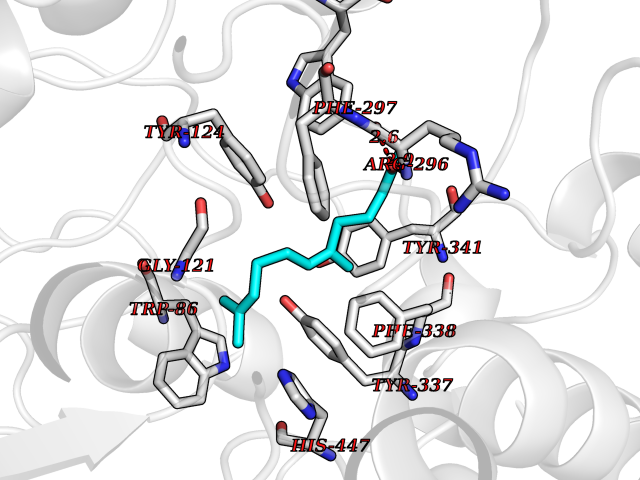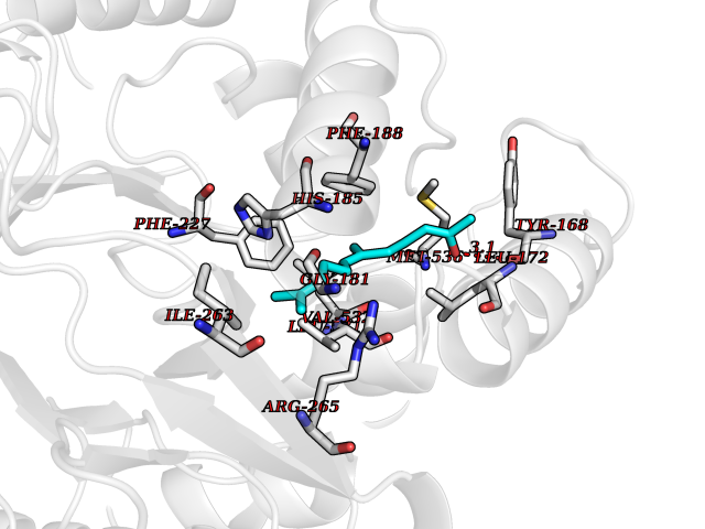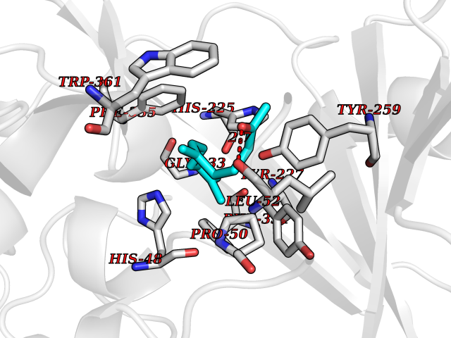 Target general information Gen name ACHE Organism Homo sapiens (Human) Uniprot ID TTD ID Synonyms YT; N-ACHE; ARACHE Protein family Type-B carboxylesterase/lipase family Biochemical class Carboxylic ester hydrolase Function Role in neuronal apoptosis. Terminates signal transduction at the neuromuscular junction by rapid hydrolysis of the acetylcholine released into the synaptic cleft. Related diseases Phosphoribosylaminoimidazole carboxylase deficiency (PAICSD) [MIM:619859]: An autosomal recessive inborn error of purine metabolism, clinically characterized by multiple congenital anomalies and early neonatal death. {ECO:0000269|PubMed:31600779}. The disease is caused by variants affecting the gene represented in this entry. Drugs (DrugBank ID) DB07846; DB02673; DB04617; DB04614; DB04615; DB07756; DB07701; DB02404; DB03814; DB08615; DB02343; DB02226; DB03005; DB04114; DB03128; DB01122; DB03283; DB00411; DB00122; DB14006; DB01245; DB00944; DB08357; DB08996; DB00449; DB00843; DB01010; DB01364; DB00898; DB00674; DB00483; DB06525; DB04864; DB03348; DB07555; DB00677; DB04924; DB03359; DB00358; DB00940; DB02825; DB02845; DB08167; DB04021; DB00805; DB01805; DB03740; DB04556; DB01400; DB04892; DB00981; DB00733; DB02166; DB00545; DB00863; DB00989; DB00382; DB04616; DB12816; DB01199; DB13503; DB04859 Interacts with Q9Y215; P06733; P63244 EC number EC 3.1.1.7 Uniprot keywords 3D-structure; Alternative splicing; Blood group antigen; Cell membrane; Direct protein sequencing; Disulfide bond; Glycoprotein; GPI-anchor; Hydrolase; Lipoprotein; Membrane; Neurotransmitter degradation; Nucleus; Proteomics identification; Reference proteome; Secreted; Serine esterase; Signal; Synapse Protein physicochemical properties Chain ID A,B Molecular weight (Da) 58804.1 Length 537 Aromaticity 0.11 Instability index 40.85 Isoelectric point 5.73 Charge (pH=7) -8.18 3D Binding mode Sequence EDAELLVTVRGGRLRGIRLKTPGGPVSAFLGIPFAEPPMGPRRFLPPEPKQPWSGVVDATTFQSVCYQYVDTLYPGFEGTEMWNPNRELSEDCLYLNVWTPYPRPTSPTPVLVWIYGGGFYSGASSLDVYDGRFLVQAERTVLVSMNYRVGAFGFLALPGSREAPGNVGLLDQRLALQWVQENVAAFGGDPTSVTLFGESAGAASVGMHLLSPPSRGLFHRAVLQSGAPNGPWATVGMGEARRRATQLAHLVGCPPGGTGGNDTELVACLRTRPAQVLVNHEWHVLPQESVFRFSFVPVVDGDFLSDTPEALINAGDFHGLQVLVGVVKDEGSYFLVYGAPGFSKDNESLISRAEFLAGVRVGVPQVSDLAAEAVVLHYTDWLHPEDPARLREALSDVVGDHNVVCPVAQLAGRLAAQGARVYAYVFEHRASTLSWPLWMGVPHGYEIEFIFGIPLDPSRNYTAEEKIFAQRLMRYWANFARTGDPNEPPKAPQWPPYTAGAQQYVSLDLRPLEVRRGLRAQACAFWNRFLPKLLSA Hydrogen bonds contact Hydrophobic contact | ||||