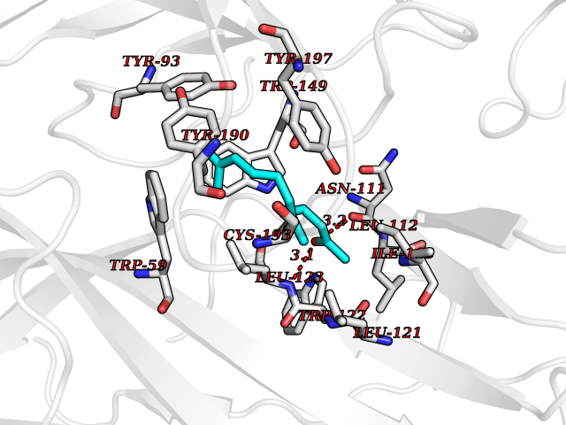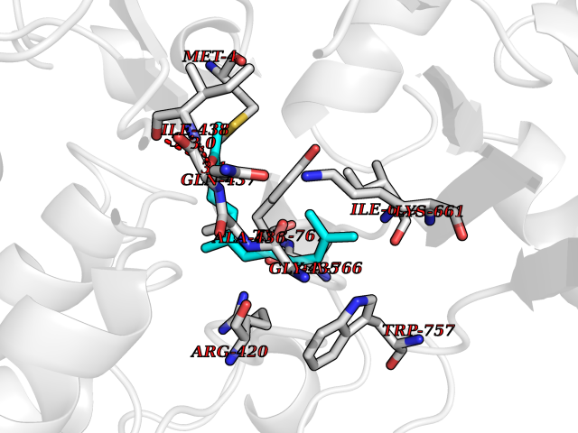 Target general information Gen name CHRNA3-CHRNB4 Organism Homo sapiens (Human) Uniprot ID TTD ID Synonyms Neuronal acetylcholine receptor Protein family Ligand-gated ion channel (TC 1.A.9) family, Acetylcholine receptor (TC 1.A.9.1) subfamily, Alpha-3/CHRNA3 sub-subfamily Biochemical class Neurotransmitter receptor Function A type of nicotinic acetylcholine receptor, consisting of 3 and 4 subunits. Related diseases Bladder dysfunction, autonomic, with impaired pupillary reflex and secondary CAKUT (BAIPRCK) [MIM:191800]: An autosomal recessive disease characterized by impaired innervation and autonomic dysfunction of the urinary bladder, hydronephrosis, vesicoureteral reflux, small kidneys, recurrent urinary tract infections, and progressive renal insufficiency. Additional autonomic features are impaired pupillary reflex and orthostatic hypotension. The disease manifests in utero or early childhood. {ECO:0000269|PubMed:31708116}. The disease is caused by variants affecting the gene represented in this entry. Drugs (DrugBank ID) DB00915; DB01156; DB00237; DB00565; DB09028; DB00514; DB07720; DB00898; DB00472; DB05710; DB01227; DB00848; DB00333; DB00184; DB01090; DB00202; DB01273 Interacts with NA EC number NA Uniprot keywords 3D-structure; Alternative splicing; Cell membrane; Disease variant; Disulfide bond; Endoplasmic reticulum; Glycoprotein; Golgi apparatus; Ion channel; Ion transport; Ligand-gated ion channel; Membrane; Phosphoprotein; Postsynaptic cell membrane; Proteomics identification; Receptor; Reference proteome; Signal; Synapse; Transmembrane; Transmembrane helix; Transport; Ubl conjugation Protein physicochemical properties Chain ID A,B Molecular weight (Da) 89661.2 Length 775 Aromaticity 0.12 Instability index 35.11 Isoelectric point 6.07 Charge (pH=7) -5.67 3D Binding mode Sequence SEAEHRLFERLFEDYNEIIRPVANVSDPVIIHFEVSMSQLVKVDEVNQIMETNLWLKQIWNDYKLKWNPSDYGGAEFMRVPAQKIWKPDIVLYNNAVGDFQVDDKTKALLKYTGEVTWIPPAIFKSSCKIDVTYFPFDYQNCTMKFGSWSYDKAKIDLVLIGSSMNLKDYWESGEWAIIKAPGYKHDIKYNCCEEIYPDITYSLYIRRLPLFYTINLIIPCLLISFLTVLVFYLPSDCGEKVTLCISVLLSLTVFLLVITETIPSTSLVIPLIGEYLLFTMIFVTLSIVITVFVLNVHYRTPTTHTMPSWVKTVFLNLLPRVMFMTRIKEAIQSVKYIAENMKAQNEAKEIQDDWKYVAMVIDRIFLWVFTLVCILGTAGLFLQPLMRVANAEEKLMDDLLNKTRYNNLIRPATSSSQLISIKLQLSLAQLISVNEREQIMTTNVWLKQEWTDYRLTWNSSRYEGVNILRIPAKRIWLPDIVLYNNADGTYEVSVYTNLIVRSNGSVLWLPPAIYKSACKIEVKYFPFDQQNCTLKFRSWTYDHTEIDMVLMTPTASMDDFTPSGEWDIVALPGRRTVNPQDPSYVDVTYDFIIKRKPLFYTINLIIPCVLTTLLAILVFYLPSDCGEKMTLCISVLLALTFFLLLISKIVPPTSLDVPLIGKYLMFTMVLVTFSIVTSVCVLNVHHRSPSTHTMAPWVKRCFLHKLPTFLFMKRRQDVQEALEGVSFIAQHMKNDDEDQSVVEDWKYVAMVVDRLFLWVFMFVCVLGTVGLFLP Hydrogen bonds contact Hydrophobic contact | ||||