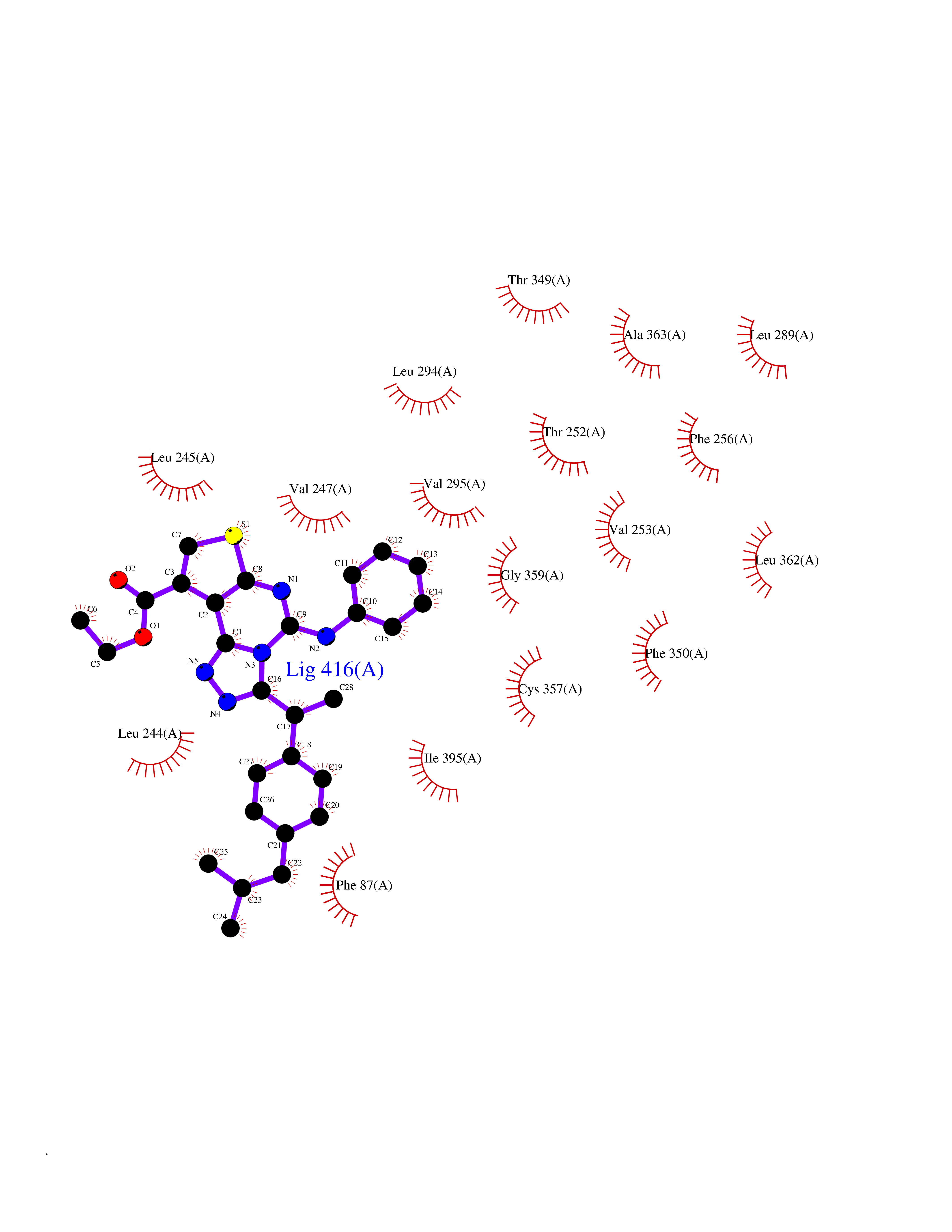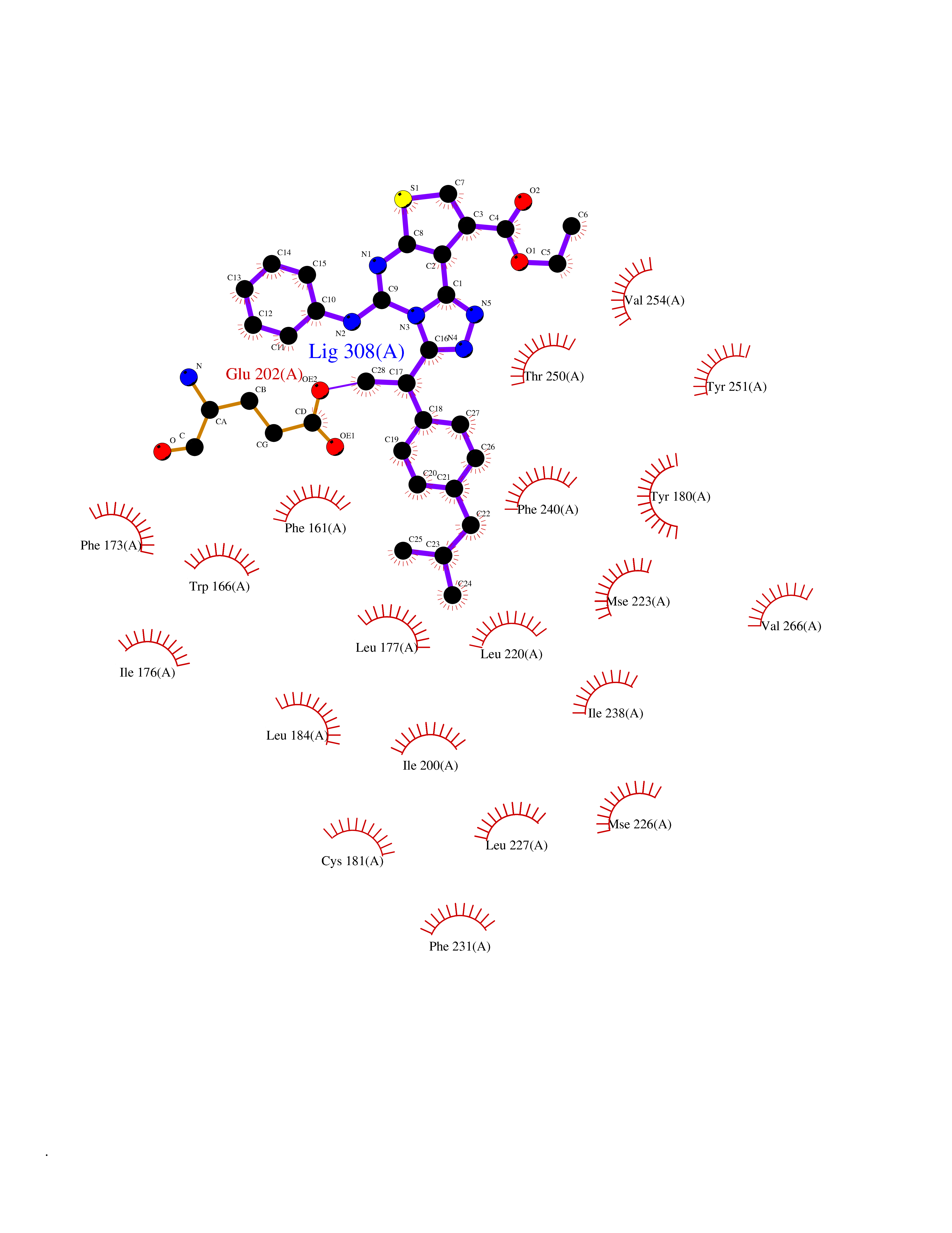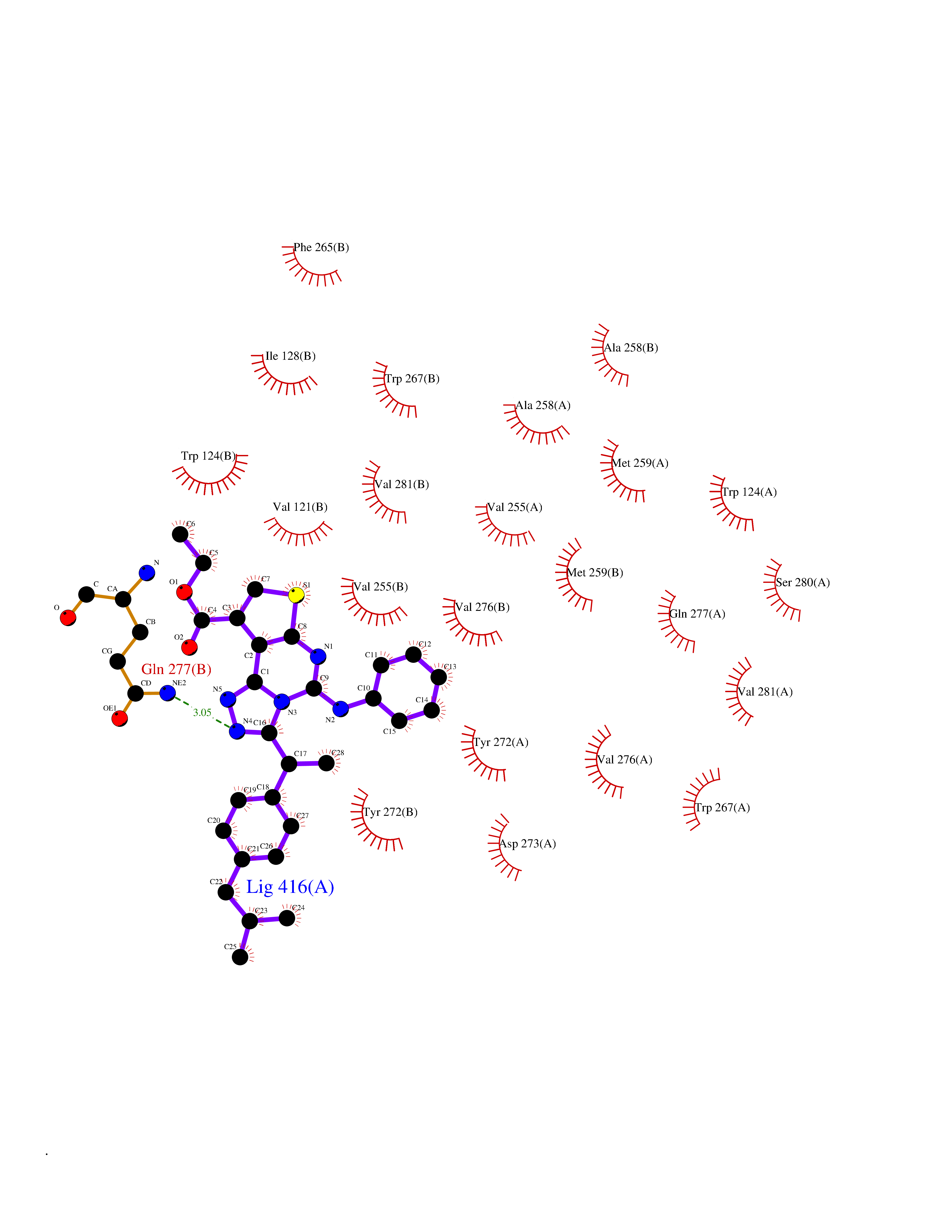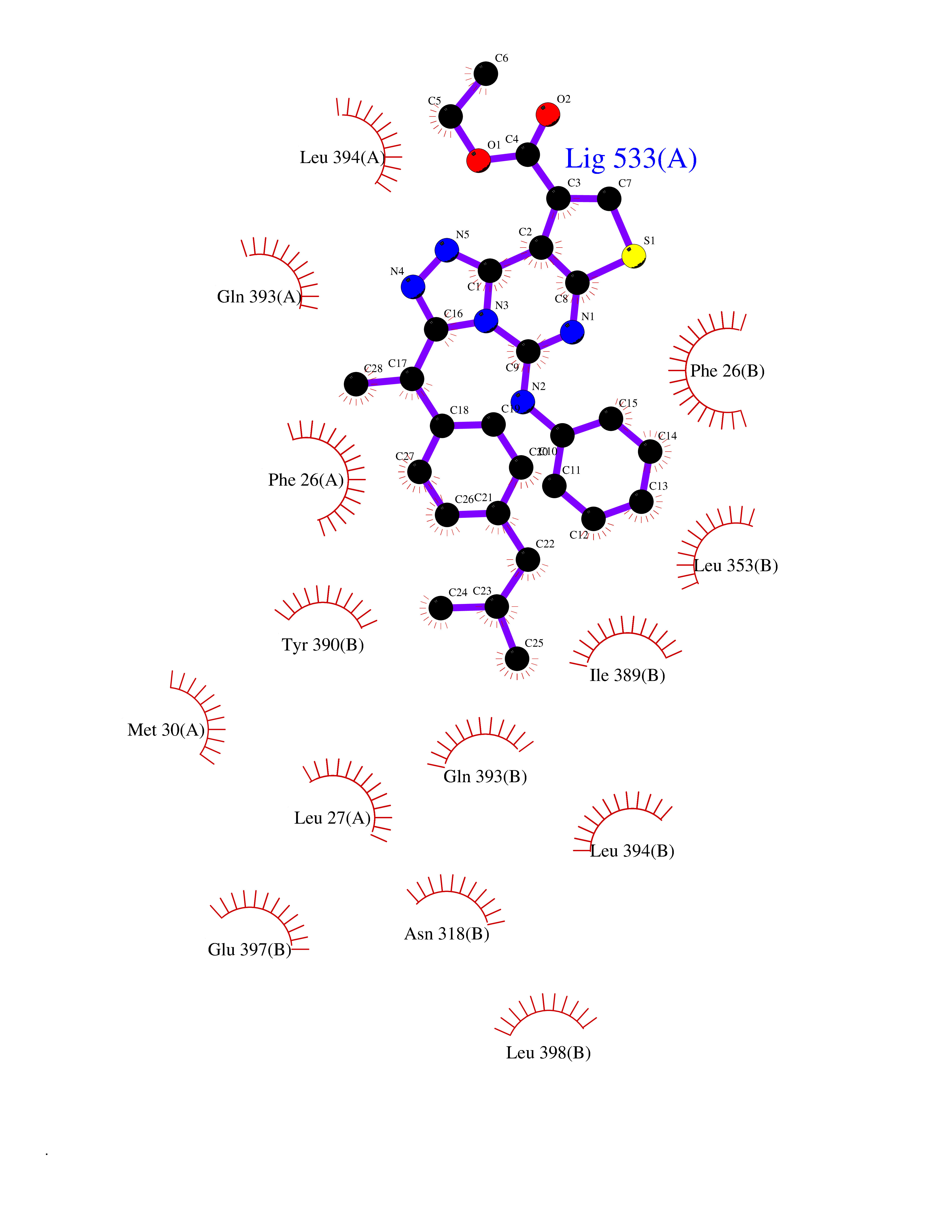Target general information Gen name DPP8 Organism Homo sapiens (Human) Uniprot ID TTD ID Synonyms Prolyl dipeptidase DPP8; MSTP141; MSTP135; MSTP097; Dipeptidyl peptidase VIII; Dipeptidyl peptidase IV-related protein 1; DPRP1; DPRP-1; DPP VIII; DP8 Protein family Peptidase S9B family, DPPIV subfamily Biochemical class Peptidase Function Dipeptidyl peptidase that cleaves off N-terminal dipeptides from proteins having a Pro or Ala residue at position 2. Related diseases Orotic aciduria 1 (ORAC1) [MIM:258900]: A disorder of pyrimidine metabolism resulting in megaloblastic anemia and orotic acid crystalluria that is frequently associated with some degree of physical and intellectual disability. A minority of cases have additional features, particularly congenital malformations and immune deficiencies. {ECO:0000269|PubMed:9042911}. The disease is caused by variants affecting the gene represented in this entry. Drugs (DrugBank ID) NA Interacts with NA EC number EC 3.4.14.5 Uniprot keywords 3D-structure; Alternative splicing; Aminopeptidase; Apoptosis; Cytoplasm; Hydrolase; Protease; Proteomics identification; Reference proteome; Serine protease Protein physicochemical properties Chain ID A,D Molecular weight (Da) 97764.9 Length 849 Aromaticity 0.12 Instability index 47.71 Isoelectric point 5.69 Charge (pH=7) -21.66 3D Binding mode Sequence LEPFYVERYSWSQLKKLLADTRKYHGYMMAKAPHDFMFVKRNDPDGPHSDRIYYLAMSNRENTLFYSEIPKTINRAAVLMLSWKPLLDLFQYSREEELLRERKRIGTVGIASYDYHQGSGTFLFQAGSGIYHVKDGGPQGFTQQPLRPNLVETSCPNIRMDPKLCPADPDWIAFIHSNDIWISNIVTREERRLTYVHNELANMEEDARSAGVATFVLQEEFDRYSGYWWCPKAETTPSGGKILRILYEENDESEVEIIHVTSPMLETRRADSFRYPKTGTANPKVTFKMSEIMIDAEGRIIDVIDKELIQPFEILFEGVEYIARAGWTPEGKYAWSILLDRSQTRLQIVLISPELFIPVEDDVMERQRLIESVPDSVTPLIIYEETTDIWINIHDIFHVFPQSHEEEIEFIFASECKTGFRHLYKITSILKESKYKRSSGGLPAPSDFKCPIKEEIAITSGEWEVLGRHGSNIQVDEVRRLVYFEGTKDSPLEHHLYVVSYVNPGEVTRLTDRGYSHSCCISQHCDFFISKYSNQKNPHCVSLYKLSSPEDDPTCKTKEFWATILDSAGPLPDYTPPEIFSFESTTGFTLYGMLYKPHDLQPGKKYPTVLFIYGGPQVQLVNNRFKGVKYFRLNTLASLGYVVVVIDNRGSXHRGLKFEGAFKYKMGQIEIDDQVEGLQYLASRYDFIDLDRVGIHGWSYGGYLSLMALMQRSDIFRVAIAGAPVTLWIFYDTGYTERYMGHPDQNEQGYYLGSVAMQAEKFPSEPNRLLLLHGFLDENVHFAHTSILLSFLVRAGKPYDLQIYPQERHSIRVPESGEHYELHLLHYLQENLGSRIAALKVSLRFLYEG Hydrogen bonds contact Hydrophobic contact | ||||
