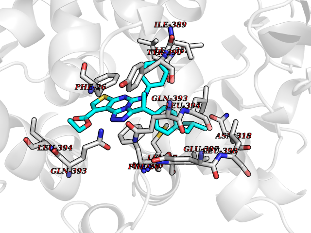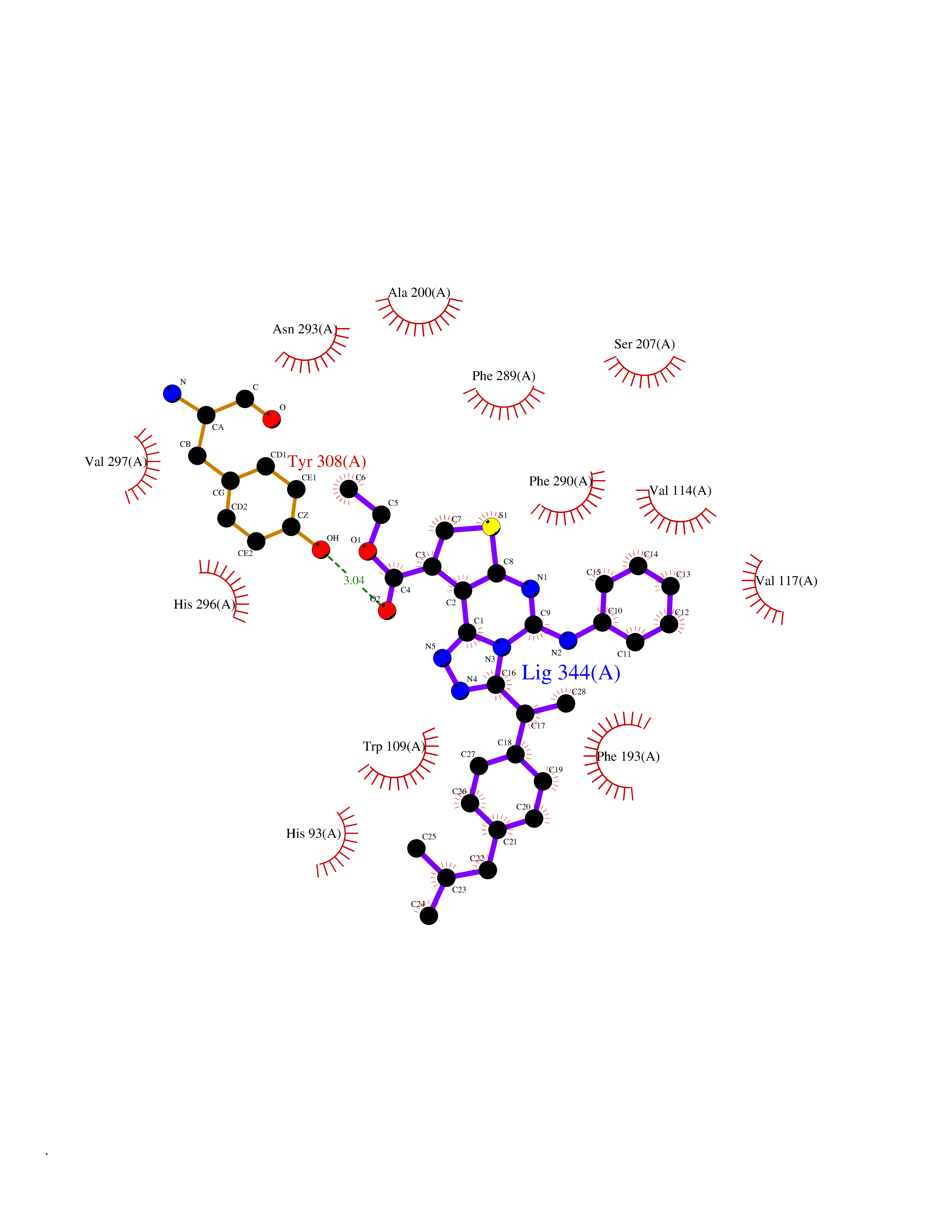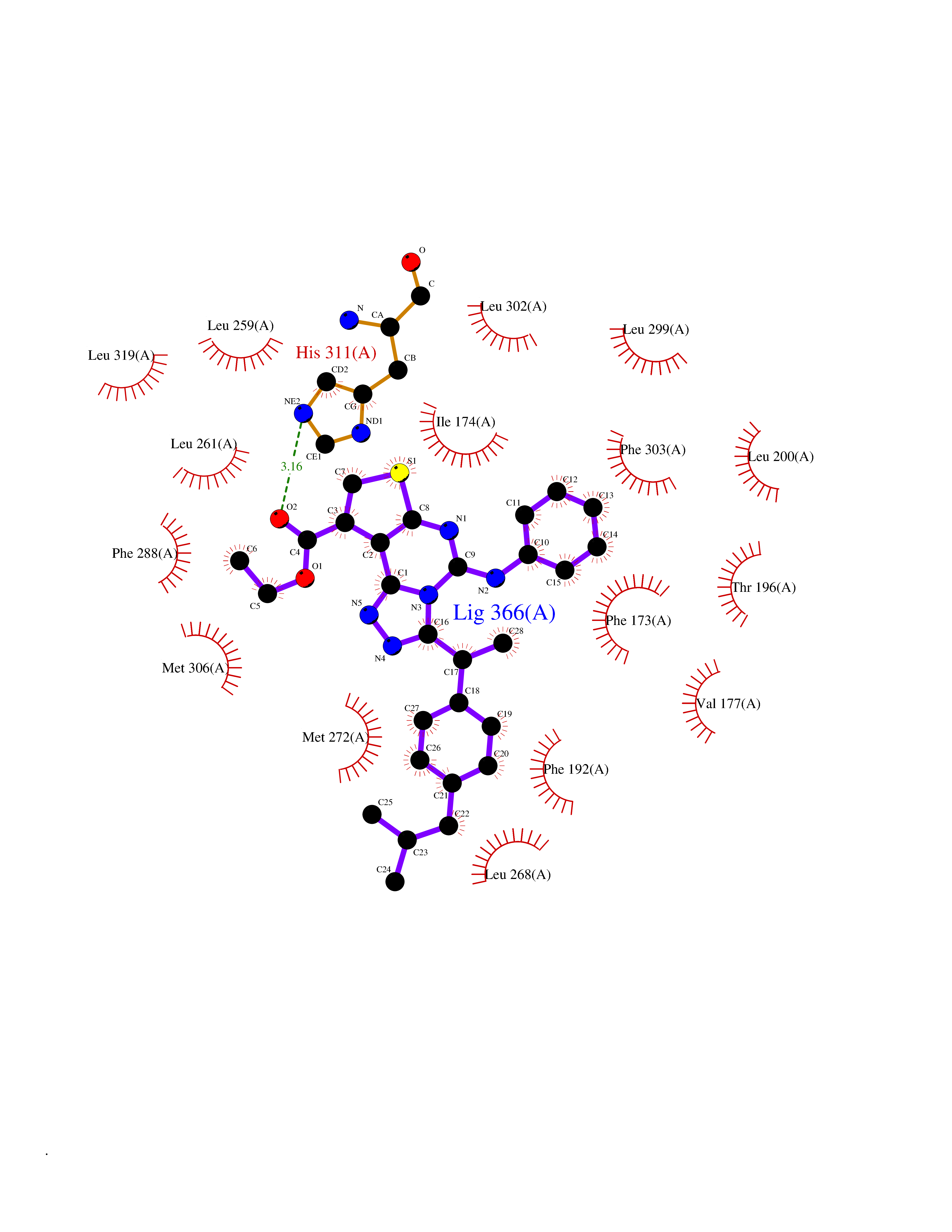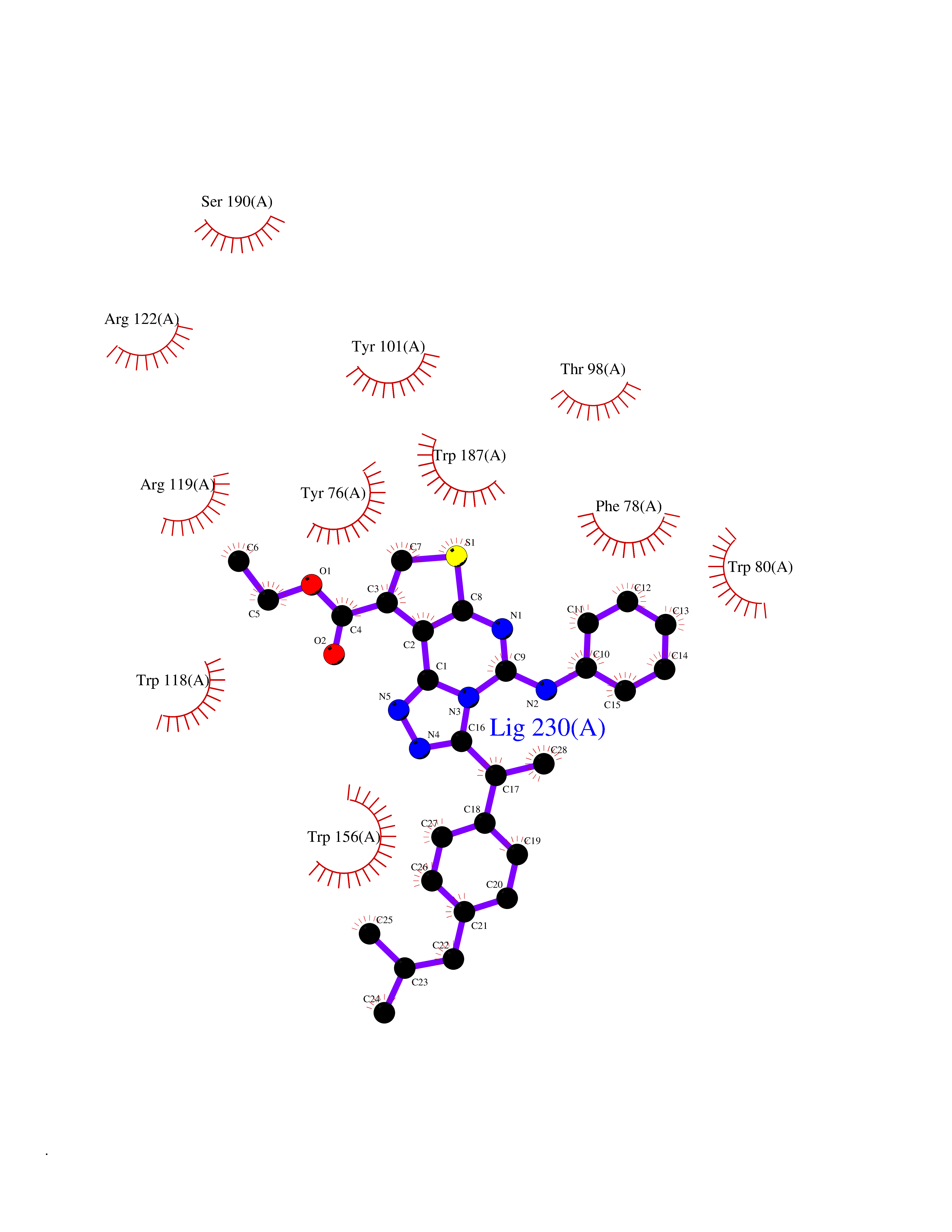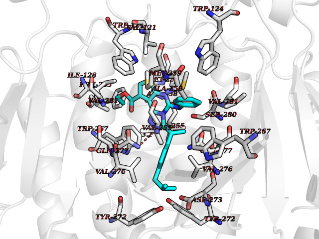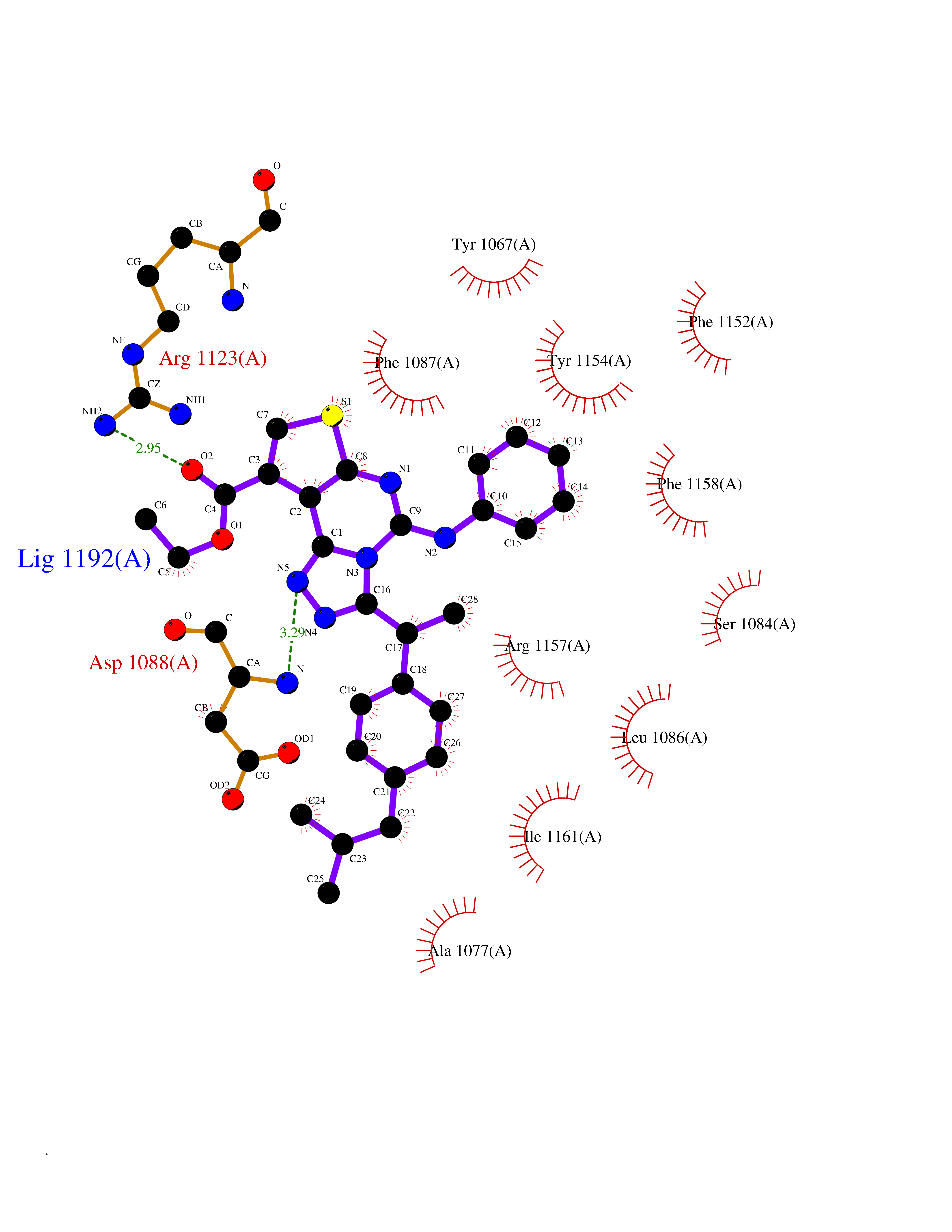 Target general information Gen name DPP8 Organism Homo sapiens (Human) Uniprot ID TTD ID Synonyms Prolyl dipeptidase DPP8; MSTP141; MSTP135; MSTP097; Dipeptidyl peptidase VIII; Dipeptidyl peptidase IV-related protein 1; DPRP1; DPRP-1; DPP VIII; DP8 Protein family Peptidase S9B family, DPPIV subfamily Biochemical class Peptidase Function Dipeptidyl peptidase that cleaves off N-terminal dipeptides from proteins having a Pro or Ala residue at position 2. Related diseases Orotic aciduria 1 (ORAC1) [MIM:258900]: A disorder of pyrimidine metabolism resulting in megaloblastic anemia and orotic acid crystalluria that is frequently associated with some degree of physical and intellectual disability. A minority of cases have additional features, particularly congenital malformations and immune deficiencies. {ECO:0000269|PubMed:9042911}. The disease is caused by variants affecting the gene represented in this entry. Drugs (DrugBank ID) NA Interacts with NA EC number EC 3.4.14.5 Uniprot keywords 3D-structure; Alternative splicing; Aminopeptidase; Apoptosis; Cytoplasm; Hydrolase; Protease; Proteomics identification; Reference proteome; Serine protease Protein physicochemical properties Chain ID A,D Molecular weight (Da) 97764.9 Length 849 Aromaticity 0.12 Instability index 47.71 Isoelectric point 5.69 Charge (pH=7) -21.66 3D Binding mode Sequence LEPFYVERYSWSQLKKLLADTRKYHGYMMAKAPHDFMFVKRNDPDGPHSDRIYYLAMSNRENTLFYSEIPKTINRAAVLMLSWKPLLDLFQYSREEELLRERKRIGTVGIASYDYHQGSGTFLFQAGSGIYHVKDGGPQGFTQQPLRPNLVETSCPNIRMDPKLCPADPDWIAFIHSNDIWISNIVTREERRLTYVHNELANMEEDARSAGVATFVLQEEFDRYSGYWWCPKAETTPSGGKILRILYEENDESEVEIIHVTSPMLETRRADSFRYPKTGTANPKVTFKMSEIMIDAEGRIIDVIDKELIQPFEILFEGVEYIARAGWTPEGKYAWSILLDRSQTRLQIVLISPELFIPVEDDVMERQRLIESVPDSVTPLIIYEETTDIWINIHDIFHVFPQSHEEEIEFIFASECKTGFRHLYKITSILKESKYKRSSGGLPAPSDFKCPIKEEIAITSGEWEVLGRHGSNIQVDEVRRLVYFEGTKDSPLEHHLYVVSYVNPGEVTRLTDRGYSHSCCISQHCDFFISKYSNQKNPHCVSLYKLSSPEDDPTCKTKEFWATILDSAGPLPDYTPPEIFSFESTTGFTLYGMLYKPHDLQPGKKYPTVLFIYGGPQVQLVNNRFKGVKYFRLNTLASLGYVVVVIDNRGSXHRGLKFEGAFKYKMGQIEIDDQVEGLQYLASRYDFIDLDRVGIHGWSYGGYLSLMALMQRSDIFRVAIAGAPVTLWIFYDTGYTERYMGHPDQNEQGYYLGSVAMQAEKFPSEPNRLLLLHGFLDENVHFAHTSILLSFLVRAGKPYDLQIYPQERHSIRVPESGEHYELHLLHYLQENLGSRIAALKVSLRFLYEG Hydrogen bonds contact Hydrophobic contact | ||||