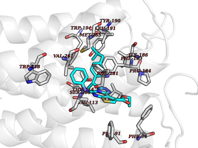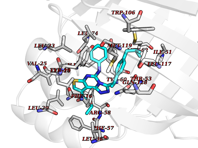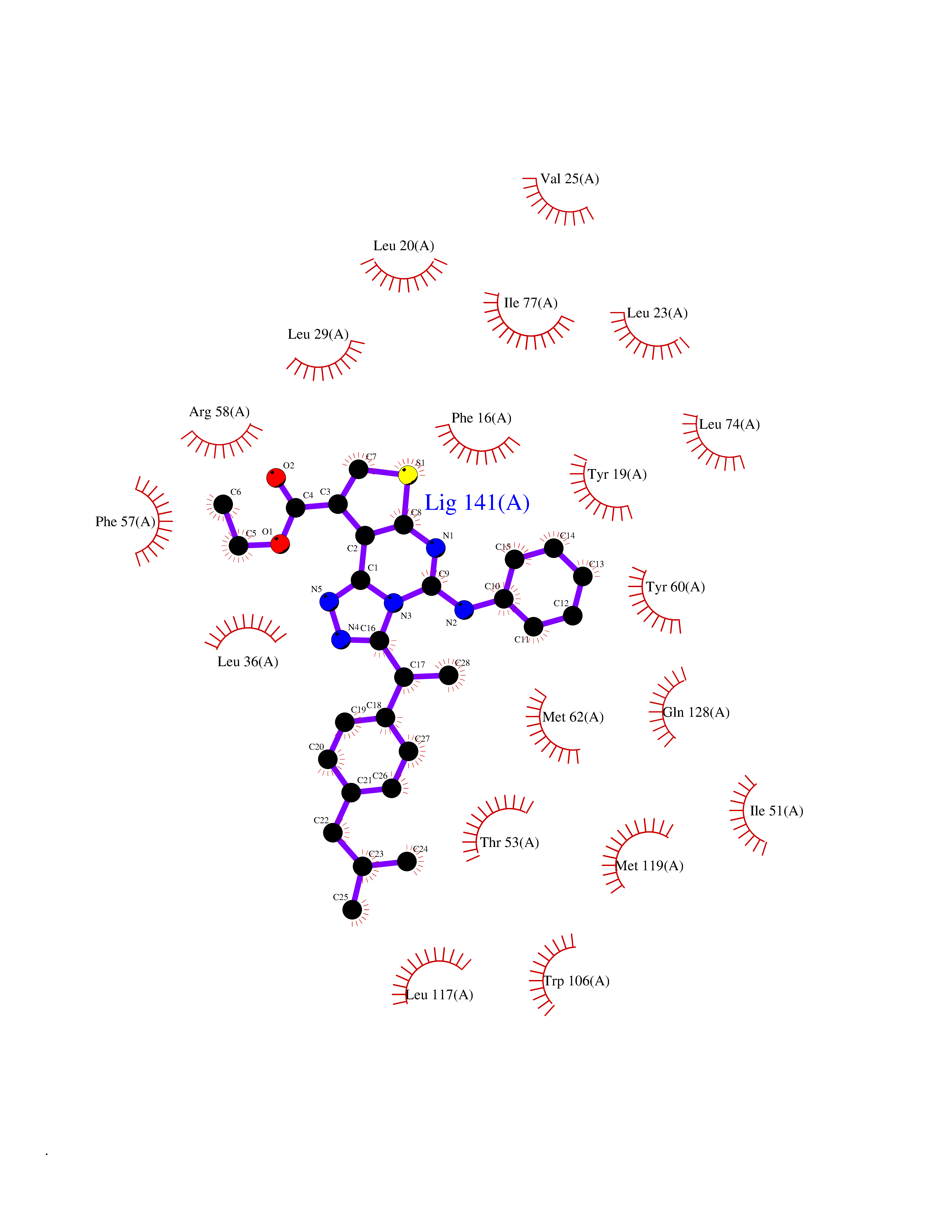 Target general information Gen name HTR7 Organism Homo sapiens (Human) Uniprot ID TTD ID Synonyms Serotonin receptor 7; 5HT7; 5-hydroxytryptamine receptor 7; 5-HT7 receptor; 5-HT7; 5-HT-X; 5-HT-7 Protein family G-protein coupled receptor 1 family Biochemical class GPCR rhodopsin Function The activity of this receptor is mediated by G proteins that stimulate adenylate cyclase. This is one of the several different receptors for 5-hydroxytryptamine (serotonin), a biogenic hormone that functions as a neurotransmitter, a hormone, and a mitogen. Related diseases Immunodeficiency 35 (IMD35) [MIM:611521]: A primary immunodeficiency characterized by recurrent skin abscesses, pneumonia, and highly elevated serum IgE. {ECO:0000269|PubMed:17088085}. The disease is caused by variants affecting the gene represented in this entry. Drugs (DrugBank ID) DB06288; DB00321; DB00543; DB01238; DB14185; DB06216; DB09128; DB01200; DB00248; DB00477; DB01239; DB00363; DB00924; DB00434; DB11273; DB13345; DB00988; DB00751; DB01049; DB12141; DB00502; DB04946; DB00458; DB00589; DB04948; DB00408; DB08815; DB00934; DB00247; DB06148; DB01267; DB00715; DB01224; DB00734; DB00953; DB13988; DB09304; DB13025; DB09068; DB00246; DB00315; DB09225 Interacts with P43243 EC number NA Uniprot keywords 3D-structure; Alternative splicing; Cell membrane; Disulfide bond; G-protein coupled receptor; Glycoprotein; Lipoprotein; Membrane; Palmitate; Proteomics identification; Receptor; Reference proteome; Transducer; Transmembrane; Transmembrane helix Protein physicochemical properties Chain ID R Molecular weight (Da) 30879.7 Length 275 Aromaticity 0.14 Instability index 36.79 Isoelectric point 9.22 Charge (pH=7) 11.88 3D Binding mode Sequence EKVVIGSILTLITLLTIAGNCLVVISVCFVKKLRQPSNYLIVSLALADLSVAVAVMPFVSVTDLIGGKWIFGHFFCNVFIAMDVMCCTASIMTLCVISIDRYLGITRPLTYPVRQNGKCMAKMILSVWLLSASITLPPLFGWAQNVNDDKVCLISQDFGYTIYSTAVAFYIPMSVMLFMYYQIYKAARKSAAKHKFPGFPKAATTLGIIVGAFTVCWLPFFLLSTARPFICCIPLWVERTFLWLGYANSLINPFIYAFFNRDLRTTYRSLLQCQY Hydrogen bonds contact Hydrophobic contact | ||||