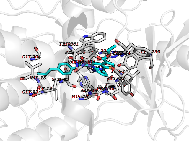 Target general information Gen name camC Organism Pseudomonas putida (Arthrobacter siderocapsulatus) Uniprot ID TTD ID NA Synonyms cyp101 Protein family Cytochrome P450 family Biochemical class Oxidoreductase Function Camphor 5-monooxygenase activity.Heme binding.Iron ion binding. Related diseases Combined oxidative phosphorylation deficiency 6 (COXPD6) [MIM:300816]: A mitochondrial disease resulting in a neurodegenerative disorder characterized by psychomotor delay, hypotonia, areflexia, muscle weakness and wasting. Some patients manifest prenatal ventriculomegaly and severe postnatal encephalomyopathy. {ECO:0000269|PubMed:20362274, ECO:0000269|PubMed:22019070, ECO:0000269|PubMed:25583628, ECO:0000269|PubMed:26004228, ECO:0000269|PubMed:26173962, ECO:0000269|PubMed:27178839}. The disease is caused by variants affecting the gene represented in this entry.; DISEASE: Charcot-Marie-Tooth disease, X-linked recessive, 4, with or without cerebellar ataxia (CMTX4) [MIM:310490]: A neuromuscular disorder characterized by progressive sensorimotor axonal neuropathy, distal sensory impairment, difficulty walking due to peripheral neuropathy and/or cerebellar ataxia, and deafness due to auditory neuropathy. Additional features include cognitive impairment, cerebellar atrophy, dysarthria, abnormal extraocular movements, tremor, dysmetria and spasticity. The age at onset ranges from infancy to young adulthood. {ECO:0000269|PubMed:23217327, ECO:0000269|PubMed:26004228}. The disease is caused by variants affecting the gene represented in this entry.; DISEASE: Deafness, X-linked, 5, with peripheral neuropathy (DFNX5) [MIM:300614]: A form of hearing loss characterized by absent or severely abnormal auditory brainstem response, abnormal middle ear reflexes, abnormal speech discrimination, loss of outer hair cell function, and cochlear nerve hypoplasia. DFNX5 patients manifest auditory neuropathy with childhood onset, associated with distal sensory impairment affecting the peripheral nervous system. {ECO:0000269|PubMed:25986071}. The disease is caused by variants affecting the gene represented in this entry.; DISEASE: Spondyloepimetaphyseal dysplasia, X-linked, with hypomyelinating leukodystrophy (SEMDHL) [MIM:300232]: An X-linked recessive developmental disorder characterized by slowly progressive skeletal and neurologic abnormalities, including short stature, large and deformed joints, significant motor impairment, visual defects, and sometimes cognitive deficits. Affected individuals typically have normal early development in the first year or so of life, followed by development regression and the development of symptoms. Brain imaging shows white matter abnormalities consistent with hypomyelinating leukodystrophy. {ECO:0000269|PubMed:28842795}. The disease is caused by variants affecting the gene represented in this entry. Drugs (DrugBank ID) DB03836; DB02617; DB02817; DB03627; DB04032; DB03031; DB02125; DB04501; DB01744; DB01663; DB01011; DB01703; DB01826; DB03540; DB02851 Interacts with P00259 EC number 1.14.15.1 Uniprot keywords 3D-structure; Cytoplasm; Direct protein sequencing; Heme; Iron; Metal-binding; Monooxygenase; Oxidoreductase Protein physicochemical properties Chain ID A Molecular weight (Da) 45446.3 Length 405 Aromaticity 0.08 Instability index 45.33 Isoelectric point 5.23 Charge (pH=7) -16.08 3D Binding mode Sequence NLAPLPPHVPEHLVFDFDMYNPSNLSAGVQEAWAVLQESNVPDLVWTRCNGGHWIATRGQLIREAYEDYRHFSSECPFIPREAGEAYDFIPTSMDPPEQRQFRALANQVVGMPVVDKLENRIQELACSLIESLRPQGQCNFTEDYAEPFPIRIFMLLAGLPEEDIPHLGYLTDQMTRPDGSMTFAEAKEALYDYLIPIIEQRRQKPGTDAISIVANGQVNGRPITSDEAKRMCGLLLVGGLDTVVNFLSFSMEFLAKSPEHRQELIERPERIPAACEELLRRFSLVADGRILTSDYEFHGVQLKKGDQILLPQMLSGLDERENAAPMHVDFSRQKVSHTTFGHGSHLCAGQHLARREIIVTLKEWLTRIPDFSIAPGAQIQHKSGIVSGVQALPLVWDPATTKAV Hydrogen bonds contact Hydrophobic contact | ||||