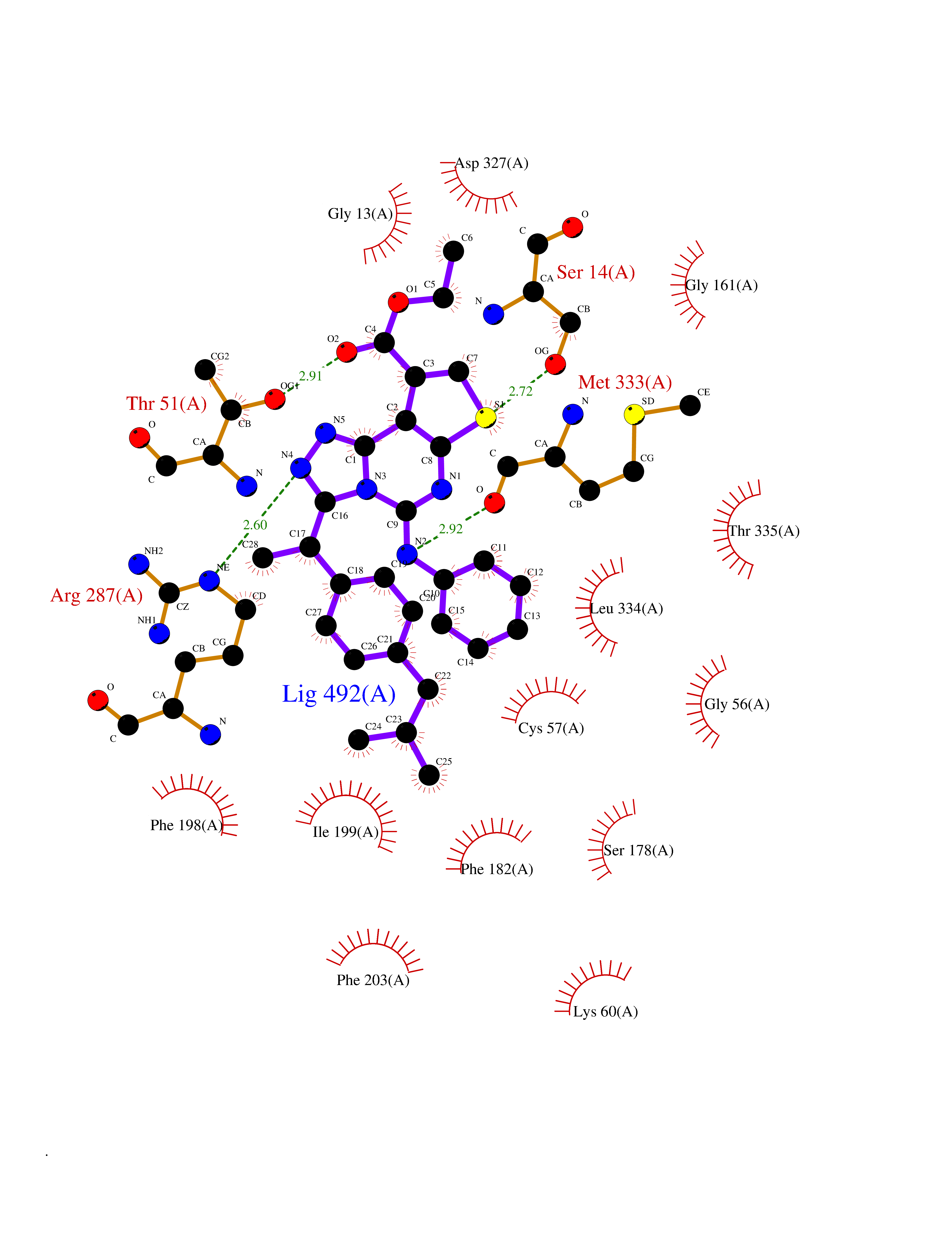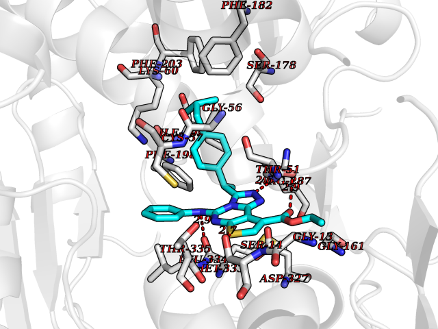 Target general information Gen name SPHK1 Organism Homo sapiens (Human) Uniprot ID TTD ID Synonyms SPK 1; SPK; SPHK1; SK 1; Acetyltransferase SPHK1 Protein family NA Biochemical class Kinase Function Acts on D-erythro-sphingosine and to a lesser extent sphinganine, but not other lipids, such as D,L-threo-dihydrosphingosine, N,N-dimethylsphingosine, diacylglycerol, ceramide, or phosphatidylinositol. In contrast to proapoptotic SPHK2, has a negative effect on intracellular ceramide levels, enhances cell growth and inhibits apoptosis. Involved in the regulation of inflammatory response and neuroinflammation. Via the product sphingosine 1-phosphate, stimulates TRAF2 E3 ubiquitin ligase activity, and promotes activation of NF-kappa-B in response to TNF signaling leading to IL17 secretion. In response to TNF and in parallel to NF-kappa-B activation, negatively regulates RANTES inducion through p38 MAPK signaling pathway. Involved in endocytic membrane trafficking induced by sphingosine, recruited to dilate endosomes, also plays a role on later stages of endosomal maturation and membrane fusion independently of its kinase activity. In Purkinje cells, seems to be also involved in the regulation of autophagosome-lysosome fusion upon VEGFA. Catalyzes the phosphorylation of sphingosine to form sphingosine 1-phosphate (SPP), a lipid mediator with both intra- and extracellular functions. Related diseases Intellectual developmental disorder, X-linked, syndromic, Claes-Jensen type (MRXSCJ) [MIM:300534]: A disorder characterized by significantly below average general intellectual functioning associated with impairments in adaptive behavior and manifested during the developmental period. MRXSCJ patients manifest intellectual disability associated with variable features such as slowly progressive spastic paraplegia, seizures, facial dysmorphism. {ECO:0000269|PubMed:15586325, ECO:0000269|PubMed:16538222, ECO:0000269|PubMed:16541399, ECO:0000269|PubMed:17320160, ECO:0000269|PubMed:17468742, ECO:0000269|PubMed:23356856, ECO:0000269|PubMed:25666439}. The disease is caused by variants affecting the gene represented in this entry. Drugs (DrugBank ID) DB08868 Interacts with P07858; P68104; Q14192; Q2M3C7; Q9Y4K3; P13473-2; Q9Y371 EC number EC 2.7.1.91 Uniprot keywords 3D-structure; Alternative splicing; ATP-binding; Calmodulin-binding; Cell membrane; Coated pit; Cytoplasm; Endosome; Kinase; Lipid metabolism; Membrane; Nucleotide-binding; Nucleus; Phosphoprotein; Proteomics identification; Reference proteome; Synapse; Transferase Protein physicochemical properties Chain ID A Molecular weight (Da) 39813 Length 360 Aromaticity 0.08 Instability index 43.79 Isoelectric point 7.34 Charge (pH=7) 0.84 3D Binding mode Sequence AMGSGVLPRPCRVLVLLNPRGGKGKALQLFRSHVQPLLAEAEISFTLMLTERRNHARELVRSEELGRWDALVVMSGDGLMHEVVNGLMERPDWETAIQKPLCSLPAGSGNALAASLNHYAGYEQVTNEDLLTNCTLLLCRRLLSPMNLLSLHTASGLRLFSVLSLAWGFIADVDLESEKYRRLGEMRFTLGTFLRLAALRTYRGRLAYLPVGRVGSKTPASPVVVQQGPVDAHLVPLEEPVPSHWTVVPDEDFVLVLALLHSHLGSEMFAAPMGRCAAGVMHLFYVRAGVSRAMLLRLFLAMEKGRHMEYECPYLVYVPVVAFRLEPKDGKGVFAVDGELMVSEAVQGQVHPNYFWMVSG Hydrogen bonds contact Hydrophobic contact | ||||