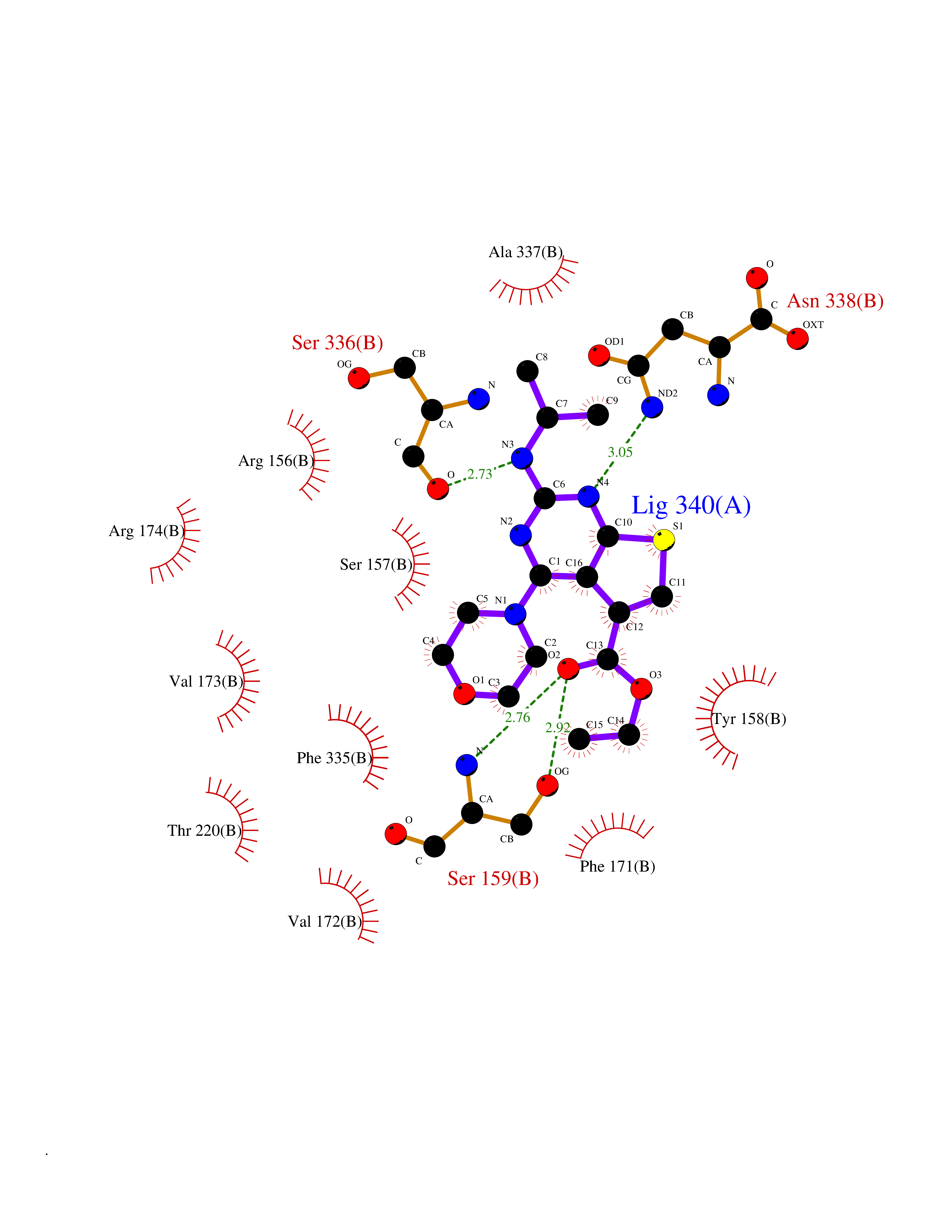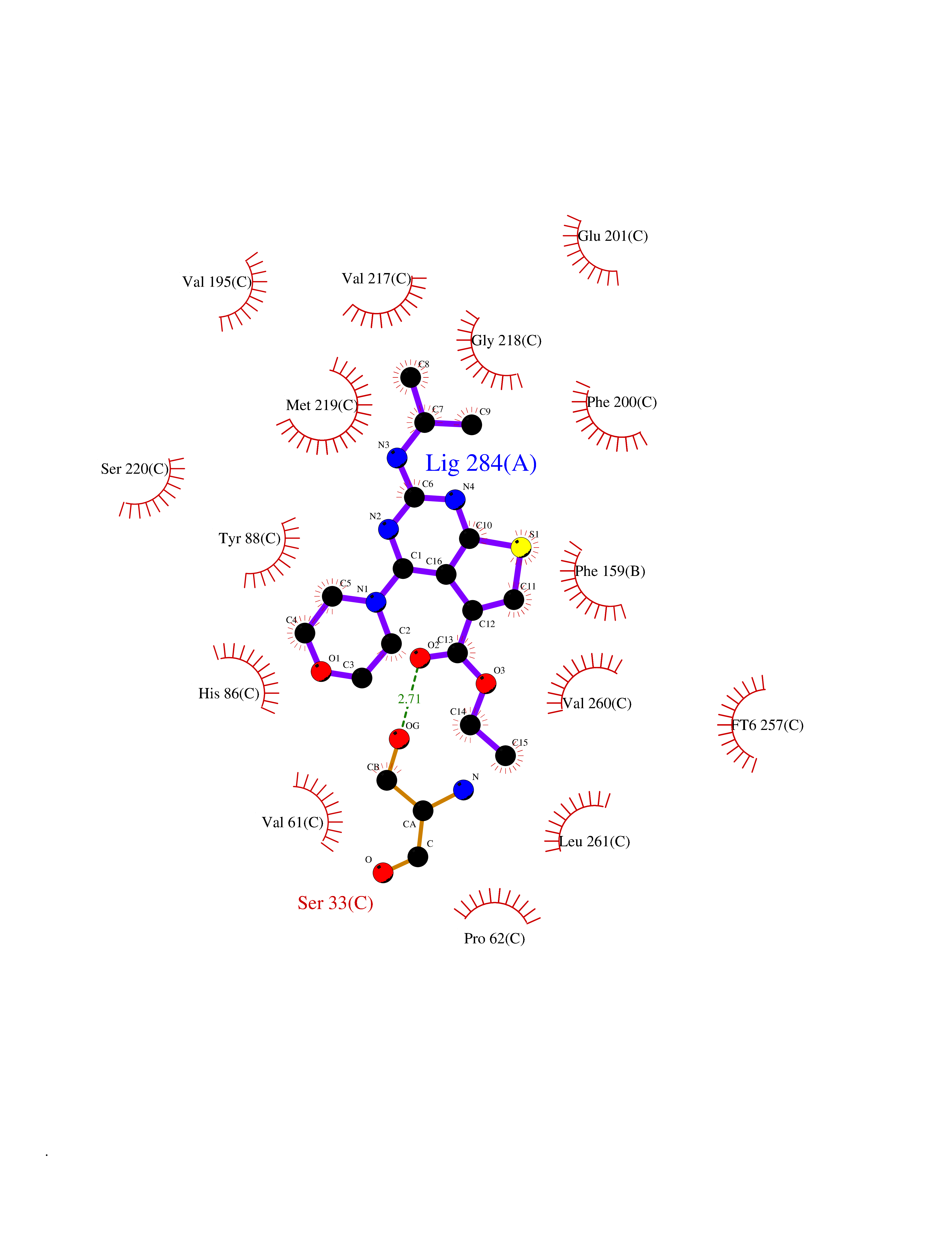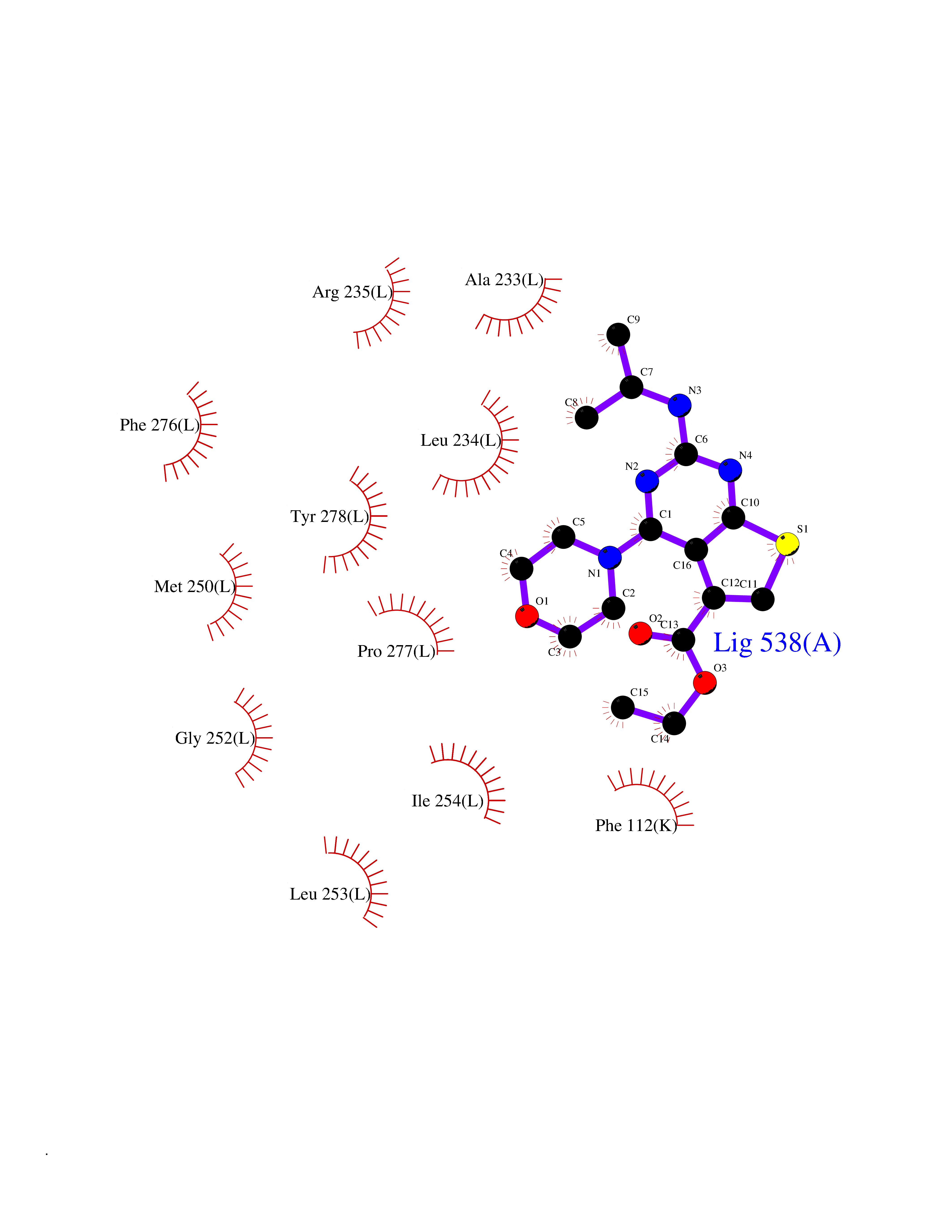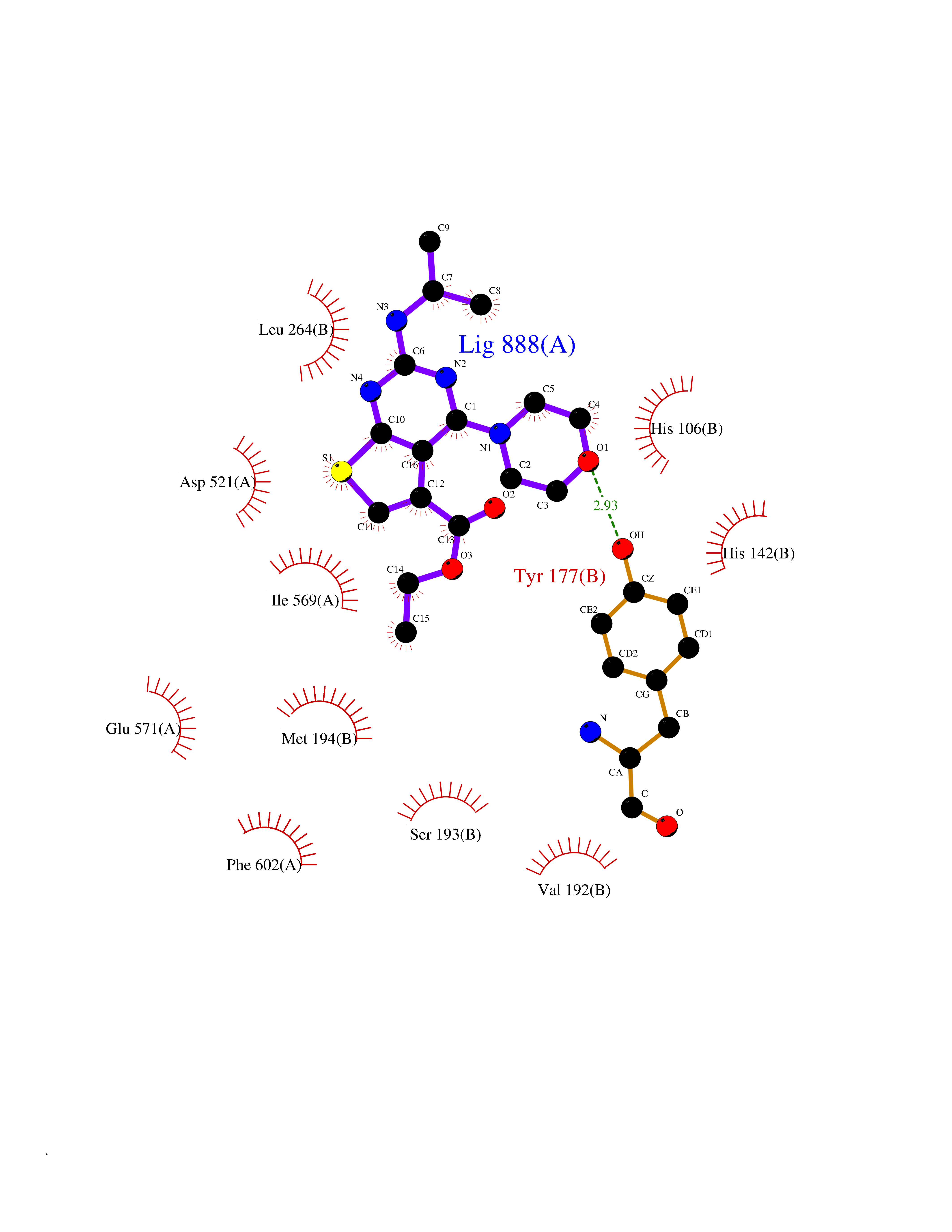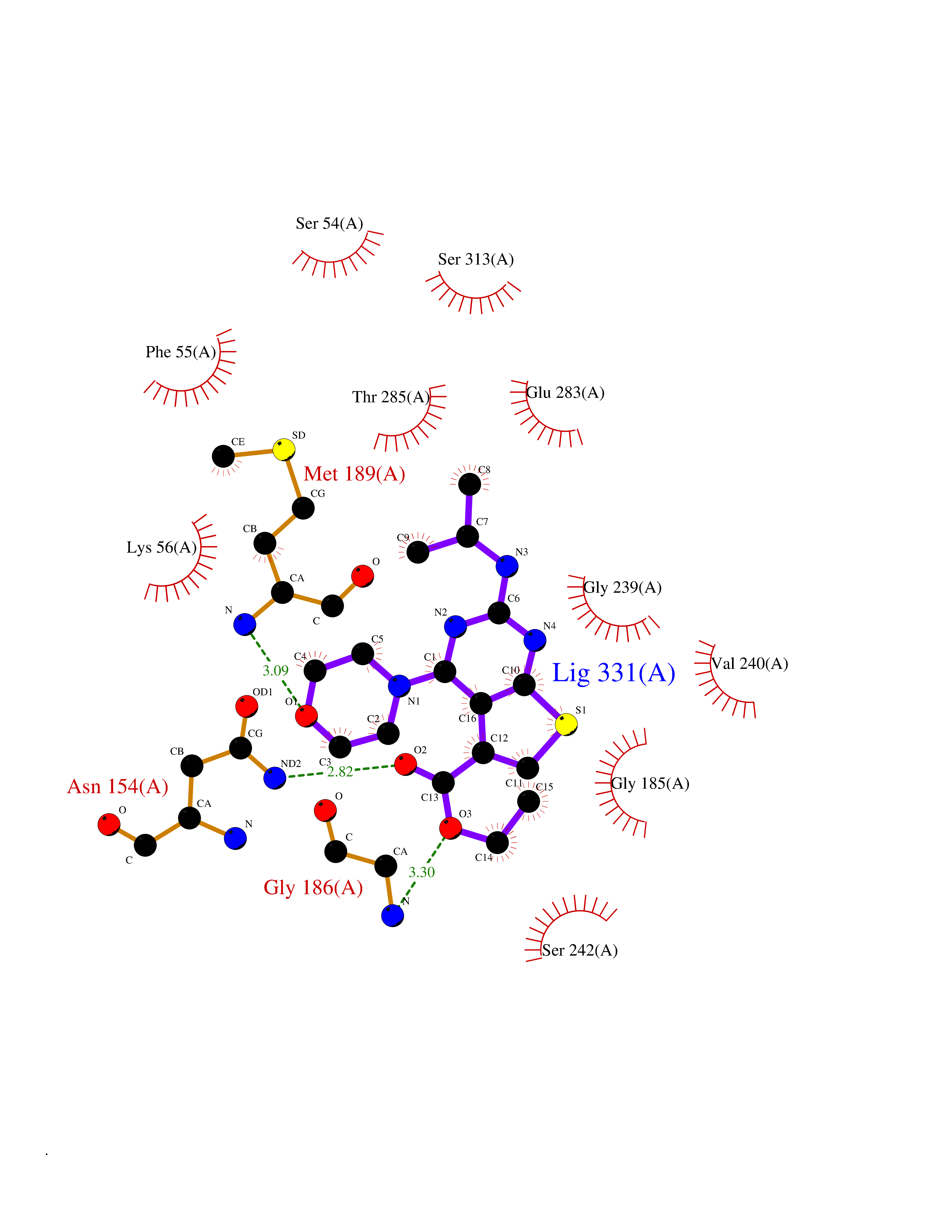 | Target general information Gen name PNP Organism Homo sapiens (Human) Uniprot ID TTD ID Synonyms PNP; Inosine phosphorylase Protein family PNP/MTAP phosphorylase family Biochemical class Pentosyltransferase Function The purine nucleoside phosphorylases catalyze the phosphorolytic breakdown of the N-glycosidic bond in the beta- (deoxy)ribonucleoside molecules, with the formation of the corresponding free purine bases and pentose-1-phosphate. Related diseases Purine nucleoside phosphorylase deficiency (PNPD) [MIM:613179]: A disorder that interrupts both the catabolism of inosine into hypoxanthine and guanosine into guanine, and leads to the accumulation of guanosine, inosine, and their deoxified by-products. The main clinical presentation is recurrent infections due to severe T-cell immunodeficiency. Some patients also have neurologic impairment. {ECO:0000269|PubMed:1384322, ECO:0000269|PubMed:3029074, ECO:0000269|PubMed:8931706}. The disease is caused by variants affecting the gene represented in this entry. Drugs (DrugBank ID) DB03881; DB03551; DB02222; DB02391; DB03609; DB01667; DB04260; DB02796; DB04753; DB00640; DB00242; DB00900; DB06185; DB02377; DB02857; DB04754; DB04757; DB04076; DB02230; DB04335; DB02568; DB03101 Interacts with P05067; Q9UQM7; O14576-2; P06241; P14136; Q92993-2; Q9BXM7; P00491; P17612; P63000; Q92673; Q15583 EC number EC 2.4.2.1 Uniprot keywords 3D-structure; Acetylation; Cytoplasm; Direct protein sequencing; Disease variant; Glycosyltransferase; Phosphoprotein; Proteomics identification; Purine salvage; Reference proteome; Transferase Protein physicochemical properties Chain ID A,B,C Molecular weight (Da) 31849.2 Length 288 Aromaticity 0.1 Instability index 34.77 Isoelectric point 6.42 Charge (pH=7) -1.63 3D Binding mode Sequence GYTYEDYKNTAEYLLSHTKHRPQVAIICGSGLGGLTDKLTQAQIFDYSEIPNFPRSTVPGHAGRLVFGFLNGRACVMMQGRFHMYEGYPLYKVTFPVRVFHLLGVDTLVVTNAAGGLNPKFEVGDIMLIRDHINLPGFSGQNPLRGPNDERFGDRFPAMSDAYDRTMRQRALSTYKQMGEQRELQEGTYVMVAGPSFETVAECRVLQKLGADAVGMSTVPEVIVARHCGLRVFGFSLITNKVIMDYESLEKANXEEVLAAGKQAAQKLEQFVSILMASIDRFPAMSDA Hydrogen bonds contact Hydrophobic contact | ||||