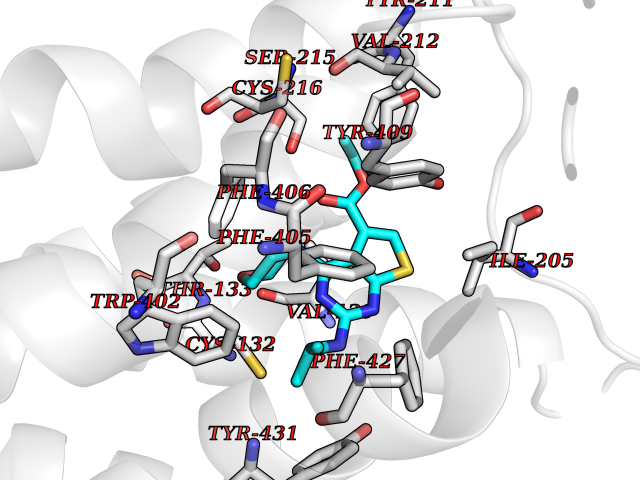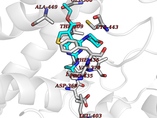 | Target general information Gen name CYP2D6 Organism Homo sapiens (Human) Uniprot ID TTD ID Synonyms P450-DB1; Cytochrome P450-DB1; Cytochrome P450 2D6; CYPIID6; CYP2DL1 Protein family Cytochrome P450 family Biochemical class Paired donor oxygen oxidoreductase Function It is involved in the metabolism of drugs such as antiarrhythmics, adrenoceptor antagonists, and tricyclic antidepressants. Responsible for the metabolism of many drugs and environmental chemicals that it oxidizes. Related diseases A chromosomal aberration involving BCL2 has been found in chronic lymphatic leukemia. Translocation t(14;18)(q32;q21) with immunoglobulin gene regions. BCL2 mutations found in non-Hodgkin lymphomas carrying the chromosomal translocation could be attributed to the Ig somatic hypermutation mechanism resulting in nucleotide transitions. {ECO:0000269|PubMed:2875799, ECO:0000269|PubMed:3285301}. Drugs (DrugBank ID) DB01562; DB01472; DB14010; DB12001; DB05812; DB01193; DB00316; DB15568; DB00918; DB06203; DB00866; DB01424; DB01118; DB00321; DB00381; DB00613; DB00543; DB00182; DB00701; DB11785; DB01435; DB01429; DB01274; DB01238; DB14185; DB09204; DB11638; DB06216; DB00637; DB11586; DB00335; DB00289; DB01076; DB00972; DB04957; DB09013; DB16703; DB01086; DB06770; DB01244; DB15982; DB00195; DB01295; DB12236; DB01128; DB04889; DB00810; DB13975; DB08807; DB00188; DB09128; DB12151; DB12752; DB06726; DB00297; DB08808; DB00921; DB01156; DB00490; DB09173; DB00201; DB09061; DB14737; DB06016; DB00521; DB01136; DB00482; DB04846; DB00439; DB00185; DB00608; DB01114; DB00477; DB00356; DB01410; DB01166; DB00501; DB01012; DB00568; DB00604; DB00215; DB12499; DB00283; DB04920; DB14025; DB00349; DB00845; DB01242; DB00575; DB13508; DB00257; DB00363; DB09065; DB05239; DB00907; DB00318; DB11672; DB14635; DB00924; DB00091; DB11963; DB06292; DB04884; DB00496; DB01264; DB09183; DB04840; DB00705; DB06512; DB01151; DB06700; DB16650; DB12161; DB13679; DB09555; DB01191; DB00633; DB01576; DB00514; DB00647; DB11994; DB01551; DB00343; DB01093; DB01075; DB00757; DB01184; DB00843; DB09167; DB00590; DB01142; DB00997; DB00470; DB04855; DB00476; DB00625; DB11979; DB00216; DB15444; DB09039; DB13874; DB01228; DB06735; DB11718; DB00494; DB13757; DB00751; DB00530; DB13443; DB01175; DB06678; DB00187; DB00330; DB01466; DB01628; DB01590; DB12500; DB01023; DB00574; DB06702; DB12265; DB01195; DB04841; DB00472; DB00623; DB01095; DB00176; DB00983; DB02703; DB15149; DB00674; DB05087; DB00317; DB08909; DB00986; DB01218; DB00502; DB00956; DB01611; DB00557; DB09053; DB01177; DB04946; DB00619; DB00458; DB08952; DB00224; DB06370; DB13293; DB04818; DB16200; DB11633; DB06636; DB00951; DB11757; DB00602; DB09570; DB01026; DB00598; DB12212; DB00448; DB11732; DB16217; DB09078; DB00528; DB12070; DB09351; DB01210; DB08918; DB00281; DB04948; DB01206; DB00836; DB01601; DB00455; DB04871; DB09195; DB06708; DB04829; DB09238; DB00934; DB14921; DB00737; DB14009; DB09224; DB00170; DB00454; DB00532; DB13530; DB06691; DB01071; DB00933; DB01577; DB00333; DB00763; DB01403; DB01028; DB09241; DB01214; DB01233; DB00264; DB00379; DB06148; DB01388; DB01110; DB00211; DB01454; DB06595; DB00834; DB00805; DB08893; DB00370; DB12523; DB01171; DB00745; DB14011; DB09049; DB00731; DB04861; DB01149; DB00220; DB09048; DB00238; DB00627; DB00622; DB00699; DB02701; DB00184; DB01115; DB04868; DB12005; DB00540; DB00334; DB14881; DB00338; DB00904; DB11130; DB04911; DB01173; DB11837; DB04938; DB01096; DB01580; DB01062; DB00497; DB06412; DB01192; DB01267; DB00377; DB06603; DB00715; DB06589; DB00022; DB01359; DB00738; DB01074; DB08922; DB00850; DB03783; DB00780; DB00914; DB00252; DB05316; DB01100; DB00960; DB00592; DB01621; DB04951; DB17472; DB11642; DB08901; DB01297; DB15822; DB01087; DB01035; DB00433; DB00396; DB01131; DB00420; DB01069; DB09288; DB01182; DB00571; DB04216; DB01224; DB00908; DB00468; DB01129; DB00863; DB00243; DB00234; DB14761; DB00409; DB06506; DB02709; DB11855; DB13174; DB11753; DB08864; DB14840; DB00734; DB12693; DB00503; DB00953; DB09291; DB15119; DB00412; DB05271; DB12332; DB11614; DB06654; DB01232; DB01037; DB06144; DB01104; DB00203; DB00641; DB01591; DB00398; DB12713; DB00489; DB06727; DB01323; DB09118; DB06820; DB06729; DB06608; DB11770; DB00675; DB00706; DB06204; DB06083; DB01079; DB12095; DB06287; DB00857; DB00342; DB13775; DB04905; DB04844; DB11712; DB00277; DB00679; DB01623; DB00208; DB00373; DB01409; DB00932; DB06137; DB01036; DB05109; DB00193; DB00752; DB00656; DB12245; DB00726; DB00792; DB00209; DB15328; DB09076; DB13609; DB15091; DB11915; DB00862; DB08881; DB00285; DB00661; DB06217; DB06684; DB09185; DB00570; DB00361; DB11739; DB09068; DB01392; DB00549; DB15688; DB00425; DB01624 Interacts with NA EC number EC 1.14.14.- Uniprot keywords 3D-structure; Alternative splicing; Cholesterol metabolism; Endoplasmic reticulum; Fatty acid metabolism; Heme; Iron; Lipid metabolism; Membrane; Metal-binding; Microsome; Monooxygenase; Oxidoreductase; Proteomics identification; Reference proteome; Steroid metabolism; Sterol metabolism Protein physicochemical properties Chain ID A Molecular weight (Da) 51898.1 Length 464 Aromaticity 0.09 Instability index 43.83 Isoelectric point 6.76 Charge (pH=7) -0.99 3D Binding mode Sequence GKLPPGPLPLPGLGNLLFQNTPYCFDQLRRRFGDVFSLQLAWTPVVVLNGLAAVREALVTHGEDTADRPPVPITQILGFGPRSQGVFLARYGPAWREQRRFSVSTLRNLGLGKKSLEQWVTEEAACLCAAFANHSGRPFRPNGLLDKAVSNVIASLTCGRRFEYDDPRFLRLLDLAQEGLKEESGFLREVLNAVPVLLHIPALAGKVLRFQKAFLTQLDELLTEHRMTWDPAQPPRDLTEAFLAEMEKAKGNPESSFNDENLRIVVADLFSAGMVTTSTTLAWGLLLMILHPDVQRRVQQEIDDVIGQVRRPEMGDQAHMPYTTAVIHEVQRFGDIVPLGVTHMTSRDIEVQGFRIPKGTTLITNLSSVLKDEAVWEKPFRFHPEHFLDAQGHFVKPEAFLPFSAGRRACLGEPLARMELFLFFTSLLQHFSFSVPTGQPRPSHHGVFAFLVSPSPYELCAVPR Hydrogen bonds contact Hydrophobic contact | ||||