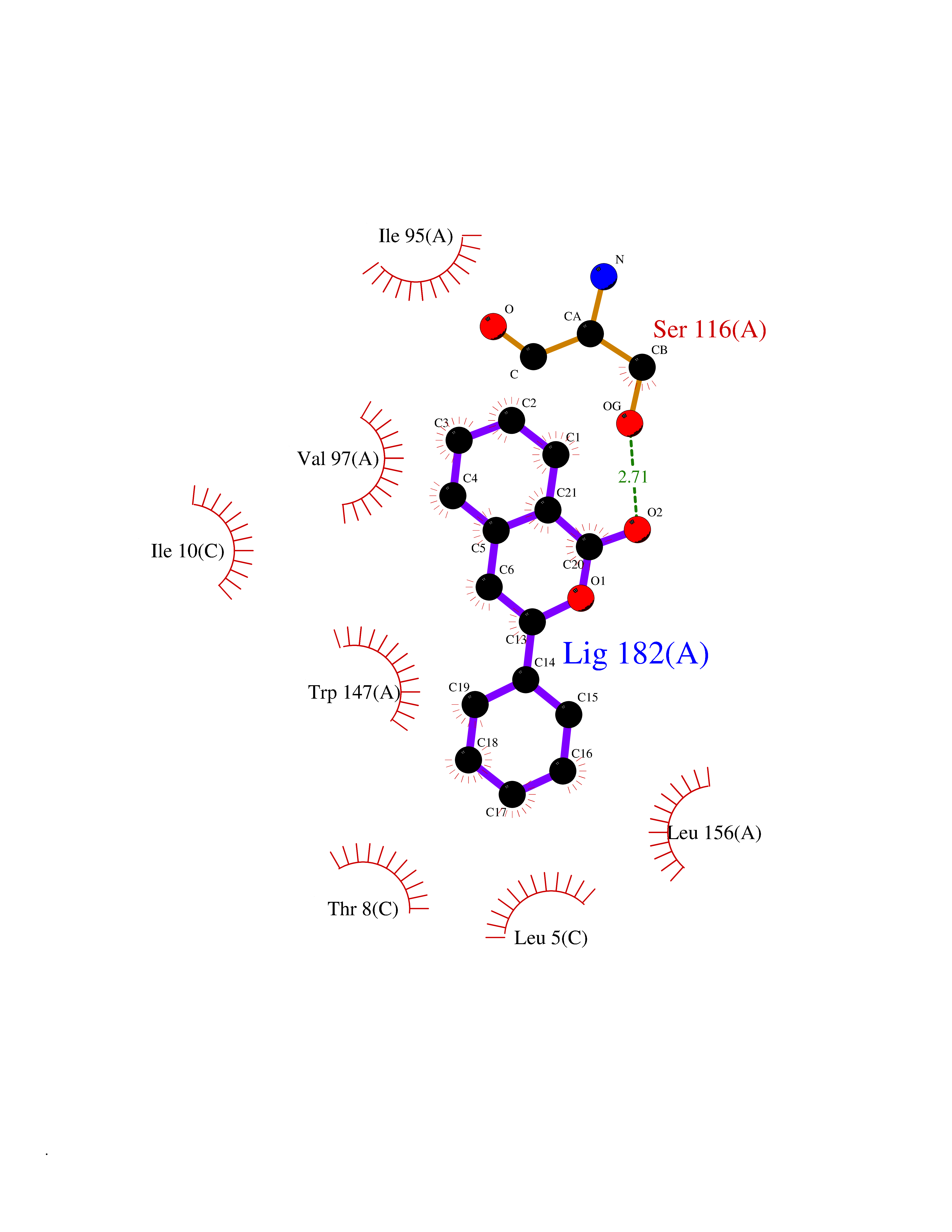 Target general information Gen name LCN2 Organism Homo sapiens (Human) Uniprot ID TTD ID Synonyms p25; Siderocalin LCN2; Oncogene 24p3; NGAL; Lipocalin-2; LCN2; 25 kDa alpha-2-microglobulin-related subunit of MMP-9 Protein family Calycin superfamily, Lipocalin family Biochemical class Calycin family Function Iron-trafficking protein involved in multiple processes such as apoptosis, innate immunity and renal development. Binds iron through association with 2,5-dihydroxybenzoic acid (2,5- DHBA), a siderophore that shares structural similarities withbacterial enterobactin, and delivers or removes iron from the cell, depending on the context. Iron-bound form (holo-24p3) is internalized following binding to the SLC22A17 (24p3R) receptor, leading to release of iron and subsequent increase of intracellular iron concentration. In contrast, association of the iron-free form (apo-24p3) with the SLC22A17 (24p3R) receptor is followed by association with an intracellular siderophore, iron chelation and iron transfer to the extracellular medium, thereby reducing intracellular iron concentration. Involved in apoptosis due to interleukin-3 (IL3) deprivation: iron-loaded form increases intracellular iron concentration without promoting apoptosis, while iron-free form decreases intracellular iron levels, inducing expression of the proapoptotic protein BCL2L11/BIM, resulting in apoptosis. Involved in innate immunity, possibly by sequestrating iron, leading to limit bacterial growth. . Related diseases Pseudovaginal perineoscrotal hypospadias (PPSH) [MIM:264600]: A form of male pseudohermaphroditism in which 46,XY males show ambiguous genitalia at birth, including perineal hypospadias and a blind perineal pouch, and develop masculinization at puberty. The name of the disorder stems from the finding of a blind-ending perineal opening resembling a vagina and a severely hypospadiac penis with the urethra opening onto the perineum. {ECO:0000269|PubMed:10718838, ECO:0000269|PubMed:10898110, ECO:0000269|PubMed:10999800, ECO:0000269|PubMed:12843198, ECO:0000269|PubMed:15064320, ECO:0000269|PubMed:1522235, ECO:0000269|PubMed:15528927, ECO:0000269|PubMed:15770495, ECO:0000269|PubMed:16098368, ECO:0000269|PubMed:16181229, ECO:0000269|PubMed:7554313, ECO:0000269|PubMed:8626825, ECO:0000269|PubMed:8768837, ECO:0000269|PubMed:9208814, ECO:0000269|PubMed:9745434, ECO:0000269|PubMed:9843052}. The disease is caused by variants affecting the gene represented in this entry. Drugs (DrugBank ID) DB02710; DB01672; DB01926; DB04043; DB01631; DB04476 Interacts with P49419-2; Q9NXW9; Q8WXI3; Q12797-6; Q9BXY8; Q96LC9; P49069; P24863; Q9UKJ5; Q9H1P6; Q9H6B4; O14595; Q08426; Q6NZ36-4; B3EWG5; Q7Z4H3; Q6ISS4; Q5TA76; P80188; Q9UIQ6-2; Q9Y6Y9; Q96JG8; Q8IXL7-2; Q969H8; Q969S2; Q17RF5; P07237; P13667; Q96FA3; Q9NRD5; Q13526; Q9UGP5-2; Q12837; P54646; Q86Y79; O60895; Q9BWG6; P60059; O43765; Q96EQ0; Q8IYX1; Q9UL33-2; P20396; O43715; Q13049; Q99816; Q5W5X9-3; Q99757; P57075-2; Q969M7; Q9UMX0; Q9UHD9; P15692-12; Q14119; Q9Y6T4; Q9H0D6; O96006; A0A1U9X8X8 EC number NA Uniprot keywords 3D-structure; Alternative splicing; Apoptosis; Cytoplasmic vesicle; Direct protein sequencing; Disulfide bond; Glycoprotein; Immunity; Innate immunity; Ion transport; Iron; Iron transport; Proteomics identification; Pyrrolidone carboxylic acid; Reference proteome; Secreted; Signal; Transport Protein physicochemical properties Chain ID A Molecular weight (Da) 19748.4 Length 172 Aromaticity 0.13 Instability index 30.73 Isoelectric point 7.71 Charge (pH=7) 0.72 3D Binding mode Sequence SDLIPAPPLSKVPLQQNFQDNQFHGKWYVVGVAGNGFLREDKDPIKMAATIYELKEDKSYNVTFQKFPMKKCQYMTDTLVPGSQPGEFTLGNIKSEPGYTSWLVRVVSTNYNQHAMVFFKAVQQNREDFFITLYGRTKELTSELKENFIRFSKSLGLPENHIVFPVPIDQCI Hydrogen bonds contact Hydrophobic contact | ||||