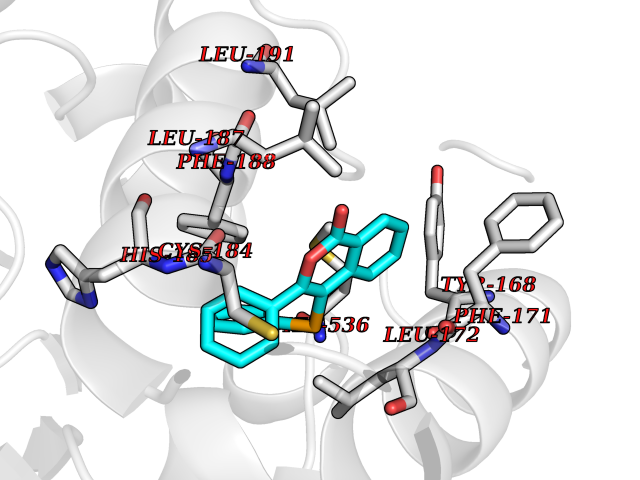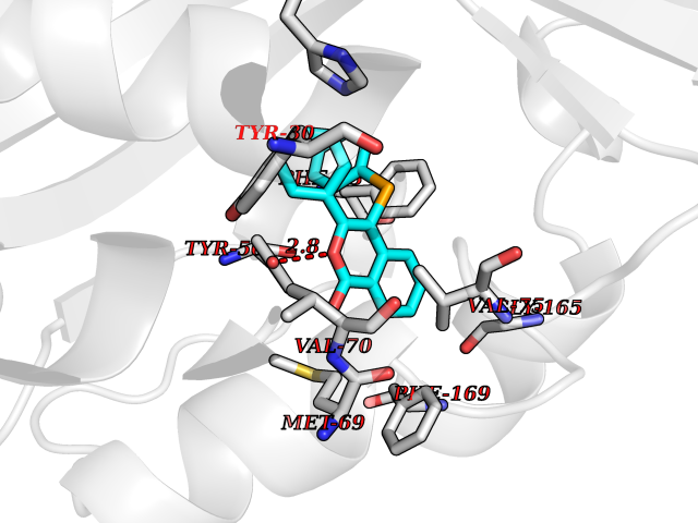 Target general information Gen name Fung SDH1 Organism Pyricularia oryzae (strain 70-15 / ATCC MYA-4617 / FGSC 8958) (Rice blast fungus) (Magnaporthe oryzae) Uniprot ID TTD ID Synonyms SDH1 Protein family Scytalone dehydratase family Biochemical class Alpha-carbonic anhydrase Function Catalyzes two steps in melanin biosynthesis. From scytalone they are two dehydration steps and one reduction step to yield melanin. Related diseases CODAS syndrome (CODASS) [MIM:600373]: A rare syndrome characterized by the combination of cerebral, ocular, dental, auricular, and skeletal features. These include developmental delay, craniofacial anomalies, cataracts, ptosis, median nasal groove, delayed tooth eruption, hearing loss, short stature, delayed epiphyseal ossification, metaphyseal hip dysplasia, and vertebral coronal clefts. {ECO:0000269|PubMed:25574826, ECO:0000269|PubMed:25808063}. The disease is caused by variants affecting the gene represented in this entry. Drugs (DrugBank ID) NA Interacts with NA EC number EC 4.2.1.94 Uniprot keywords 3D-structure; Calcium; Direct protein sequencing; Endosome; Lyase; Melanin biosynthesis; Metal-binding; Reference proteome Protein physicochemical properties Chain ID A Molecular weight (Da) 19102.4 Length 162 Aromaticity 0.14 Instability index 31.72 Isoelectric point 5.87 Charge (pH=7) -3.7 3D Binding mode Sequence GEITFSDYLGLMTCVYEWADSYDSKDWDRLRKVIAPTLRIDYRSFLDKLWEAMPAEEFVGMVSSKQVLGDPTLRTQHFIGGTRWEKVSEDEVIGYHQLRVPHQRYKDTTMKEVTMKGHAHSANLHWYKKIDGVWKFAGLKPDIRWGEFDFDRIFEDGRETFG Hydrogen bonds contact Hydrophobic contact | ||||