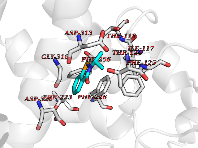 Target general information Gen name CYP2D6 Organism Homo sapiens (Human) Uniprot ID TTD ID Synonyms P450-DB1; Cytochrome P450-DB1; Cytochrome P450 2D6; CYPIID6; CYP2DL1 Protein family Cytochrome P450 family Biochemical class Paired donor oxygen oxidoreductase Function It is involved in the metabolism of drugs such as antiarrhythmics, adrenoceptor antagonists, and tricyclic antidepressants. Responsible for the metabolism of many drugs and environmental chemicals that it oxidizes. Related diseases A chromosomal aberration involving BCL2 has been found in chronic lymphatic leukemia. Translocation t(14;18)(q32;q21) with immunoglobulin gene regions. BCL2 mutations found in non-Hodgkin lymphomas carrying the chromosomal translocation could be attributed to the Ig somatic hypermutation mechanism resulting in nucleotide transitions. {ECO:0000269|PubMed:2875799, ECO:0000269|PubMed:3285301}. Drugs (DrugBank ID) DB01562; DB01472; DB14010; DB12001; DB05812; DB01193; DB00316; DB15568; DB00918; DB06203; DB00866; DB01424; DB01118; DB00321; DB00381; DB00613; DB00543; DB00182; DB00701; DB11785; DB01435; DB01429; DB01274; DB01238; DB14185; DB09204; DB11638; DB06216; DB00637; DB11586; DB00335; DB00289; DB01076; DB00972; DB04957; DB09013; DB16703; DB01086; DB06770; DB01244; DB15982; DB00195; DB01295; DB12236; DB01128; DB04889; DB00810; DB13975; DB08807; DB00188; DB09128; DB12151; DB12752; DB06726; DB00297; DB08808; DB00921; DB01156; DB00490; DB09173; DB00201; DB09061; DB14737; DB06016; DB00521; DB01136; DB00482; DB04846; DB00439; DB00185; DB00608; DB01114; DB00477; DB00356; DB01410; DB01166; DB00501; DB01012; DB00568; DB00604; DB00215; DB12499; DB00283; DB04920; DB14025; DB00349; DB00845; DB01242; DB00575; DB13508; DB00257; DB00363; DB09065; DB05239; DB00907; DB00318; DB11672; DB14635; DB00924; DB00091; DB11963; DB06292; DB04884; DB00496; DB01264; DB09183; DB04840; DB00705; DB06512; DB01151; DB06700; DB16650; DB12161; DB13679; DB09555; DB01191; DB00633; DB01576; DB00514; DB00647; DB11994; DB01551; DB00343; DB01093; DB01075; DB00757; DB01184; DB00843; DB09167; DB00590; DB01142; DB00997; DB00470; DB04855; DB00476; DB00625; DB11979; DB00216; DB15444; DB09039; DB13874; DB01228; DB06735; DB11718; DB00494; DB13757; DB00751; DB00530; DB13443; DB01175; DB06678; DB00187; DB00330; DB01466; DB01628; DB01590; DB12500; DB01023; DB00574; DB06702; DB12265; DB01195; DB04841; DB00472; DB00623; DB01095; DB00176; DB00983; DB02703; DB15149; DB00674; DB05087; DB00317; DB08909; DB00986; DB01218; DB00502; DB00956; DB01611; DB00557; DB09053; DB01177; DB04946; DB00619; DB00458; DB08952; DB00224; DB06370; DB13293; DB04818; DB16200; DB11633; DB06636; DB00951; DB11757; DB00602; DB09570; DB01026; DB00598; DB12212; DB00448; DB11732; DB16217; DB09078; DB00528; DB12070; DB09351; DB01210; DB08918; DB00281; DB04948; DB01206; DB00836; DB01601; DB00455; DB04871; DB09195; DB06708; DB04829; DB09238; DB00934; DB14921; DB00737; DB14009; DB09224; DB00170; DB00454; DB00532; DB13530; DB06691; DB01071; DB00933; DB01577; DB00333; DB00763; DB01403; DB01028; DB09241; DB01214; DB01233; DB00264; DB00379; DB06148; DB01388; DB01110; DB00211; DB01454; DB06595; DB00834; DB00805; DB08893; DB00370; DB12523; DB01171; DB00745; DB14011; DB09049; DB00731; DB04861; DB01149; DB00220; DB09048; DB00238; DB00627; DB00622; DB00699; DB02701; DB00184; DB01115; DB04868; DB12005; DB00540; DB00334; DB14881; DB00338; DB00904; DB11130; DB04911; DB01173; DB11837; DB04938; DB01096; DB01580; DB01062; DB00497; DB06412; DB01192; DB01267; DB00377; DB06603; DB00715; DB06589; DB00022; DB01359; DB00738; DB01074; DB08922; DB00850; DB03783; DB00780; DB00914; DB00252; DB05316; DB01100; DB00960; DB00592; DB01621; DB04951; DB17472; DB11642; DB08901; DB01297; DB15822; DB01087; DB01035; DB00433; DB00396; DB01131; DB00420; DB01069; DB09288; DB01182; DB00571; DB04216; DB01224; DB00908; DB00468; DB01129; DB00863; DB00243; DB00234; DB14761; DB00409; DB06506; DB02709; DB11855; DB13174; DB11753; DB08864; DB14840; DB00734; DB12693; DB00503; DB00953; DB09291; DB15119; DB00412; DB05271; DB12332; DB11614; DB06654; DB01232; DB01037; DB06144; DB01104; DB00203; DB00641; DB01591; DB00398; DB12713; DB00489; DB06727; DB01323; DB09118; DB06820; DB06729; DB06608; DB11770; DB00675; DB00706; DB06204; DB06083; DB01079; DB12095; DB06287; DB00857; DB00342; DB13775; DB04905; DB04844; DB11712; DB00277; DB00679; DB01623; DB00208; DB00373; DB01409; DB00932; DB06137; DB01036; DB05109; DB00193; DB00752; DB00656; DB12245; DB00726; DB00792; DB00209; DB15328; DB09076; DB13609; DB15091; DB11915; DB00862; DB08881; DB00285; DB00661; DB06217; DB06684; DB09185; DB00570; DB00361; DB11739; DB09068; DB01392; DB00549; DB15688; DB00425; DB01624 Interacts with NA EC number EC 1.14.14.- Uniprot keywords 3D-structure; Alternative splicing; Cholesterol metabolism; Endoplasmic reticulum; Fatty acid metabolism; Heme; Iron; Lipid metabolism; Membrane; Metal-binding; Microsome; Monooxygenase; Oxidoreductase; Proteomics identification; Reference proteome; Steroid metabolism; Sterol metabolism Protein physicochemical properties Chain ID A Molecular weight (Da) 51898.1 Length 464 Aromaticity 0.09 Instability index 43.83 Isoelectric point 6.76 Charge (pH=7) -0.99 3D Binding mode Sequence GKLPPGPLPLPGLGNLLFQNTPYCFDQLRRRFGDVFSLQLAWTPVVVLNGLAAVREALVTHGEDTADRPPVPITQILGFGPRSQGVFLARYGPAWREQRRFSVSTLRNLGLGKKSLEQWVTEEAACLCAAFANHSGRPFRPNGLLDKAVSNVIASLTCGRRFEYDDPRFLRLLDLAQEGLKEESGFLREVLNAVPVLLHIPALAGKVLRFQKAFLTQLDELLTEHRMTWDPAQPPRDLTEAFLAEMEKAKGNPESSFNDENLRIVVADLFSAGMVTTSTTLAWGLLLMILHPDVQRRVQQEIDDVIGQVRRPEMGDQAHMPYTTAVIHEVQRFGDIVPLGVTHMTSRDIEVQGFRIPKGTTLITNLSSVLKDEAVWEKPFRFHPEHFLDAQGHFVKPEAFLPFSAGRRACLGEPLARMELFLFFTSLLQHFSFSVPTGQPRPSHHGVFAFLVSPSPYELCAVPR Hydrogen bonds contact Hydrophobic contact | ||||