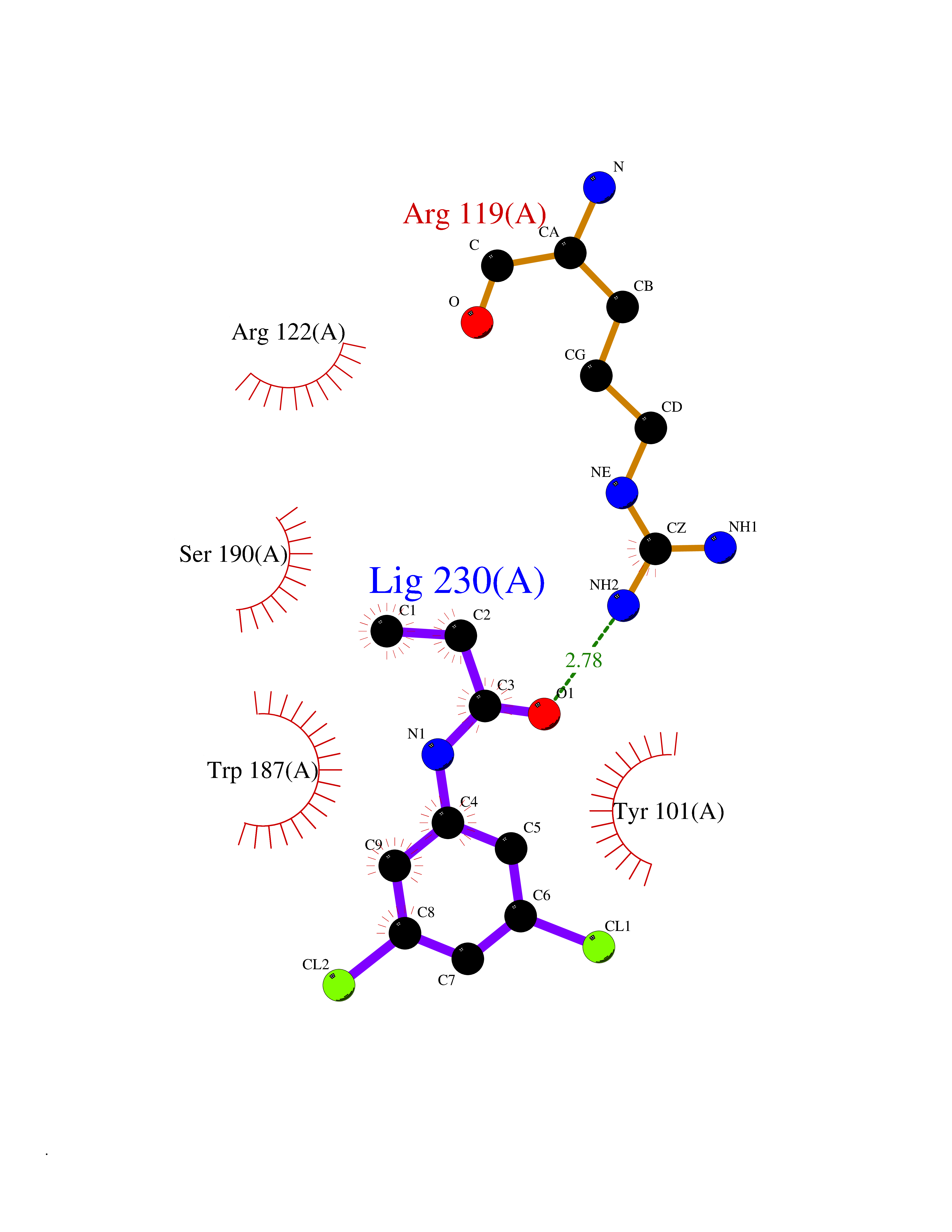 Target general information Gen name AGXT Organism Homo sapiens (Human) Uniprot ID TTD ID NA Synonyms AGT1;SPAT Protein family Class-V pyridoxal-phosphate-dependent aminotransferase family Biochemical class Transferase Function Alanine-glyoxylate transaminase activity.Amino acid binding.Identical protein binding.Protein homodimerization activity.Protein self-association.Pyridoxal phosphate binding.Receptor binding.Serine-pyruvate transaminase activity.Transaminase activity. Related diseases Hyperoxaluria primary 1 (HP1) [MIM:259900]: An inborn error of glyoxylate metabolism characterized by increased excretion of oxalate and glycolate, and progressive tissue accumulation of insoluble calcium oxalate. Affected individuals are at risk for nephrolithiasis, nephrocalcinosis and early onset end-stage renal disease. {ECO:0000269|PubMed:10394939, ECO:0000269|PubMed:10453743, ECO:0000269|PubMed:10541294, ECO:0000269|PubMed:10862087, ECO:0000269|PubMed:10960483, ECO:0000269|PubMed:12559847, ECO:0000269|PubMed:12777626, ECO:0000269|PubMed:1301173, ECO:0000269|PubMed:1349575, ECO:0000269|PubMed:15253729, ECO:0000269|PubMed:15849466, ECO:0000269|PubMed:15961946, ECO:0000269|PubMed:15963748, ECO:0000269|PubMed:16971151, ECO:0000269|PubMed:1703535, ECO:0000269|PubMed:17495019, ECO:0000269|PubMed:2039493, ECO:0000269|PubMed:23229545, ECO:0000269|PubMed:24055001, ECO:0000269|PubMed:24934730, ECO:0000269|PubMed:26149463, ECO:0000269|PubMed:8101040, ECO:0000269|PubMed:9192270, ECO:0000269|PubMed:9604803}. The disease is caused by variants affecting the gene represented in this entry. Drugs (DrugBank ID) DB08060; DB00160; DB02079; DB00145; DB04083; DB00114; DB00133 Interacts with Q5BKX5-3; P21549; P0C7T5; Q9NR55; Q9H5F2; Q9UKJ5; A8MQ03; O43281-2; A1KXE4-2; Q5TD97; P49356; P53539; P49639; Q15323; O76011; O76014; Q6A162; Q07627; P60328; Q9BYR8; Q3LI67; Q8IUC2; Q9BYQ4; O60711; Q99750; Q5VZ52; P0DPK4; O43482; P50542-1; O15496; Q6ZR37; Q9NQX0; Q8HWS3; Q5W111-2; Q8WVR3; Q6DKK2 EC number 2.6.1.44; 2.6.1.51 Uniprot keywords 3D-structure; Acetylation; Aminotransferase; Disease variant; Peroxisome; Phosphoprotein; Proteomics identification; Pyridoxal phosphate; Reference proteome; Transferase Protein physicochemical properties Chain ID A,B Molecular weight (Da) 84537 Length 771 Aromaticity 0.07 Instability index 36.81 Isoelectric point 8.42 Charge (pH=7) 6.81 3D Binding mode Sequence LLVTPPKALLKPLSIPNQLLLGPGPSNLPPRIMAAGGLQMIGSMSKDMYQIMDEIKEGIQYVFQTRNPLTLVISGSGHCALEAALVNVLEPGDSFLVGANGIWGQRAVDIGERIGARVHPMTKDPGGHYTLQEVEEGLAQHKPVLLFLTHGESSTGVLQPLDGFGELCHRYKCLLLVDSVASLGGTPLYMDRQGIDILYSGSQKALNAPPGTSLISFSDKAKKKMYSRKTKPFSFYLDIKWLANFWGCDDQPRMYHHTIPVISLYSLRESLALIAEQGLENSWRQHREAAAYLHGRLQALGLQLFVKDPALRLPTVTTVAVPAGYDWRDIVSYVIDHFDIEIMGGLGPSTGKVLRIGLLGCNATRENVDRVTEALRAALQHCPKKLLVTPPKALLKPLSIPNQLLLGPGPSNLPPRIMAAGGLQMIGSMSKDMYQIMDEIKEGIQYVFQTRNPLTLVISGSGHCALEAALVNVLEPGDSFLVGANGIWGQRAVDIGERIGARVHPMTKDPGGHYTLQEVEEGLAQHKPVLLFLTHGESSTGVLQPLDGFGELCHRYKCLLLVDSVASLGGTPLYMDRQGIDILYSGSQKALNAPPGTSLISFSDKAKKKMYSRKTKPFSFYLDIKWLANFWGCDDQPRMYHHTIPVISLYSLRESLALIAEQGLENSWRQHREAAAYLHGRLQALGLQLFVKDPALRLPTVTTVAVPAGYDWRDIVSYVIDHFDIEIMGGLGPSTGKVLRIGLLGCNATRENVDRVTEALRAALQHCPKKK Hydrogen bonds contact Hydrophobic contact | ||||