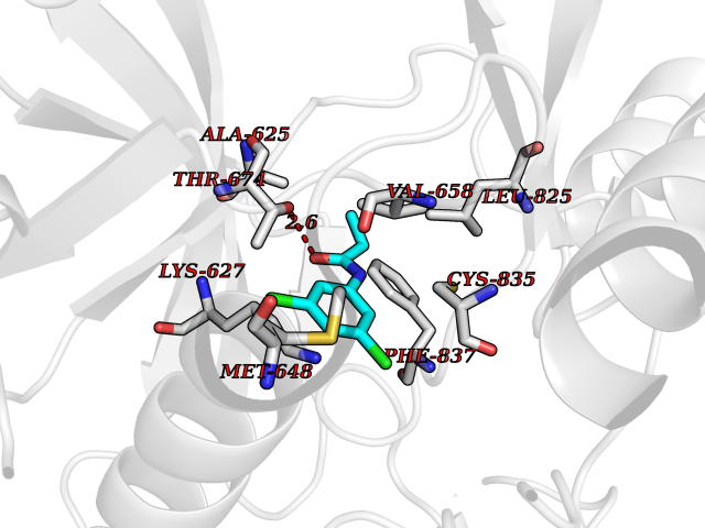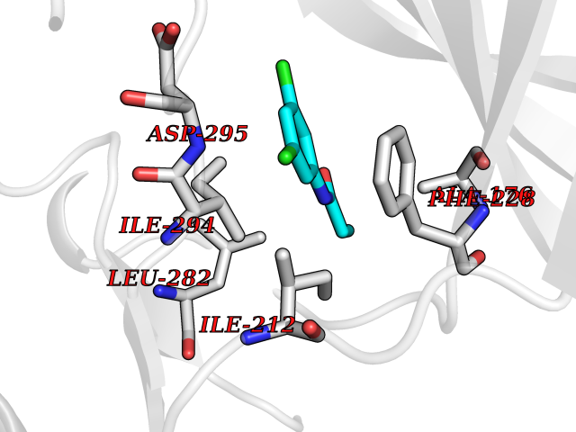 Target general information Gen name PDGFRA Organism Homo sapiens (Human) Uniprot ID TTD ID Synonyms RHEPDGFRA; Platelet-derived growth factor receptor 2; Platelet-derived growth factor alpha receptor; PDGFR2; PDGFR-alpha; PDGFR-2; PDGF-R-alpha; CD140a antigen; CD140a; CD140 antigen-like family membe Protein family Protein kinase superfamily, Tyr protein kinase family, CSF-1/PDGF receptor subfamily Biochemical class Kinase Function Depending on the context, promotes or inhibits cell proliferation and cell migration. Plays an important role in the differentiation of bone marrow-derived mesenchymal stem cells. Required for normal skeleton development and cephalic closure during embryonic development. Required for normal development of the mucosa lining the gastrointestinal tract, and for recruitment of mesenchymal cells and normal development of intestinal villi. Plays a role in cell migration and chemotaxis in wound healing. Plays a role in platelet activation, secretion of agonists from platelet granules, and in thrombin-induced platelet aggregation. Binding of its cognate ligands - homodimeric PDGFA, homodimeric PDGFB, heterodimers formed by PDGFA and PDGFB or homodimeric PDGFC -leads to the activation of several signaling cascades; the response depends on the nature of the bound ligand and is modulated by the formation of heterodimers between PDGFRA and PDGFRB. Phosphorylates PIK3R1, PLCG1, and PTPN11. Activation of PLCG1 leads to the production of the cellular signaling molecules diacylglycerol and inositol 1,4,5-trisphosphate, mobilization of cytosolic Ca(2+) and the activation of protein kinase C. Phosphorylates PIK3R1, the regulatory subunit of phosphatidylinositol 3-kinase, and thereby mediates activation of the AKT1 signaling pathway. Mediates activation of HRAS and of the MAP kinases MAPK1/ERK2 and/or MAPK3/ERK1. Promotes activation of STAT family members STAT1, STAT3 and STAT5A and/or STAT5B. Receptor signaling is down-regulated by protein phosphatases that dephosphorylate the receptor and its down-stream effectors, and by rapid internalization of the activated receptor. Tyrosine-protein kinase that acts as a cell-surface receptor for PDGFA, PDGFB and PDGFC and plays an essential role in the regulation of embryonic development, cell proliferation, survival and chemotaxis. Related diseases A chromosomal aberration involving PDGFRA is found in some cases of hypereosinophilic syndrome. Interstitial chromosomal deletion del(4)(q12q12) causes the fusion of FIP1L1 and PDGFRA (FIP1L1-PDGFRA). Mutations that cause overexpression and/or constitutive activation of PDGFRA may be a cause of hypereosinophilic syndrome. {ECO:0000269|PubMed:12808148}.; DISEASE: Gastrointestinal stromal tumor (GIST) [MIM:606764]: Common mesenchymal neoplasms arising in the gastrointestinal tract, most often in the stomach. They are histologically, immunohistochemically, and genetically different from typical leiomyomas, leiomyosarcomas, and schwannomas. Most GISTs are composed of a fairly uniform population of spindle-shaped cells. Some tumors are dominated by epithelioid cells or contain a mixture of spindle and epithelioid morphologies. Primary GISTs in the gastrointestinal tract commonly metastasize in the omentum and mesenteries, often as multiple nodules. However, primary tumors may also occur outside of the gastrointestinal tract, in other intra-abdominal locations, especially in the omentum and mesentery. {ECO:0000269|PubMed:12522257, ECO:0000269|PubMed:15928335}. The gene represented in this entry may be involved in disease pathogenesis. Mutations causing PDGFRA constitutive activation have been found in gastrointestinal stromal tumors lacking KIT mutations (PubMed:12522257). {ECO:0000269|PubMed:12522257}.; DISEASE: GIST-plus syndrome (GISTPS) [MIM:175510]: A disorder characterized by multiple mesenchymal tumors of the gastrointestinal tract, including gastrointestinal stromal tumor, inflammatory fibroid polyps, and fibroid tumors. Additional features are coarse facies and skin, broad hands and feet, and premature tooth loss. GISTPS is an autosomal dominant disease with incomplete penetrance. Gastrointestinal stromal tumor and inflammatory fibroid polyps may also occur in isolation. {ECO:0000269|PubMed:14699510, ECO:0000269|PubMed:17087943, ECO:0000269|PubMed:25975287}. The disease is caused by variants affecting the gene represented in this entry. Drugs (DrugBank ID) DB12742; DB00102; DB12147; DB10772; DB12010; DB00619; DB09078; DB06595; DB09079; DB06043; DB06589; DB08901; DB08896; DB14840; DB01268; DB11800; DB05146 Interacts with P46108; P46109; P00533; Q8N6L0; P04085; P01127; Q9NRA1; P31947; P62258; Q9NRA1-1; A8T7D5; P05067; Q8IY26 EC number EC 2.7.10.1 Uniprot keywords 3D-structure; Alternative splicing; ATP-binding; Cell membrane; Cell projection; Chemotaxis; Developmental protein; Disease variant; Disulfide bond; Glycoprotein; Golgi apparatus; Host-virus interaction; Immunoglobulin domain; Kinase; Membrane; Nucleotide-binding; Phosphoprotein; Proteomics identification; Proto-oncogene; Receptor; Reference proteome; Repeat; Signal; Transferase; Transmembrane; Transmembrane helix; Tyrosine-protein kinase; Ubl conjugation Protein physicochemical properties Chain ID A Molecular weight (Da) 39294.8 Length 345 Aromaticity 0.11 Instability index 46.74 Isoelectric point 6.6 Charge (pH=7) -1.38 3D Binding mode Sequence RYEIRWRVIESISPDGHEYIYVDPMQLPYDSRWEFPRDGLVLGRVLGSGAFGKVVEGTAYGLSRSQPVMKVAVKMLKPTARSSEKQALMSELKIMTHLGPHLNIVNLLGACTKSGPIYIITEYCFYGDLVNYLHKNRDSFLSHSMLDSEVKNLLSDDNSEGLTLLDLLSFTYQVARGMEFLASKNCVHRDLAARNVLLAQGKIVKICDFGLARDIMHDSNYVSKGSTFLPVKWMAPESIFDNLYTTLSDVWSYGILLWEIFSLGGTPYPGMMVDSTFYNKIKSGYRMAKPDHATSEVYEIMVKCWNSEPEKRPSFYHLSEIVENLLPGQYKKSYEKIHLDFLKSD Hydrogen bonds contact Hydrophobic contact | ||||