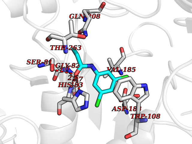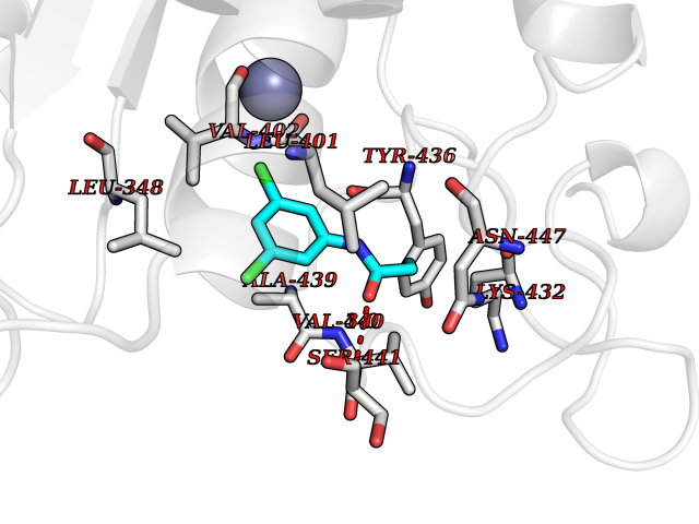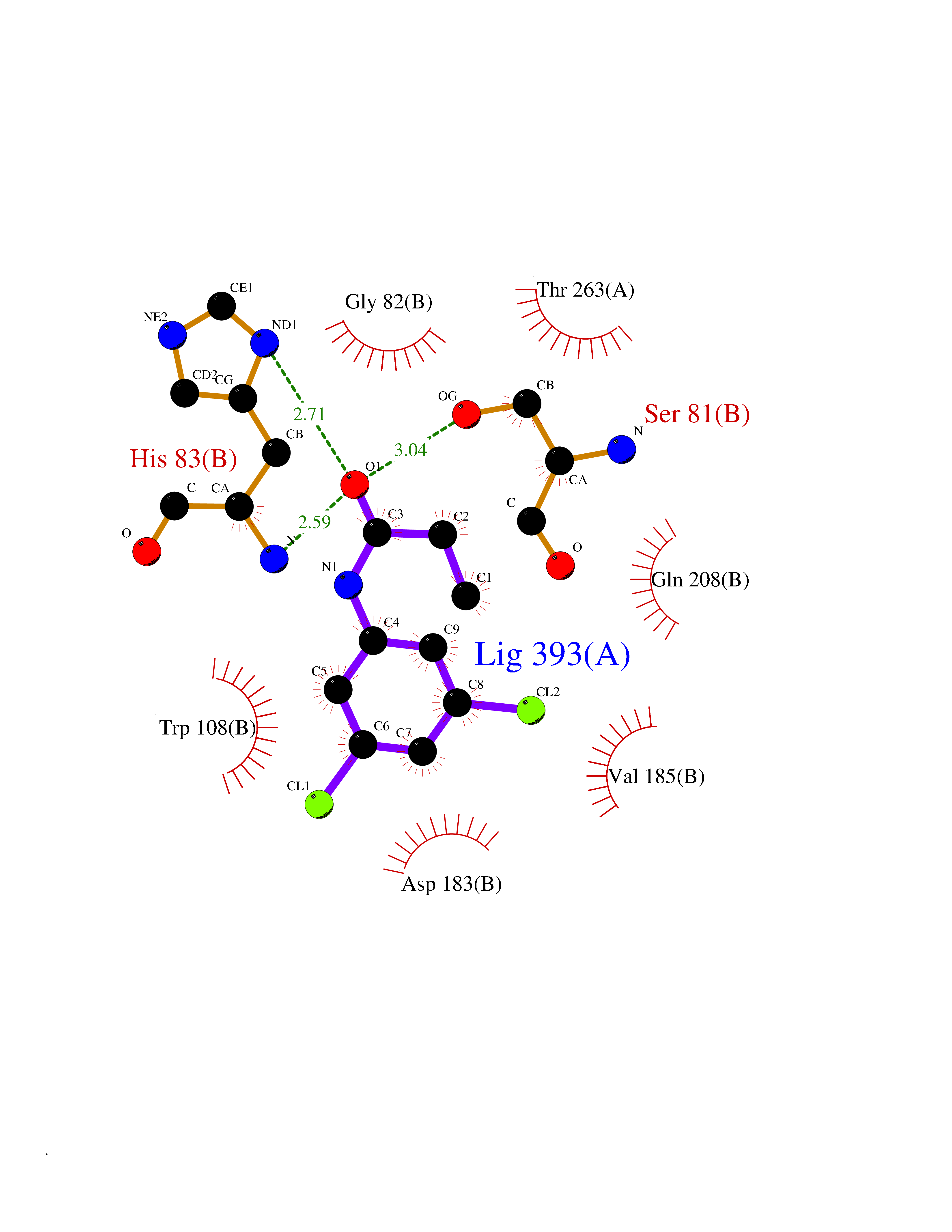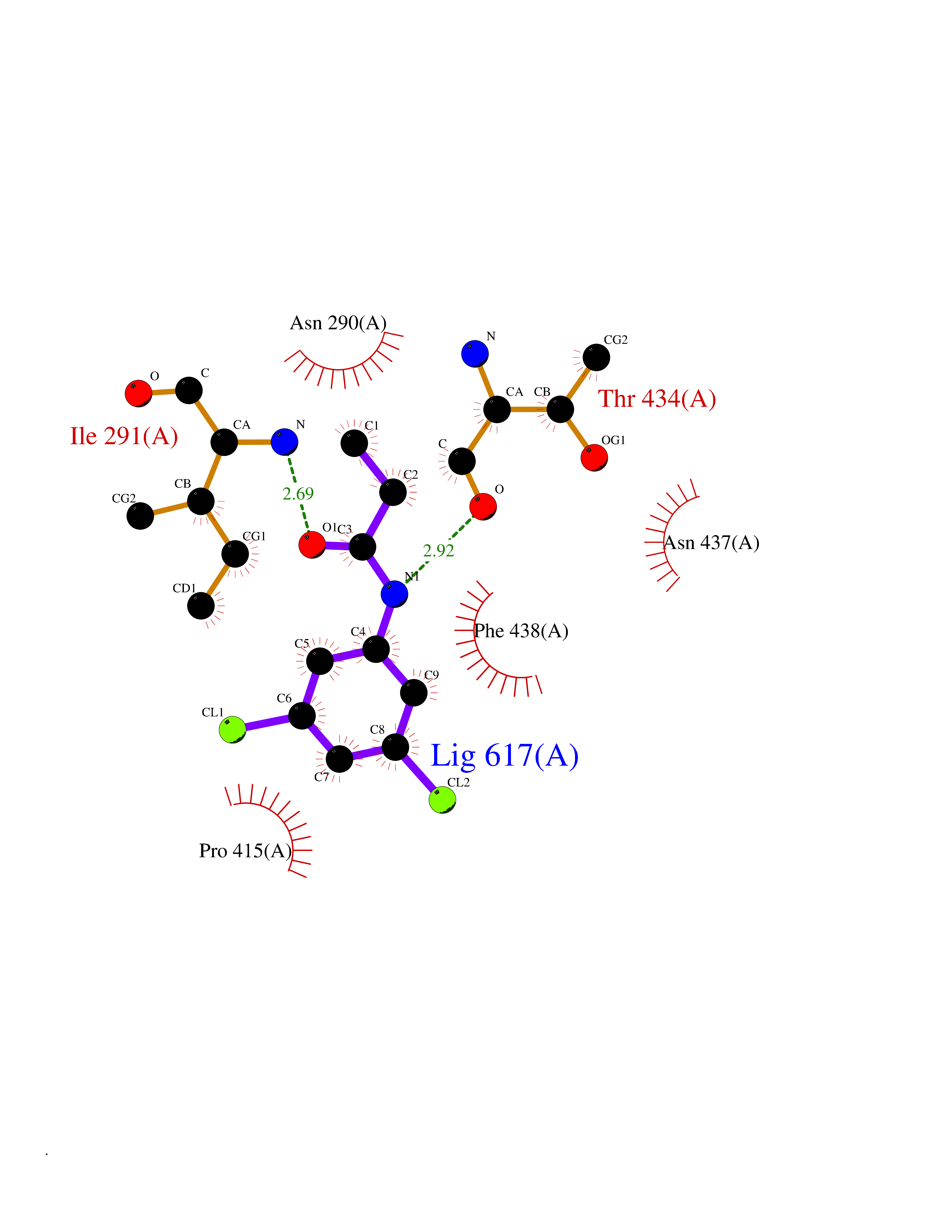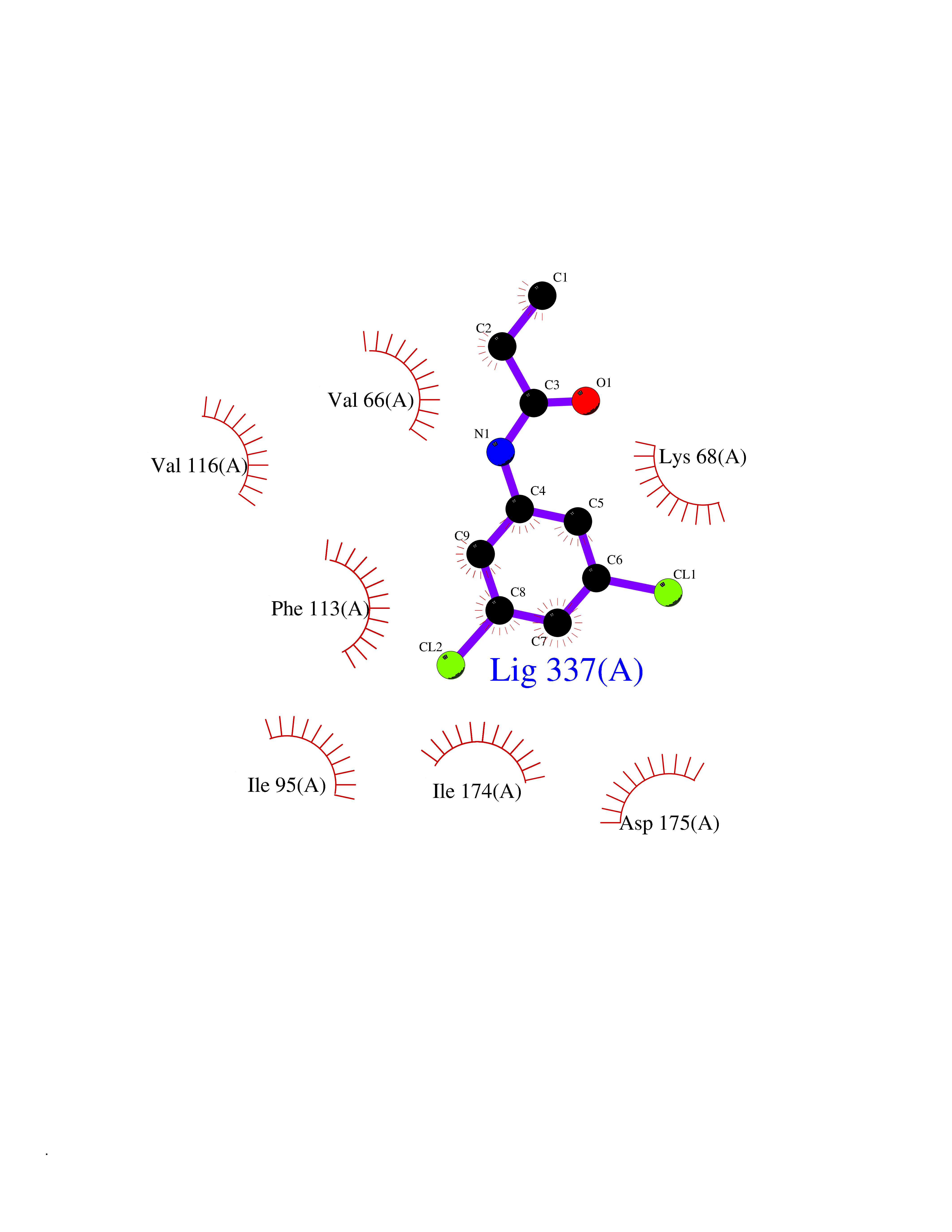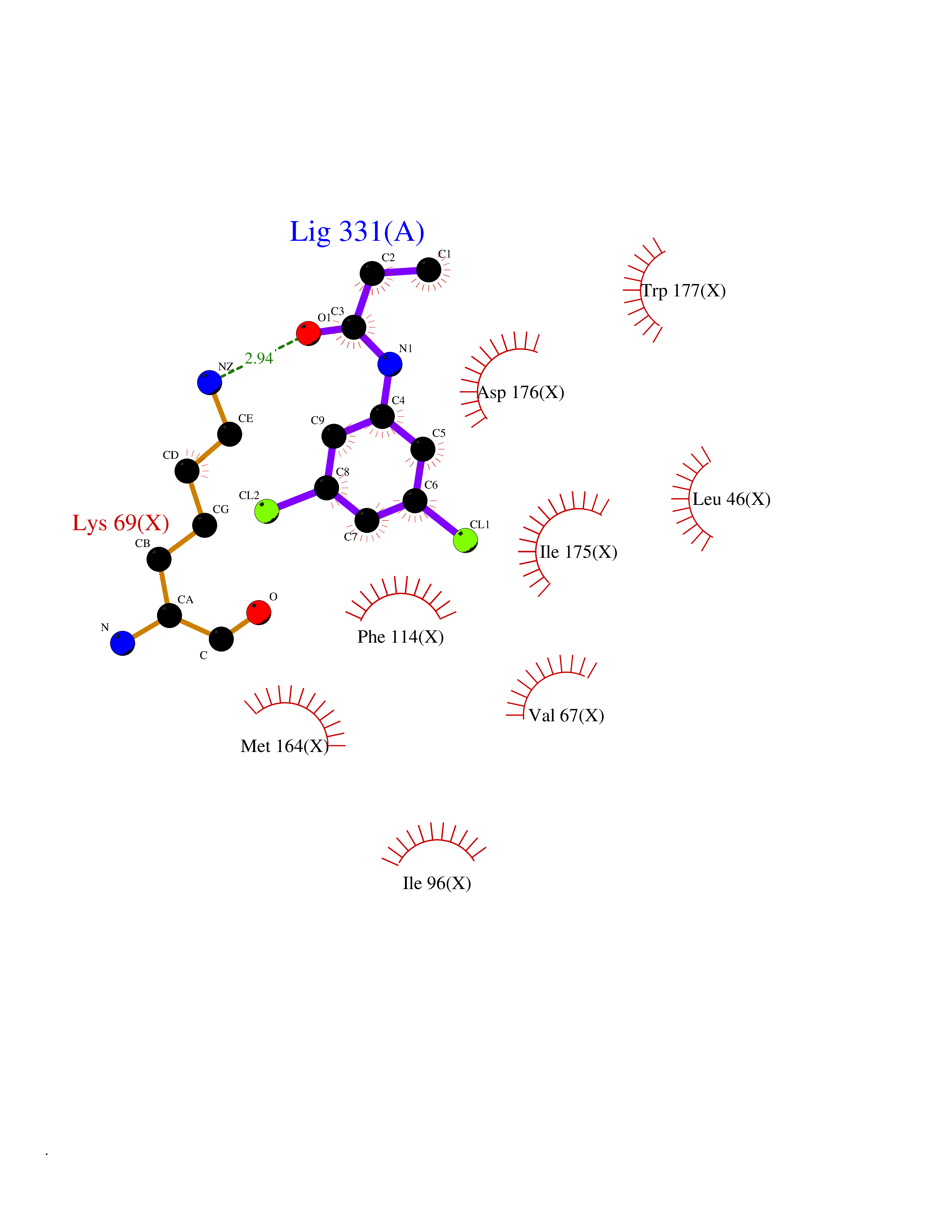 Target general information Gen name Malaria DXR Organism Plasmodium falciparum (isolate HB3) Uniprot ID TTD ID Synonyms IspC; DXR; DXP reductoisomerase; DOXP reductoisomerase; 2-C-Methyl-d-erythritol 4-phosphate synthase; 1-deoxyxylulose-5-phosphate reductoisomerase Protein family DXR family Biochemical class Short-chain dehydrogenases reductase Function Catalyzes the NADP-dependent rearrangement and reduction of 1-deoxy-D-xylulose-5-phosphate (DXP) to 2-C-methyl-D-erythritol 4-phosphate (MEP). Related diseases Ichthyosis, congenital, autosomal recessive 11 (ARCI11) [MIM:602400]: A form of autosomal recessive congenital ichthyosis, a disorder of keratinization with abnormal differentiation and desquamation of the epidermis, resulting in abnormal skin scaling over the whole body. The main skin phenotypes are lamellar ichthyosis (LI) and non-bullous congenital ichthyosiform erythroderma (NCIE), although phenotypic overlap within the same patient or among patients from the same family can occur. Lamellar ichthyosis is a condition often associated with an embedment in a collodion-like membrane at birth; skin scales later develop, covering the entire body surface. Non-bullous congenital ichthyosiform erythroderma characterized by fine whitish scaling on an erythrodermal background; larger brownish scales are present on the buttocks, neck and legs. {ECO:0000269|PubMed:17273967, ECO:0000269|PubMed:18843291}. The disease is caused by variants affecting the gene represented in this entry. Drugs (DrugBank ID) NA Interacts with NA EC number EC 1.1.1.267 Uniprot keywords 3D-structure; Apicoplast; Isoprene biosynthesis; Magnesium; Manganese; Metal-binding; NADP; Oxidoreductase; Plastid; Transit peptide Protein physicochemical properties Chain ID A Molecular weight (Da) 46644.4 Length 410 Aromaticity 0.09 Instability index 36.77 Isoelectric point 6.95 Charge (pH=7) -0.14 3D Binding mode Sequence PINVAIFGSTGSIGTNALNIIRECNKIENVFNVKALYVNKSVNELYEQAREFLPEYLCIHDKSVYEELKELVKNIKDYKPIILCGDEGMKEICSSNSIDKIVIGIDSFQGLYSTMYAIMNNKIVALANKESIVSAGFFLKKLLNIHKNAKIIPVDSEHSAIFQCLDNNKVLKTKCLQDNFSKINNINKIFLCSSGGPFQNLTMDELKNVTSENALKHPKWKMGKKITIDSATMMNKGLEVIETHFLFDVDYNDIEVIVHKECIIHSCVEFIDKSVISQMYYPDMQIPILYSLTWPDRIKTNLKPLDLAQVSTLTFHKPSLEHFPCIKLAYQAGIKGNFYPTVLNASNEIANNLFLNNKIKYFDISSIISQVLESFNSQKVSENSEDLMKQILQIHSWAKDKATDIYNKHN Hydrogen bonds contact Hydrophobic contact | ||||