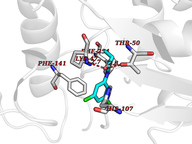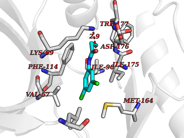 Target general information Gen name CSNK2A2 Organism Homo sapiens (Human) Uniprot ID TTD ID Synonyms Casein kinase II subunit alpha'; CK2A2; CK II alpha' Protein family Protein kinase superfamily, Ser/Thr protein kinase family, CK2 subfamily Biochemical class Kinase Function Regulates numerous cellular processes, such as cell cycle progression, apoptosis and transcription, as well as viral infection. May act as a regulatory node which integrates and coordinates numerous signals leading to an appropriate cellular response. During mitosis, functions as a component of the p53/TP53-dependent spindle assembly checkpoint (SAC) that maintains cyclin-B-CDK1 activity and G2 arrest in response to spindle damage. Also required for p53/TP53-mediated apoptosis, phosphorylating 'Ser-392' of p53/TP53 following UV irradiation. Can also negatively regulate apoptosis. Phosphorylates the caspases CASP9 and CASP2 and the apoptotic regulator NOL3. Phosphorylation protects CASP9 from cleavage and activation by CASP8, and inhibits the dimerization of CASP2 and activation of CASP8. Regulates transcription by direct phosphorylation of RNA polymerases I, II, III and IV. Also phosphorylates and regulates numerous transcription factors including NF-kappa-B, STAT1, CREB1, IRF1, IRF2, ATF1, SRF, MAX, JUN, FOS, MYC and MYB. Phosphorylates Hsp90 and its co-chaperones FKBP4 and CDC37, which is essential for chaperone function. Regulates Wnt signaling by phosphorylating CTNNB1 and the transcription factor LEF1. Acts as an ectokinase that phosphorylates several extracellular proteins. During viral infection, phosphorylates various proteins involved in the viral life cycles of EBV, HSV, HBV, HCV, HIV, CMV and HPV. Catalytic subunit of a constitutively active serine/threonine-protein kinase complex that phosphorylates a large number of substrates containing acidic residues C-terminal to the phosphorylated serine or threonine. Related diseases Neurodevelopmental disorder with language delay and seizures (NEDLDS) [MIM:619908]: An autosomal recessive disorder characterized by global developmental delay, intellectual disability, speech delay, and seizures. Additional features may include axial hypotonia, peripheral hypertonia, hypothyroidism, and non-specific dysmorphic features or brain imaging abnormalities. {ECO:0000269|PubMed:35240055}. The disease may be caused by variants affecting the gene represented in this entry. Drugs (DrugBank ID) DB07546; DB12010 Interacts with Q8NDY6; P68400; P67870; O60282; Q9NRD5; Q8WV44; Q9BS34 EC number EC 2.7.11.1 Uniprot keywords 3D-structure; Acetylation; Apoptosis; ATP-binding; Cell cycle; Cytoplasm; Kinase; Nucleotide-binding; Nucleus; Phosphoprotein; Proteomics identification; Reference proteome; Serine/threonine-protein kinase; Transcription; Transcription regulation; Transferase; Wnt signaling pathway Protein physicochemical properties Chain ID X Molecular weight (Da) 38039.2 Length 319 Aromaticity 0.13 Instability index 43.61 Isoelectric point 8.29 Charge (pH=7) 3.03 3D Binding mode Sequence AGSRARVYAEVNSLRSREYWDYEAHVPSWGNQDDYQLVRKLGEVFEAINITNNERVVVKILKPVKKKKIKREVKILENLRGGTNIIKLIDTVKDPVSKTPALVFEYINNTDFKQLYQILTDFDIRFYMYELLKALDYCHSKGIMHRDVKPHNVMIDHQQKKLRLIDWGLAEFYHPAQEYNVRVASRYFKGPELLVDYQMYDYSLDMWSLGCMLASMIFRREPFFHGQDNYDQLVRIAKVLGTEELYGYLKKYHIDLDPHFNDILGQHSRKRWENFIHSENRHLVSPEALDLLDKLLRYDHQQRLTAKEAMEHPYFYPVV Hydrogen bonds contact Hydrophobic contact | ||||