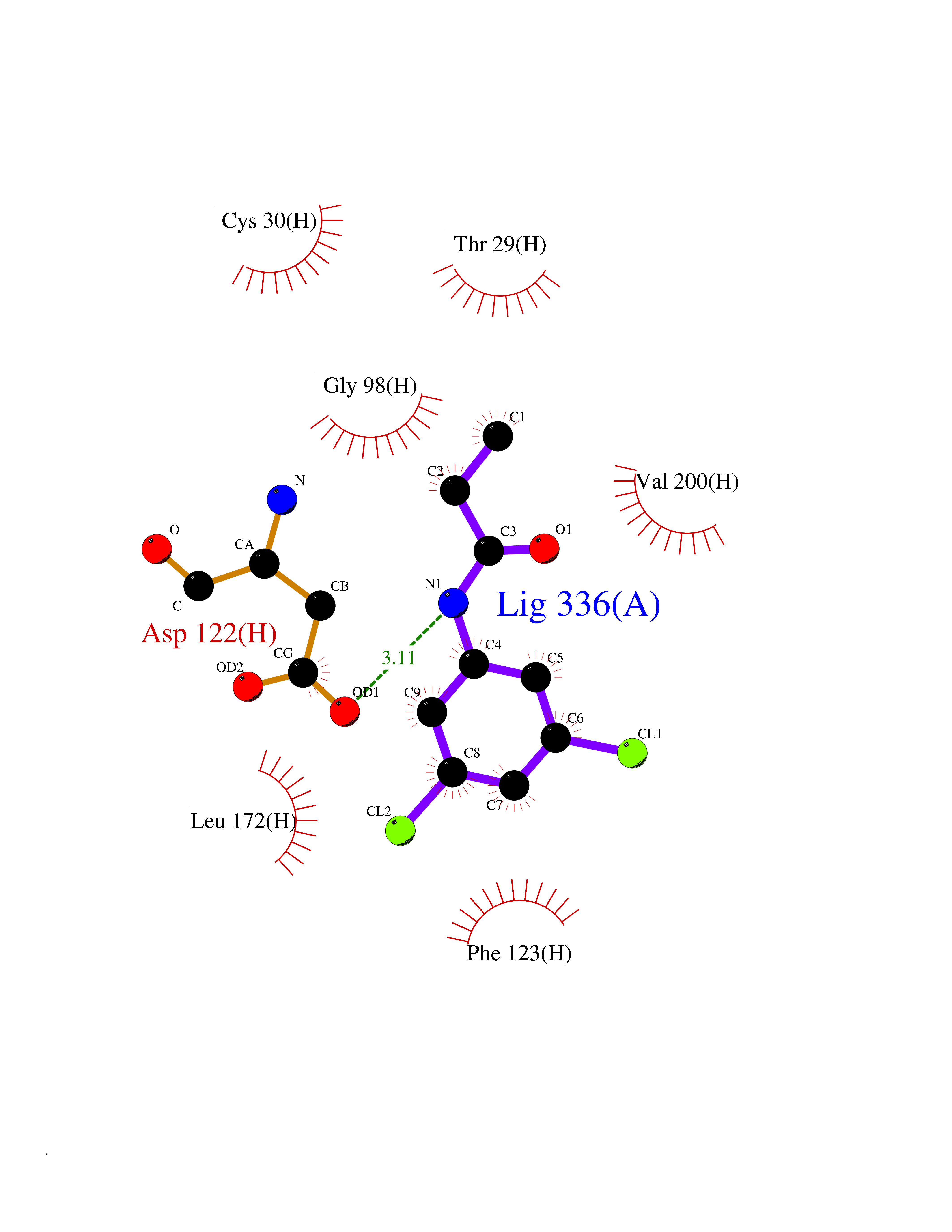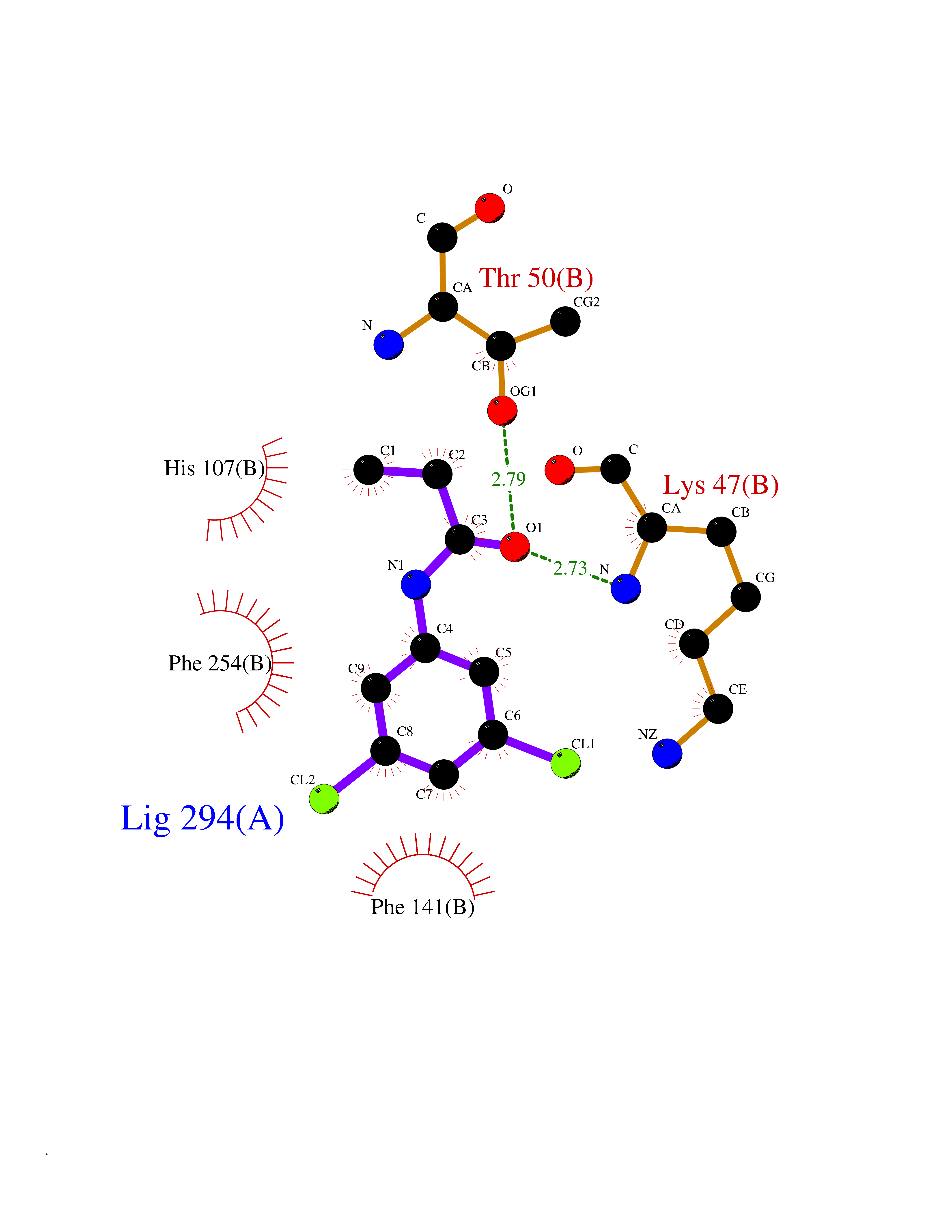 Target general information Gen name CRBN Organism Homo sapiens (Human) Uniprot ID TTD ID Synonyms Protein cereblon Protein family CRBN family Biochemical class NA Function Substrate recognition component of a DCX (DDB1-CUL4-X-box) E3 protein ligase complex that mediates the ubiquitination and subsequent proteasomal degradation of target proteins, such as MEIS2. Normal degradation of key regulatory proteins is required for normal limb outgrowth and expression of the fibroblast growth factor FGF8. May play a role in memory and learning by regulating the assembly and neuronal surface expression of large-conductance calcium-activated potassium channels in brain regions involved in memory and learning via its interaction with KCNT1. Binding of pomalidomide and other thalidomide-related drugs changes the substrate specificity of the human protein, leading to decreased degradation of MEIS2 and other target proteins and increased degradation of MYC, IRF4, IKZF1 and IKZF3. Related diseases Intellectual developmental disorder, autosomal recessive 2 (MRT2) [MIM:607417]: A disorder characterized by significantly below average general intellectual functioning associated with impairments in adaptive behavior and manifested during the developmental period. MRT2 patients display mild intellectual disability with a standard IQ ranged from 50 to 70. IQ scores are lower in males than females. Developmental milestones are mildly delayed. There are no dysmorphic or autistic features. {ECO:0000269|PubMed:15557513, ECO:0000269|PubMed:28143899}. The disease is caused by variants affecting the gene represented in this entry. Drugs (DrugBank ID) DB00480; DB08910; DB01041 Interacts with Q96A83-2; P48729; Q16531; O14901; Q8IVT2; Q9P286; A0A6Q8PF08; Q93062; Q16531; Q13422-7 EC number NA Uniprot keywords 3D-structure; Alternative splicing; Cytoplasm; Disease variant; Intellectual disability; Membrane; Metal-binding; Nucleus; Phosphoprotein; Proteomics identification; Reference proteome; Ubl conjugation; Ubl conjugation pathway; Zinc Protein physicochemical properties Chain ID B,E Molecular weight (Da) 38245.7 Length 337 Aromaticity 0.08 Instability index 40.62 Isoelectric point 5.7 Charge (pH=7) -6.53 3D Binding mode Sequence EFIVGGKYKLNITNGEEVAVINFDTSLPTSHTYLGADMEEFHGRTLHDDDSCQVIPVLPQVMMILIPGQTLPLQLFHPQEVSMVRNLIQKDRTFAVLAYSNVQEREAQFGTTAEIYAYREEIVKVKAIGRQRFKVLEQQAKVQILPECVLAETLMDRIKKQLREWDENLKDDSLPSNPIDFSYRVAACLPIDDVLRIQLLKIGSAIQRLRCELDIMNKCTSLCCKQCQETEITTKNEIFSLSLCGPMAAYVNPHGYVHETLTVYKACNLNLIGRPSTEHSWFPGYAWTVAQCKICASHIGWKFTATKKDMSPQKFWGLTRSALLPTIPDTEDEISPD Hydrogen bonds contact Hydrophobic contact | ||||