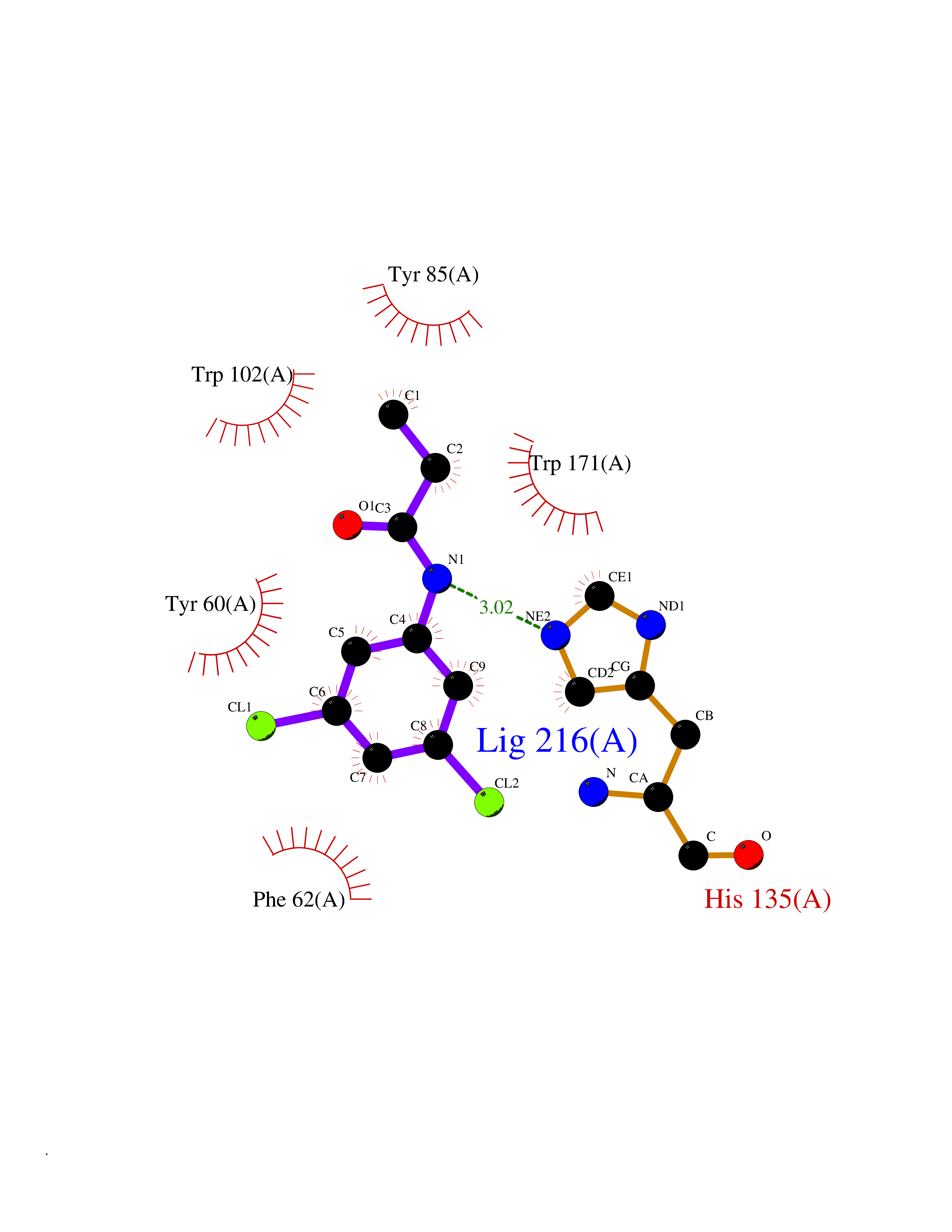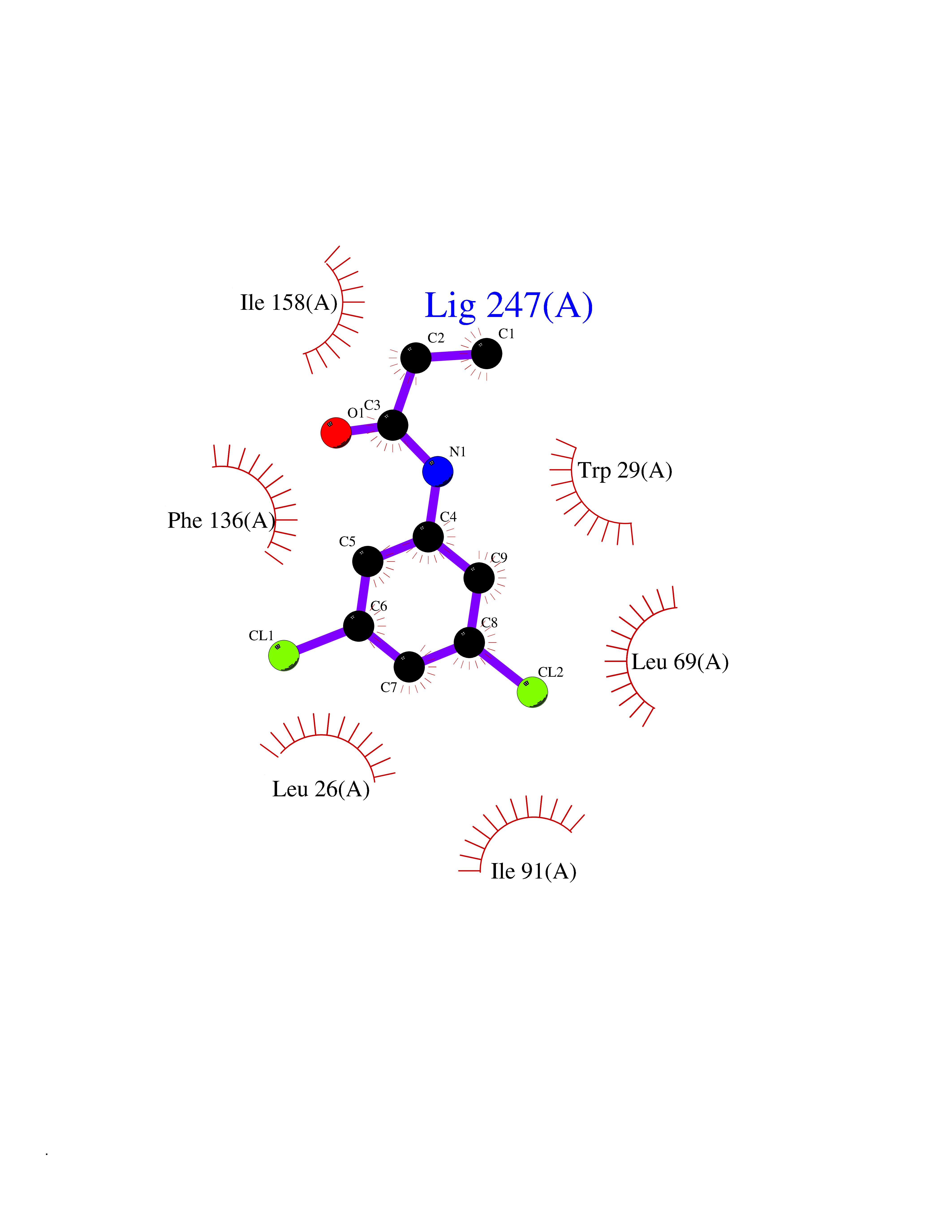 Target general information Gen name Bact fabF Organism Escherichia coli (strain K12) Uniprot ID TTD ID Synonyms KASB; KAS II; KAS 2; FabF; Condensing enzyme FabF; Beta-ketoacyl-acyl carrier protein synthase B; Beta-ketoacyl-ACP synthase II; Beta-ketoacyl-ACP synthase 2; 3-oxoacyl-[acyl-carrier-protein] synthase Protein family Thiolase-like superfamily, Beta-ketoacyl-ACP synthases family Biochemical class Acyltransferase Function Catalyzes the condensation reaction of fatty acid synthesis by the addition to an acyl acceptor of two carbons from malonyl-ACP. Has a preference for short chain acid substrates and may function to supply the octanoic substrates for lipoic acid biosynthesis. Related diseases Pigmentary disorder, reticulate, with systemic manifestations, X-linked (PDR) [MIM:301220]: An X-linked recessive disorder characterized by recurrent infections and sterile inflammation in various organs. Diffuse skin hyperpigmentation with a distinctive reticulate pattern is universally evident by early childhood. This is later followed in many patients by hypohidrosis, corneal inflammation and scarring, enterocolitis that resembles inflammatory bowel disease, and recurrent urethral strictures. Melanin and amyloid deposition is present in the dermis. Affected males also have a characteristic facies with frontally upswept hair and flared eyebrows. Female carriers have only restricted pigmentary changes along Blaschko's lines. {ECO:0000269|PubMed:27019227}. The disease is caused by variants affecting the gene represented in this entry. XLPDR is caused by a recurrent intronic mutation that results in missplicing and reduced POLA1 expression. This leads to a decrease in cytosolic RNA:DNA hybrids and constitutive activation of type I interferon responses, but has no effect on cell replication. {ECO:0000269|PubMed:27019227}.; DISEASE: Van Esch-O'Driscoll syndrome (VEODS) [MIM:301030]: An X-linked recessive syndrome characterized by different degrees of intellectual disability, moderate to severe short stature, microcephaly, hypogonadism, and variable congenital malformations. {ECO:0000269|PubMed:31006512}. The disease is caused by variants affecting the gene represented in this entry. Drugs (DrugBank ID) DB08366; DB01034; DB03017; DB08407 Interacts with P0A6Y8 EC number EC 2.3.1.179 Uniprot keywords 3D-structure; Acyltransferase; Direct protein sequencing; Fatty acid biosynthesis; Fatty acid metabolism; Lipid biosynthesis; Lipid metabolism; Reference proteome; Transferase Protein physicochemical properties Chain ID A Molecular weight (Da) 42852 Length 411 Aromaticity 0.06 Instability index 31.41 Isoelectric point 5.72 Charge (pH=7) -7.34 3D Binding mode Sequence KRRVVVTGLGMLSPVGNTVESTWKALLAGQSGISLIDHFDTSAYATKFAGLVKDFNCEDIISRKEQRKMDAFIQYGIVAGVQAMQDSGLEITEENATRIGAAIGSGIGGLGLIEENHTSLMNGGPRKISPFFVPSTIVNMVAGHLTIMYGLRGPSISIATAQTSGVHNIGHAARIIAYGDADVMVAGGAEKASTPLGVGGFGAARALSTRNDNPQAASRPWDKERDGFVLGDGAGMLVLEEYEHAKKRGAKIYAELVGFGMSSDAYHMTSPPENGAGAALAMANALRDAGIEASQIGYVNAHGTSTPAGDKAEAQAVKTIFGEAASRVLVSSTKSMTGHLLGAAGAVESIYSILALRDQAVPPTINLDNPDEGCDLDFVPHEARQVSGMEYTLCNSFGFGGTNGSLIFKKI Hydrogen bonds contact Hydrophobic contact | ||||