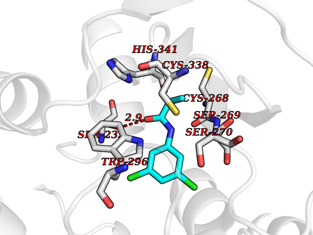 Target general information Gen name SULT1E1 Organism Homo sapiens (Human) Uniprot ID TTD ID NA Synonyms STE Protein family Sulfotransferase 1 family Biochemical class Transferase Function Aryl sulfotransferase activity.Estrone sulfotransferase activity.Flavonol 3-sulfotransferase activity.Steroid binding.Steroid sulfotransferase activity.Sulfotransferase activity. Related diseases Neuromyotonia and axonal neuropathy, autosomal recessive (NMAN) [MIM:137200]: An autosomal recessive neurologic disorder characterized by onset in the first or second decade of a peripheral axonal neuropathy predominantly affecting motor more than sensory nerves. The axonal neuropathy is reminiscent of Charcot-Marie-Tooth disease type 2 and distal hereditary motor neuropathy. Individuals with NMAN also have delayed muscle relaxation and action myotonia associated with neuromyotonic discharges on needle EMG resulting from hyperexcitability of the peripheral nerves. {ECO:0000269|PubMed:16835243, ECO:0000269|PubMed:22961002, ECO:0000269|PubMed:28691797, ECO:0000269|PubMed:29787766, ECO:0000269|PubMed:31088288}. The disease is caused by variants affecting the gene represented in this entry. Drugs (DrugBank ID) DB02902; DB03346; DB01812; DB00714; DB14635; DB01176; DB00977; DB09288; DB00675; DB09100 Interacts with O76083; O76083-2 EC number 2.8.2.4 Uniprot keywords 3D-structure; Cytoplasm; Lipid metabolism; Lipid-binding; Proteomics identification; Reference proteome; Steroid-binding; Transferase Protein physicochemical properties Chain ID A,B Molecular weight (Da) 34022.7 Length 285 Aromaticity 0.15 Instability index 32.76 Isoelectric point 6.33 Charge (pH=7) -2.75 3D Binding mode Sequence SELDYYEKFEEVHGILMYKDFVKYWDNVEAFQARPDDLVIATYPKSGTTWVSEIVYMIYKEGDVEKCKEDVIFNRIPFLECRNGVKQLDEMNSPRIVKTHLPPELLPASFWEKDCKIIYLCRNAKDVAVSFYYFFLMVAGHPNPGSFPEFVEKFMQGQVPYGSWYKHVKSWWEKGKSPRVLFLFYEDLKEDIRKEVIKLIHFLERKPSEELVDRIIHHTSFQEMKNNPSTNYTTLPDEIMNQKLSPFMRKGITGDWKNHFTVALNEKFDKHYEQQMKESTLKFRT Hydrogen bonds contact Hydrophobic contact | ||||
