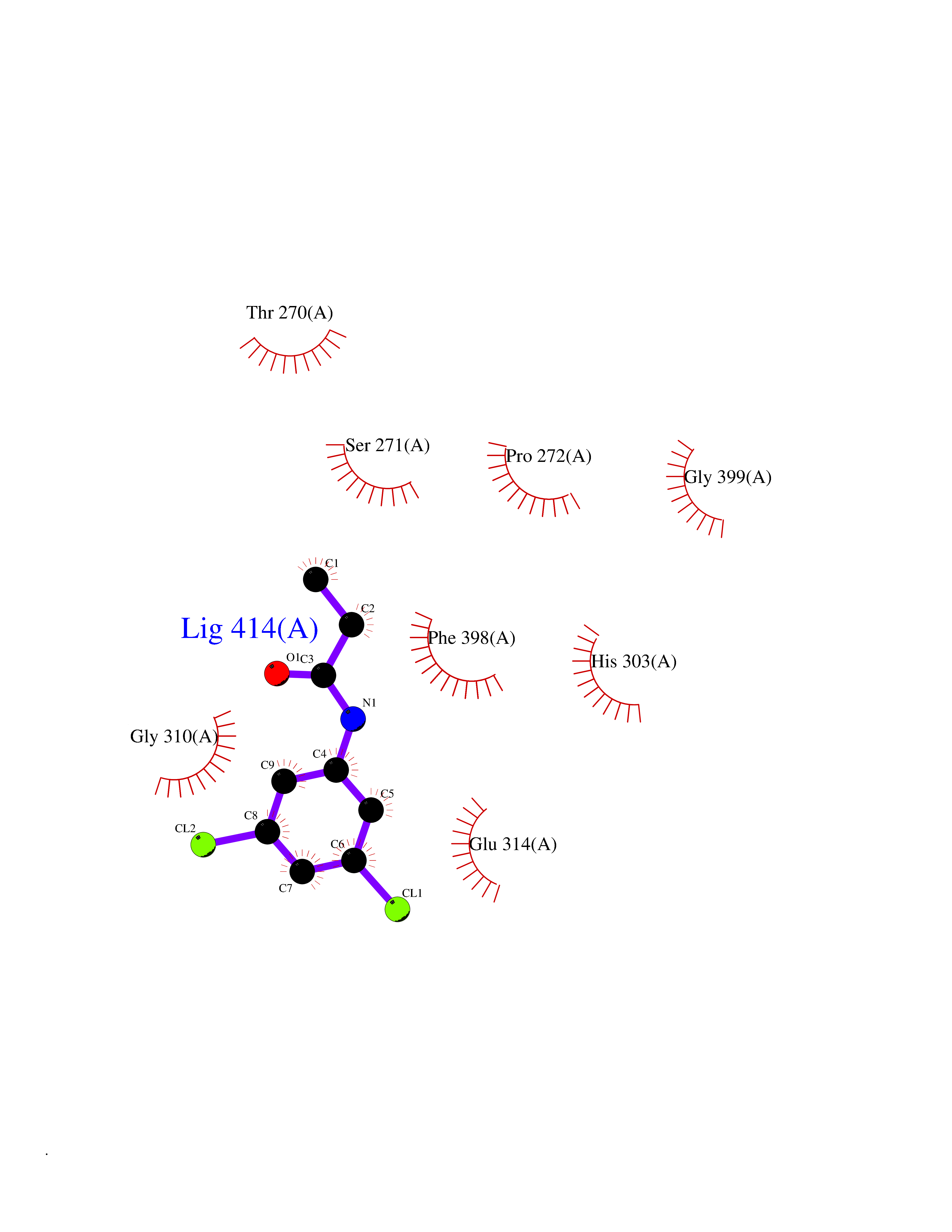 Target general information Gen name FASN Organism Homo sapiens (Human) Uniprot ID TTD ID Synonyms Yeast fatty acid synthase; Fatty-acyl-CoA synthase; Fatty acyl-CoA synthetase enzyme; FAS Protein family NA Biochemical class Acyltransferase Function Fatty acid synthetase catalyzes the formation of long-chain fatty acids from acetyl-CoA, malonyl-CoA and NADPH. This multifunctional protein has 7 catalytic activities as an acyl carrier protein. Related diseases Glycine encephalopathy 2 (GCE2) [MIM:620398]: A form of glycine encephalopathy, a metabolic disorder characterized by a high concentration of glycine in the body fluids. Affected individuals typically have severe neurological symptoms, including seizure, lethargy, and muscular hypotonia soon after birth. Most of them die within the neonatal period. Atypical cases have later disease onset and less severely affected psychomotor development. {ECO:0000269|PubMed:10873393, ECO:0000269|PubMed:11286506, ECO:0000269|PubMed:16051266, ECO:0000269|PubMed:26371980, ECO:0000269|PubMed:28244183, ECO:0000269|PubMed:8005589, ECO:0000269|PubMed:9600239, ECO:0000269|PubMed:9621520}. The disease is caused by variants affecting the gene represented in this entry. Drugs (DrugBank ID) DB01034; DB01083 Interacts with Q15848; Q16665; P42858; Q8IV20; Q8TBB1; PRO_0000045603 [Q99IB8] EC number EC 2.3.1.85 Uniprot keywords 3D-structure; Acetylation; Cytoplasm; Direct protein sequencing; Fatty acid biosynthesis; Fatty acid metabolism; Hydrolase; Isopeptide bond; Lipid biosynthesis; Lipid metabolism; Lyase; Multifunctional enzyme; NAD; NADP; Oxidoreductase; Phosphopantetheine; Phosphoprotein; Proteomics identification; Pyridoxal phosphate; Reference proteome; S-nitrosylation; Transferase; Ubl conjugation Protein physicochemical properties Chain ID A Molecular weight (Da) 30174.9 Length 275 Aromaticity 0.09 Instability index 43.28 Isoelectric point 5.92 Charge (pH=7) -5.4 3D Binding mode Sequence NLRSLLVNPEGPTLMRLNSVQSSERPLFLVHPIEGSTTVFHSLASRLSIPTYGLQCTRAAPLDSIHSLAAYYIDCIRQVQPEGPYRVAGYSYGACVAFEMCSQLQAQQSPAPTHNSLFLFDGSPTYVLAYTGSYRAKLTPGCEAEAETEAICFFVQQFTDMEHNRVLEALLPLKGLEERVAAAVDLIIKSHQGLDRQELSFAARSFYYKLRAAEQYTPKAKYHGNVMLLRAAAGADYNLSQVCDGKVSVHVIEGDHATLLEGSGLESIISIIHSS Hydrogen bonds contact Hydrophobic contact | ||||