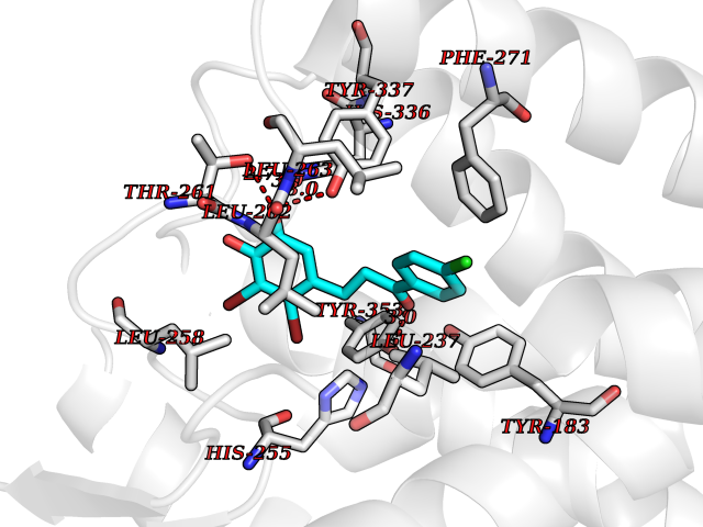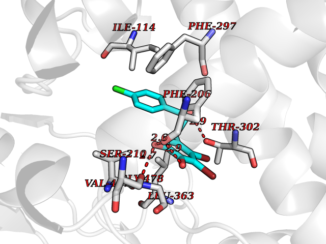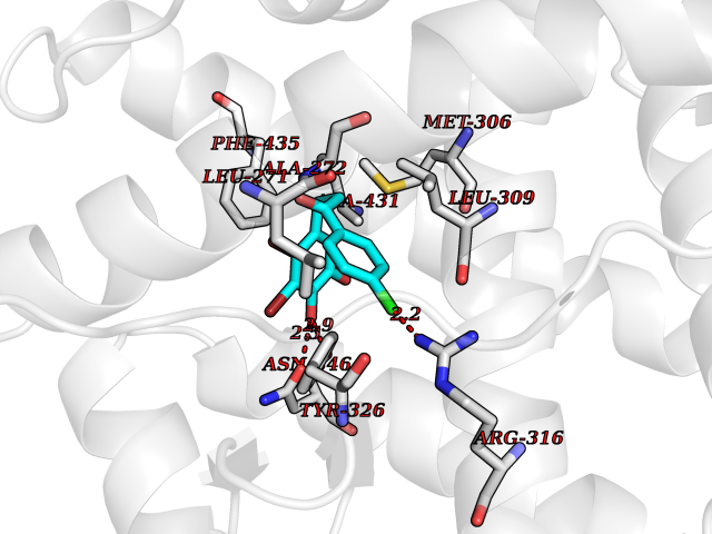 Target general information Gen name CYP2B6 Organism Homo sapiens (Human) Uniprot ID TTD ID Synonyms Cytochrome P450 IIB1; CYPIIB6; 1,4-cineole 2-exo-monooxygenase Protein family Cytochrome P450 family Biochemical class Paired donor oxygen oxidoreductase Function In liver microsomes, this enzyme is involved in an NADPH-dependent electron transport pathway. It oxidizes a variety of structurally unrelated compounds, including steroids, fatty acids, and xenobiotics. Acts as a 1,4-cineole 2-exo-monooxygenase. Cytochromes P450 are a group of heme-thiolate monooxygenases. Related diseases Aromatic L-amino-acid decarboxylase deficiency (AADCD) [MIM:608643]: An inborn error in neurotransmitter metabolism that leads to combined serotonin and catecholamine deficiency. It causes developmental and psychomotor delay, poor feeding, lethargy, ptosis, intermittent hypothermia, gastrointestinal disturbances. The onset is early in infancy and inheritance is autosomal recessive. {ECO:0000269|PubMed:14991824, ECO:0000269|PubMed:15079002, ECO:0000269|Ref.12}. The disease is caused by variants affecting the gene represented in this entry. Drugs (DrugBank ID) DB08369; DB02974; DB11932; DB12001; DB14973; DB15568; DB00321; DB00381; DB00701; DB01435; DB00714; DB06413; DB06697; DB13132; DB11586; DB01076; DB15011; DB00972; DB08822; DB13997; DB04975; DB01086; DB00865; DB00443; DB04794; DB12151; DB01194; DB05541; DB01222; DB01156; DB09061; DB14737; DB00564; DB06119; DB00439; DB00568; DB00604; DB00515; DB12499; DB00349; DB06470; DB00758; DB01559; DB00257; DB01394; DB05219; DB08865; DB11672; DB14635; DB04664; DB00531; DB08912; DB01151; DB16650; DB01234; DB14649; DB04856; DB00514; DB00829; DB00586; DB01184; DB00997; DB00470; DB00476; DB00625; DB15444; DB13874; DB11718; DB08899; DB00751; DB11823; DB00655; DB00898; DB01466; DB00574; DB12265; DB01544; DB00472; DB01095; DB00176; DB01320; DB05087; DB00986; DB01159; DB00956; DB00741; DB09054; DB01181; DB00458; DB00762; DB11633; DB06636; DB00753; DB11757; DB01167; DB14568; DB09570; DB01221; DB06738; DB01026; DB11951; DB09078; DB12070; DB05667; DB00281; DB00836; DB01601; DB00455; DB04871; DB12130; DB09280; DB00772; DB09238; DB14921; DB14009; DB01043; DB00170; DB00454; DB00532; DB04817; DB00333; DB00763; DB01028; DB09241; DB00849; DB00959; DB06710; DB00379; DB06148; DB01110; DB06595; DB16236; DB00745; DB11763; DB00220; DB00238; DB00622; DB00184; DB01115; DB04868; DB12005; DB00435; DB00957; DB09074; DB16267; DB11632; DB01173; DB11837; DB04938; DB05467; DB00715; DB08883; DB01074; DB04930; DB12978; DB03575; DB01174; DB00252; DB13941; DB17472; DB11642; DB06209; DB14631; DB00635; DB01069; DB00818; DB00908; DB00481; DB08896; DB11853; DB16826; DB02709; DB00615; DB01045; DB11753; DB01201; DB08864; DB00503; DB06176; DB00296; DB00412; DB00778; DB01037; DB06739; DB01104; DB01236; DB00641; DB00398; DB15569; DB12548; DB09118; DB06729; DB01138; DB00675; DB12020; DB12095; DB00231; DB00624; DB13943; DB13944; DB13946; DB11712; DB01041; DB09499; DB04572; DB08816; DB00208; DB06137; DB00193; DB00755; DB12245; DB12808; DB00197; DB12255; DB00313; DB11613; DB08881; DB00661; DB09185; DB11739; DB00582; DB09068; DB14975; DB15035 Interacts with NA EC number EC 1.14.13.- Uniprot keywords 3D-structure; Alternative splicing; Endoplasmic reticulum; Heme; Iron; Lipid metabolism; Membrane; Metal-binding; Microsome; Monooxygenase; NADP; Oxidoreductase; Phosphoprotein; Proteomics identification; Reference proteome Protein physicochemical properties Chain ID A Molecular weight (Da) 53293 Length 465 Aromaticity 0.12 Instability index 38.79 Isoelectric point 8.63 Charge (pH=7) 5.35 3D Binding mode Sequence GKLPPGPRPLPLLGNLLQMDRRGLLKSFLRFREKYGDVFTVHLGPRPVVMLCGVEAIREALVDKAEAFSGRGKIAMVDPFFRGYGVIFANGNRWKVLRRFSVTTMRDFGMGKRSVEERIQEEAQCLIEELRKSKGALMDPTFLFQSITANIICSIVFGKRFHYQDQEFLKMLNLFYQTFSLISSVFGQLFELFSGFLKHFPGAHRQVYKNLQEINAYIGHSVEKHRETLDPSAPRDLIDTYLLHMEKEKSNAHSEFSHQNLNLNTLSLFFAGTETTSTTLRYGFLLMLKYPHVAERVYREIEQVIGPHRPPELHDRAKMPYTEAVIYEIQRFSDLLPMGVPHIVTQHTSFRGYIIPKDTEVFLILSTALHDPHYFEKPDAFNPDHFLDANGALKKTEAFIPFSLGKRICLGEGIARAELFLFFTTILQNFSMASPVAPEDIDLTPQECGVGKIPPTYQIRFLPRH Hydrogen bonds contact Hydrophobic contact | ||||