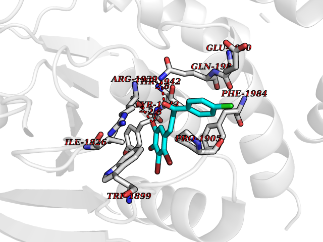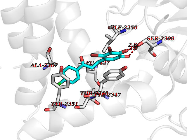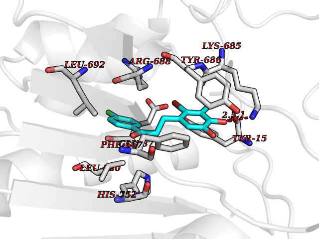 Target general information Gen name CDK8 Organism Homo sapiens (Human) Uniprot ID TTD ID Synonyms Protein kinase K35; Mediator of RNA polymerase II transcription subunit CDK8; Mediator complex subunit CDK8; Cell division protein kinase 8 Protein family Protein kinase superfamily, CMGC Ser/Thr protein kinase family, CDC2/CDKX subfamily Biochemical class Kinase Function Mediator functions as a bridge to convey information from gene-specific regulatory proteins to the basal RNA polymerase II transcription machinery. Mediator is recruited to promoters by direct interactions with regulatory proteins and serves as a scaffold for the assembly of a functional preinitiation complex with RNA polymerase II and the general transcription factors. Phosphorylates the CTD (C-terminal domain) of the large subunit of RNA polymerase II (RNAp II), which may inhibit the formation of a transcription initiation complex. Phosphorylates CCNH leading to down-regulation of the TFIIH complex and transcriptional repression. Recruited through interaction with MAML1 to hyperphosphorylate the intracellular domain of NOTCH, leading to its degradation. Component of the Mediator complex, a coactivator involved in regulated gene transcription of nearly all RNA polymerase II-dependent genes. Related diseases Intellectual developmental disorder with hypotonia and behavioral abnormalities (IDDHBA) [MIM:618748]: An autosomal dominant neurodevelopmental disorder with onset in infancy. IDDHBA is characterized by hypotonia, global developmental delay, learning disability, and behavioral abnormalities, such as autistic features and attention deficit-hyperactivity disorder. Additional variable features may include non-specific facial dysmorphism, congenital heart defects, ocular anomalies, and poor feeding. {ECO:0000269|PubMed:30905399}. The disease is caused by variants affecting the gene represented in this entry. Drugs (DrugBank ID) DB03496 Interacts with P24863; Q01094; P02489; Q14204; Q92876 EC number EC 2.7.11.22 Uniprot keywords 3D-structure; Activator; Alternative splicing; ATP-binding; Autism spectrum disorder; Disease variant; Intellectual disability; Kinase; Nucleotide-binding; Nucleus; Proteomics identification; Reference proteome; Repressor; Serine/threonine-protein kinase; Transcription; Transcription regulation; Transferase Protein physicochemical properties Chain ID A Molecular weight (Da) 37655.2 Length 321 Aromaticity 0.11 Instability index 37.04 Isoelectric point 8.56 Charge (pH=7) 5.13 3D Binding mode Sequence DKMDYDFKVKLSSERERVEDLFEYEGCKVGHVYKAKRKDGKDDKDYALKQIEGTGISMSACREIALLRELKHPNVISLQKVFLSHADRKVWLLFDYAEHDLWHIIKFHRASKLPRGMVKSLLYQILDGIHYLHANWVLHRDLKPANILVMGEGPERGRVKIADMGFARVTFWYRAPELLLGARHYTKAIDIWAIGCIFAELLTSEPIFHCRQNPYHHDQLDRIFNVMGFPADKDWEDIKKMPEHSTLMKDFRRNTYTNCSLIKYMEKHKVKPDSKAFHLLQKLLTMDPIKRITSEQAMQDPYFLEDPLPTSDVFAGCQIPY Hydrogen bonds contact Hydrophobic contact | ||||