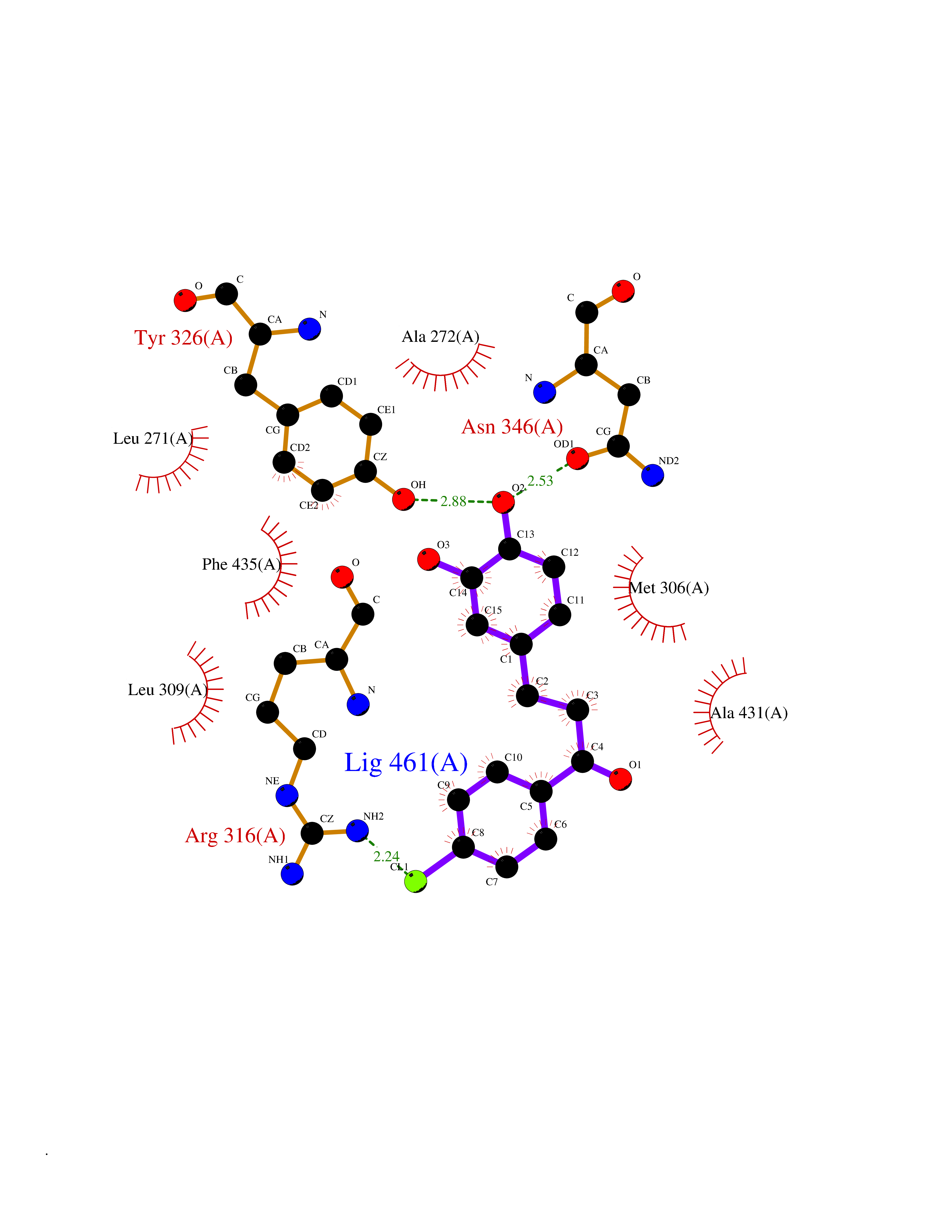 Target general information Gen name MAOA Organism Homo sapiens (Human) Uniprot ID TTD ID Synonyms Monoamine oxidase A; Amine oxidase [flavin-containing] A Protein family Flavin monoamine oxidase family Biochemical class CH-NH(2) donor oxidoreductase Function MAOA preferentially oxidizes biogenic amines such as 5-hydroxytryptamine (5-HT), norepinephrine and epinephrine. Catalyzes the oxidative deamination of biogenic and xenobiotic amines and has important functions in the metabolism of neuroactive and vasoactive amines in the central nervous system and peripheral tissues. Related diseases Brunner syndrome (BRNRS) [MIM:300615]: A form of X-linked non-dysmorphic mild intellectual disability. Male patients are affected by borderline intellectual deficit and exhibit abnormal behavior, including disturbed regulation of impulsive aggression. Obligate female carriers have normal intelligence and behavior. {ECO:0000269|PubMed:8211186}. The disease is caused by variants affecting the gene represented in this entry. Drugs (DrugBank ID) DB01472; DB00918; DB00182; DB06698; DB04889; DB13876; DB01445; DB06774; DB00215; DB04017; DB09130; DB05205; DB07641; DB00988; DB01363; DB00668; DB12329; DB01175; DB03147; DB14914; DB00614; DB01381; DB07919; DB04818; DB01247; DB00601; DB01577; DB00805; DB01442; DB01171; DB08804; DB00952; DB04820; DB00184; DB04821; DB06412; DB01626; DB00780; DB00191; DB00388; DB00397; DB09244; DB04850; DB00721; DB01168; DB00571; DB00852; DB09363; DB00140; DB00953; DB06654; DB01037; DB01104; DB00669; DB14569; DB09042; DB00624; DB13943; DB13944; DB13946; DB09245; DB00752; DB15328; DB09185; DB04832; DB00315; DB00909 Interacts with P27338 EC number EC 1.4.3.4 Uniprot keywords 3D-structure; Acetylation; Alternative splicing; Catecholamine metabolism; Direct protein sequencing; Disease variant; FAD; Flavoprotein; Intellectual disability; Membrane; Mitochondrion; Mitochondrion outer membrane; Neurotransmitter degradation; Oxidoreductase; Phosphoprotein; Proteomics identification; Reference proteome; Transmembrane; Transmembrane helix Protein physicochemical properties Chain ID A Molecular weight (Da) 58195.3 Length 513 Aromaticity 0.11 Instability index 34.97 Isoelectric point 7.98 Charge (pH=7) 2.87 3D Binding mode Sequence HMFDVVVIGGGISGLSAAKLLTEYGVSVLVLEARDRVGGRTYTIRNEHVDYVDVGGAYVGPTQNRILRLSKELGIETYKVNVSERLVQYVKGKTYPFRAAFPPVWNPIAYLDYNNLWRTIDNMGKEIPTDAPWEAQHADKWDKMTMKELIDKICWTKTARRFAYLFVNINVTSEPHEVSALWFLWYVKQCGGTTRIFSVTNGGQERKFVGGSGQVSERIMDLLGDQVKLNHPVTHVDQSSDNIIIETLNHEHYECKYVINAIPPTLTAKIHFRPELPAERNQLIQRLPMGAVIKCMMYYKEAFWKKKDYCGCMIIEDEDAPISITLDDTKPDGSLPAIMGFILARKADRLAKLHKEIRKKKICELYAKVLGSQEALHPVHYEEKNWCEEQYSGGCYTAYFPPGIMTQYGRVIRQPVGRIFFAGTETATKWSGYMEGAVEAGERAAREVLNGLGKVTEKDIWVQEPESKDVPAVEITHTFWERNLPSVSGLLKIIGFSTSVTALGFVLYKYKLL Hydrogen bonds contact Hydrophobic contact | ||||