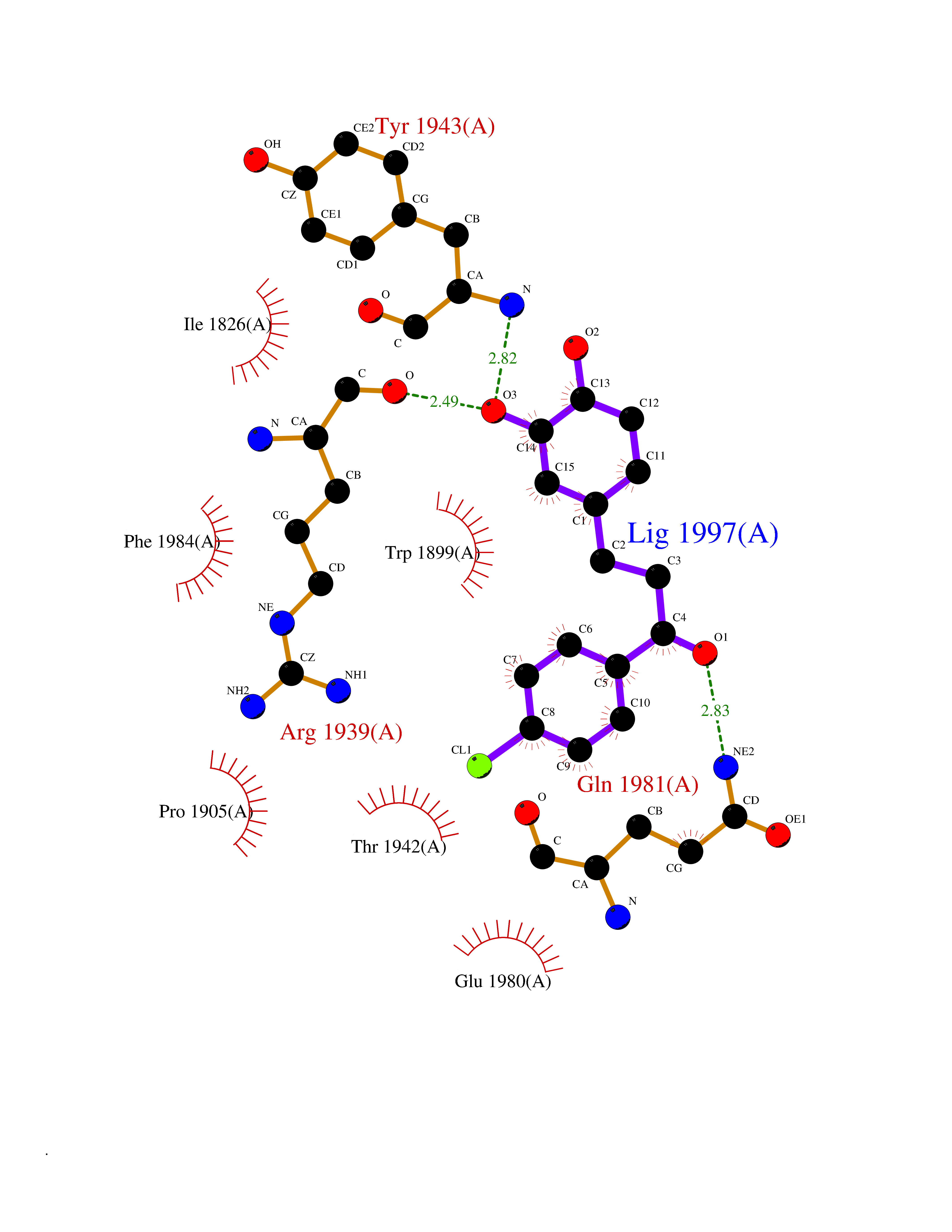 Target general information Gen name DPP8 Organism Homo sapiens (Human) Uniprot ID TTD ID Synonyms Prolyl dipeptidase DPP8; MSTP141; MSTP135; MSTP097; Dipeptidyl peptidase VIII; Dipeptidyl peptidase IV-related protein 1; DPRP1; DPRP-1; DPP VIII; DP8 Protein family Peptidase S9B family, DPPIV subfamily Biochemical class Peptidase Function Dipeptidyl peptidase that cleaves off N-terminal dipeptides from proteins having a Pro or Ala residue at position 2. Related diseases Orotic aciduria 1 (ORAC1) [MIM:258900]: A disorder of pyrimidine metabolism resulting in megaloblastic anemia and orotic acid crystalluria that is frequently associated with some degree of physical and intellectual disability. A minority of cases have additional features, particularly congenital malformations and immune deficiencies. {ECO:0000269|PubMed:9042911}. The disease is caused by variants affecting the gene represented in this entry. Drugs (DrugBank ID) NA Interacts with NA EC number EC 3.4.14.5 Uniprot keywords 3D-structure; Alternative splicing; Aminopeptidase; Apoptosis; Cytoplasm; Hydrolase; Protease; Proteomics identification; Reference proteome; Serine protease Protein physicochemical properties Chain ID A,D Molecular weight (Da) 97764.9 Length 849 Aromaticity 0.12 Instability index 47.71 Isoelectric point 5.69 Charge (pH=7) -21.66 3D Binding mode Sequence LEPFYVERYSWSQLKKLLADTRKYHGYMMAKAPHDFMFVKRNDPDGPHSDRIYYLAMSNRENTLFYSEIPKTINRAAVLMLSWKPLLDLFQYSREEELLRERKRIGTVGIASYDYHQGSGTFLFQAGSGIYHVKDGGPQGFTQQPLRPNLVETSCPNIRMDPKLCPADPDWIAFIHSNDIWISNIVTREERRLTYVHNELANMEEDARSAGVATFVLQEEFDRYSGYWWCPKAETTPSGGKILRILYEENDESEVEIIHVTSPMLETRRADSFRYPKTGTANPKVTFKMSEIMIDAEGRIIDVIDKELIQPFEILFEGVEYIARAGWTPEGKYAWSILLDRSQTRLQIVLISPELFIPVEDDVMERQRLIESVPDSVTPLIIYEETTDIWINIHDIFHVFPQSHEEEIEFIFASECKTGFRHLYKITSILKESKYKRSSGGLPAPSDFKCPIKEEIAITSGEWEVLGRHGSNIQVDEVRRLVYFEGTKDSPLEHHLYVVSYVNPGEVTRLTDRGYSHSCCISQHCDFFISKYSNQKNPHCVSLYKLSSPEDDPTCKTKEFWATILDSAGPLPDYTPPEIFSFESTTGFTLYGMLYKPHDLQPGKKYPTVLFIYGGPQVQLVNNRFKGVKYFRLNTLASLGYVVVVIDNRGSXHRGLKFEGAFKYKMGQIEIDDQVEGLQYLASRYDFIDLDRVGIHGWSYGGYLSLMALMQRSDIFRVAIAGAPVTLWIFYDTGYTERYMGHPDQNEQGYYLGSVAMQAEKFPSEPNRLLLLHGFLDENVHFAHTSILLSFLVRAGKPYDLQIYPQERHSIRVPESGEHYELHLLHYLQENLGSRIAALKVSLRFLYEG Hydrogen bonds contact Hydrophobic contact | ||||