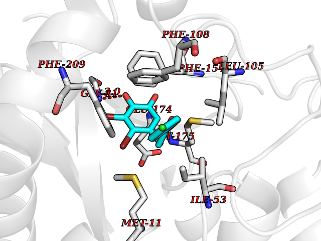 Target general information Gen name HELPY mtnN Organism Helicobacter pylori (strain ATCC 700392 / 26695) (Campylobacter pylori) Uniprot ID TTD ID Synonyms MTAN; MTA/SAH nucleosidase; Aminofutalosine nucleosidase; Aminodeoxyfutalosine nucleosidase; AFL nucleosidase; 6-amino-6-deoxyfutalosine N-ribosylhydrolase; 5'-methylthioadenosine/S-adenosylhomocystei Protein family PNP/UDP phosphorylase family Biochemical class NA Function Catalyzes the direct conversion of aminodeoxyfutalosine (AFL) into dehypoxanthine futalosine (DHFL) and adenine via the hydrolysis of the N-glycosidic bond; this reaction seems to represent an essential step in the menaquinone biosynthesis pathway in Helicobacter species. Can also probably catalyzes the hydrolysis of 5'-methylthioadenosine (MTA) and S-adenosylhomocysteine (SAH) to adenine and the corresponding thioribose, 5'-methylthioribose and S-ribosylhomocysteine, respectively. These other activities highlight the tremendous versatility of the enzyme, which also plays key roles in S-adenosylmethionine recycling and in the biosynthesis of the quorum-sensing molecule autoinducer-2. Does not act on futalosine (FL) as substrate. Related diseases Progressive familial heart block 1B (PFHB1B) [MIM:604559]: A cardiac bundle branch disorder characterized by progressive alteration of cardiac conduction through the His-Purkinje system, with a pattern of a right bundle-branch block and/or left anterior hemiblock occurring individually or together. It leads to complete atrio-ventricular block causing syncope and sudden death. {ECO:0000269|PubMed:19726882, ECO:0000269|PubMed:20562447, ECO:0000269|PubMed:21887725}. The disease is caused by variants affecting the gene represented in this entry.; DISEASE: Erythrokeratodermia variabilis et progressiva 6 (EKVP6) [MIM:618531]: A form of erythrokeratodermia variabilis et progressiva, a genodermatosis characterized by the coexistence of two independent skin lesions: transient erythema and hyperkeratosis that is usually localized but occasionally occurs in its generalized form. Clinical presentation varies significantly within a family and from one family to another. Palmoplantar keratoderma is present in around 50% of cases. EKVP6 inheritance is autosomal dominant. {ECO:0000269|PubMed:30528822}. The disease is caused by variants affecting the gene represented in this entry. Drugs (DrugBank ID) NA Interacts with NA EC number NA Uniprot keywords 3D-structure; Amino-acid biosynthesis; Hydrolase; Menaquinone biosynthesis; Methionine biosynthesis; Reference proteome Protein physicochemical properties Chain ID A,B Molecular weight (Da) 50547.6 Length 464 Aromaticity 0.08 Instability index 26.92 Isoelectric point 5.13 Charge (pH=7) -20.92 3D Binding mode Sequence VQKIGILGAMREEITPILELFGVDFEEIPLGGNVFHKGVYHNKEIIVAYSKIGKVHSTLTTTSMILAFGVQKVLFSGVAGSLVKDLKINDLLVAIQLVQHDVDLSAFDHPLGFIPESAIFIETSESLNALAKEVANEQHIVLKEGVIASGDQFVHSKERKEFLVSEFKASAVEMEGASVAFVCQKFGVPCCVLRSISNNADEEANMSFDAFLEKSAQTSAKFLKSMVDELGSHMVQKIGILGAMREEITPILELFGVDFEEIPLGGNVFHKGVYHNKEIIVAYSKIGKVHSTLTTTSMILAFGVQKVLFSGVAGSLVKDLKINDLLVAIQLVQHDVDLSAFDHPLGFIPESAIFIETSESLNALAKEVANEQHIVLKEGVIASGDQFVHSKERKEFLVSEFKASAVEMEGASVAFVCQKFGVPCCVLRSISNNADEEANMSFDAFLEKSAQTSAKFLKSMVDEL Hydrogen bonds contact Hydrophobic contact | ||||
