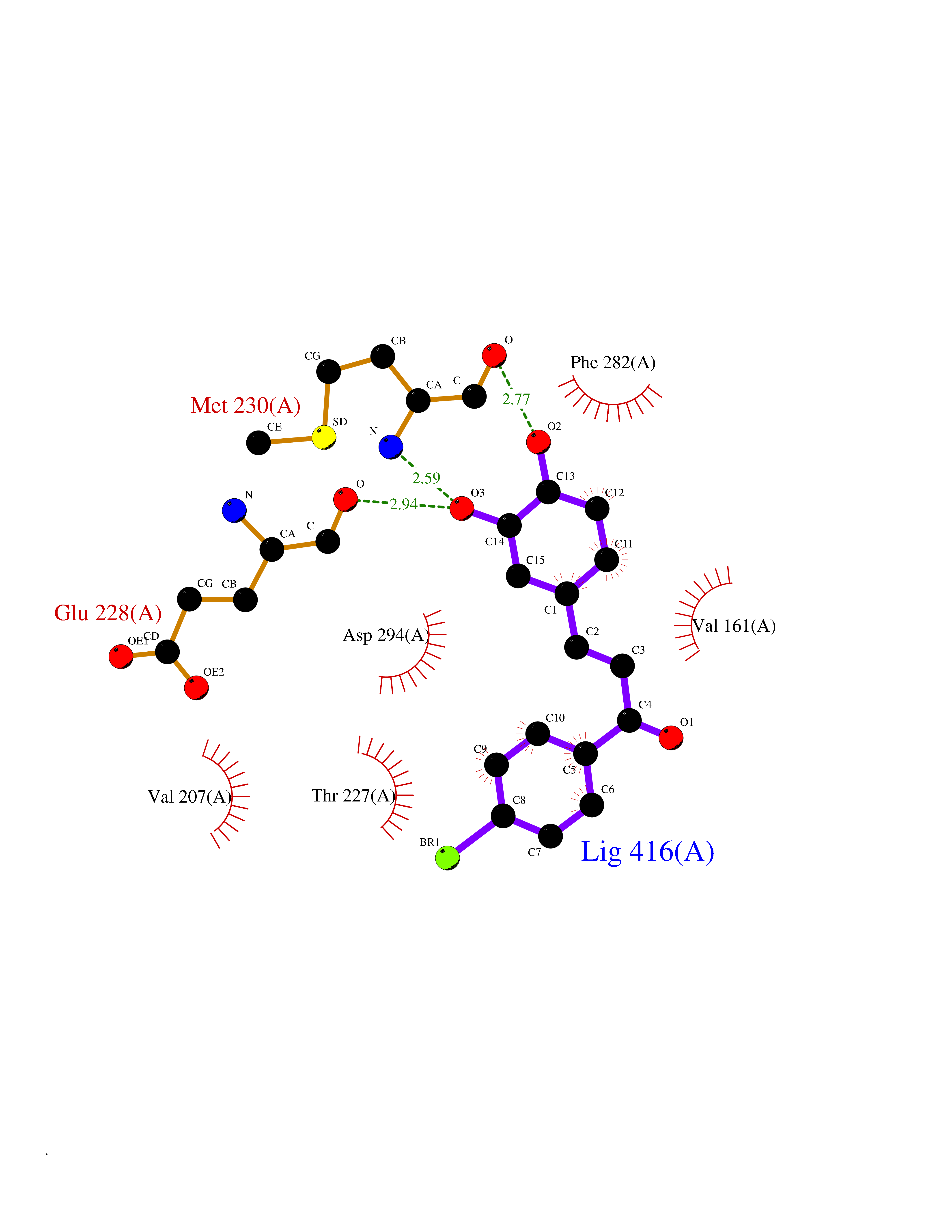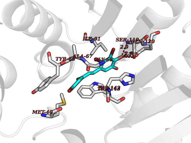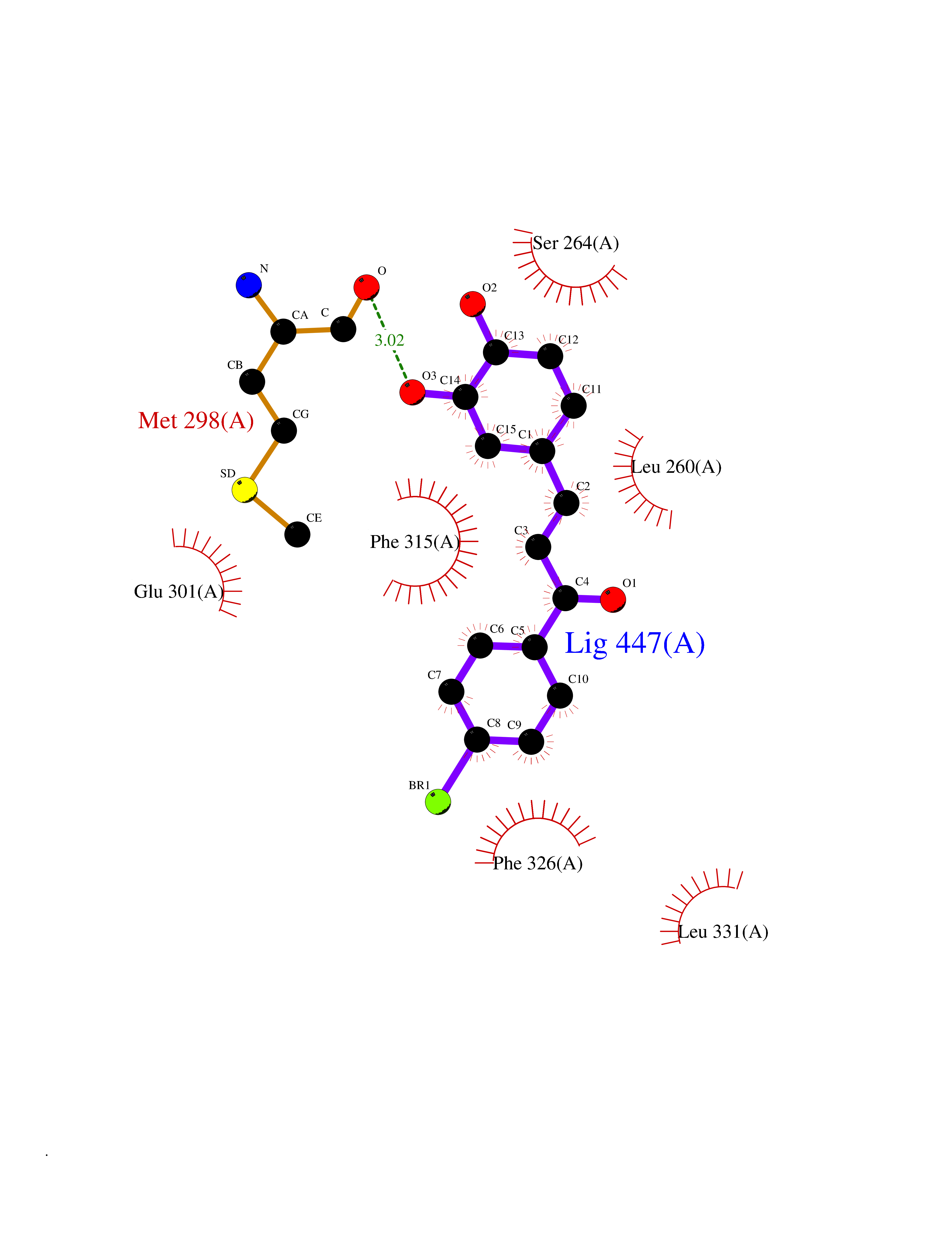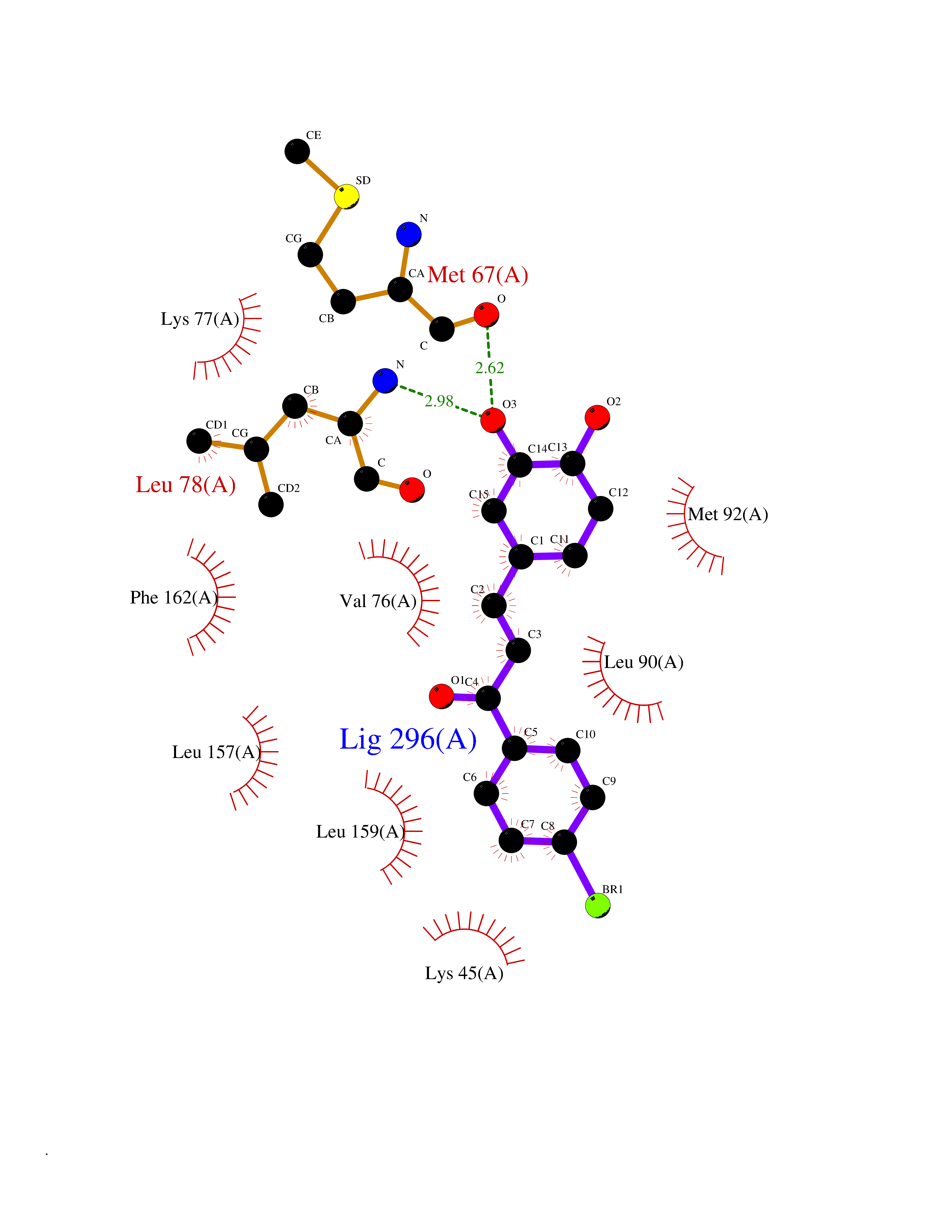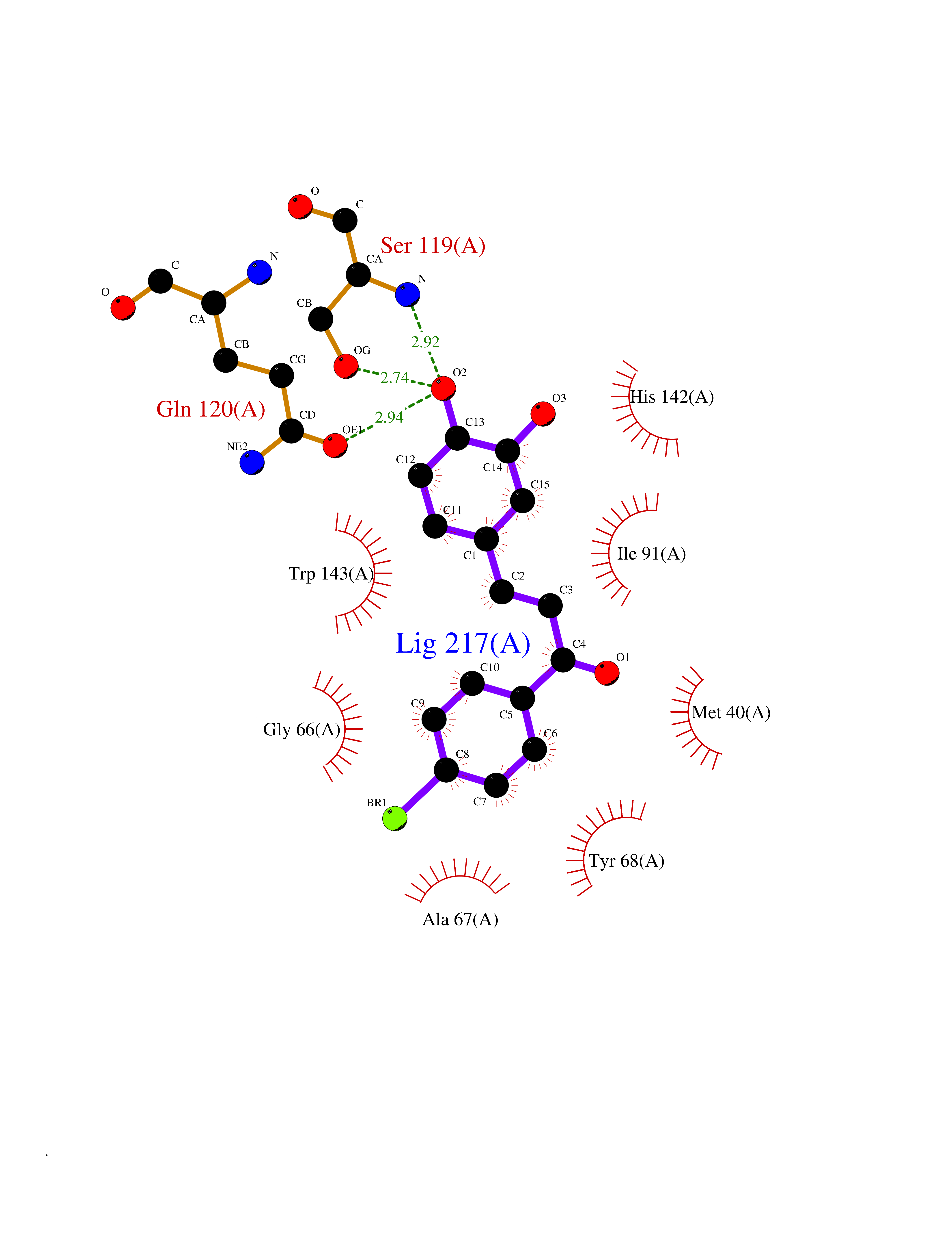 Target general information Gen name GSTK1 Organism Homo sapiens (Human) Uniprot ID TTD ID NA Synonyms HDCMD47P Protein family GST superfamily, Kappa family Biochemical class Transferase / transferase inhibitor Function Glutathione peroxidase activity.Glutathione transferase activity.Protein disulfide oxidoreductase activity.Receptor binding. Related diseases Dyskinesia, limb and orofacial, infantile-onset (IOLOD) [MIM:616921]: An autosomal recessive, early-onset hyperkinetic movement disorder characterized by axial hypotonia, dyskinesia of the limbs and trunk, orofacial dyskinesia, drooling, and dysarthria. The severity of the hyperkinesis is variable. {ECO:0000269|PubMed:27058446}. The disease is caused by variants affecting the gene represented in this entry.; DISEASE: Striatal degeneration, autosomal dominant 2 (ADSD2) [MIM:616922]: An autosomal dominant disorder characterized by striatal degeneration and dysfunction of basal ganglia, resulting in hyperkinesis. {ECO:0000269|PubMed:27058447}. The disease is caused by variants affecting the gene represented in this entry. Drugs (DrugBank ID) DB00143; DB04700 Interacts with O95273; Q8IZU0; Q60994; Q7Z3Y8 EC number 2.5.1.18 Uniprot keywords 3D-structure; Acetylation; Alternative splicing; Peroxisome; Proteomics identification; Reference proteome; Transferase Protein physicochemical properties Chain ID A,B,C,D,E,F Molecular weight (Da) 24811.7 Length 220 Aromaticity 0.08 Instability index 47.17 Isoelectric point 7.96 Charge (pH=7) 1.39 3D Binding mode Sequence GPLPRTVELFYDVLSPYSWLGFEILCRYQNIWNINLQLRPSLITGIMKDSGNKPPGLLPRKGLYMANDLKLLRHHLQIPIHFPKDFLSVMLEKGSLSAMRFLTAVNLEHPEMLEKASRELWMRVWSRNEDITEPQSILAAAEKAGMSAEQAQGLLEKIATPKVKNQLKETTEAACRYGAFGLPITVAHVDGQTHMLFGSDRMELLAHLLGEKWMGPIPPA Hydrogen bonds contact Hydrophobic contact | ||||