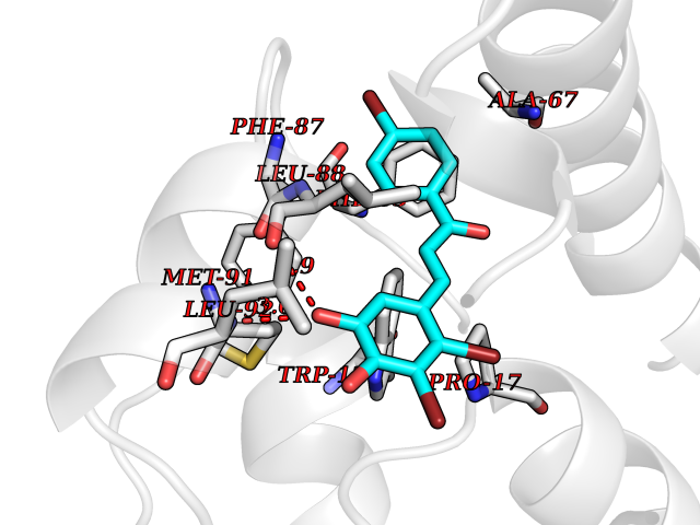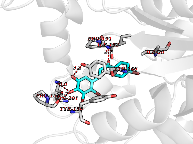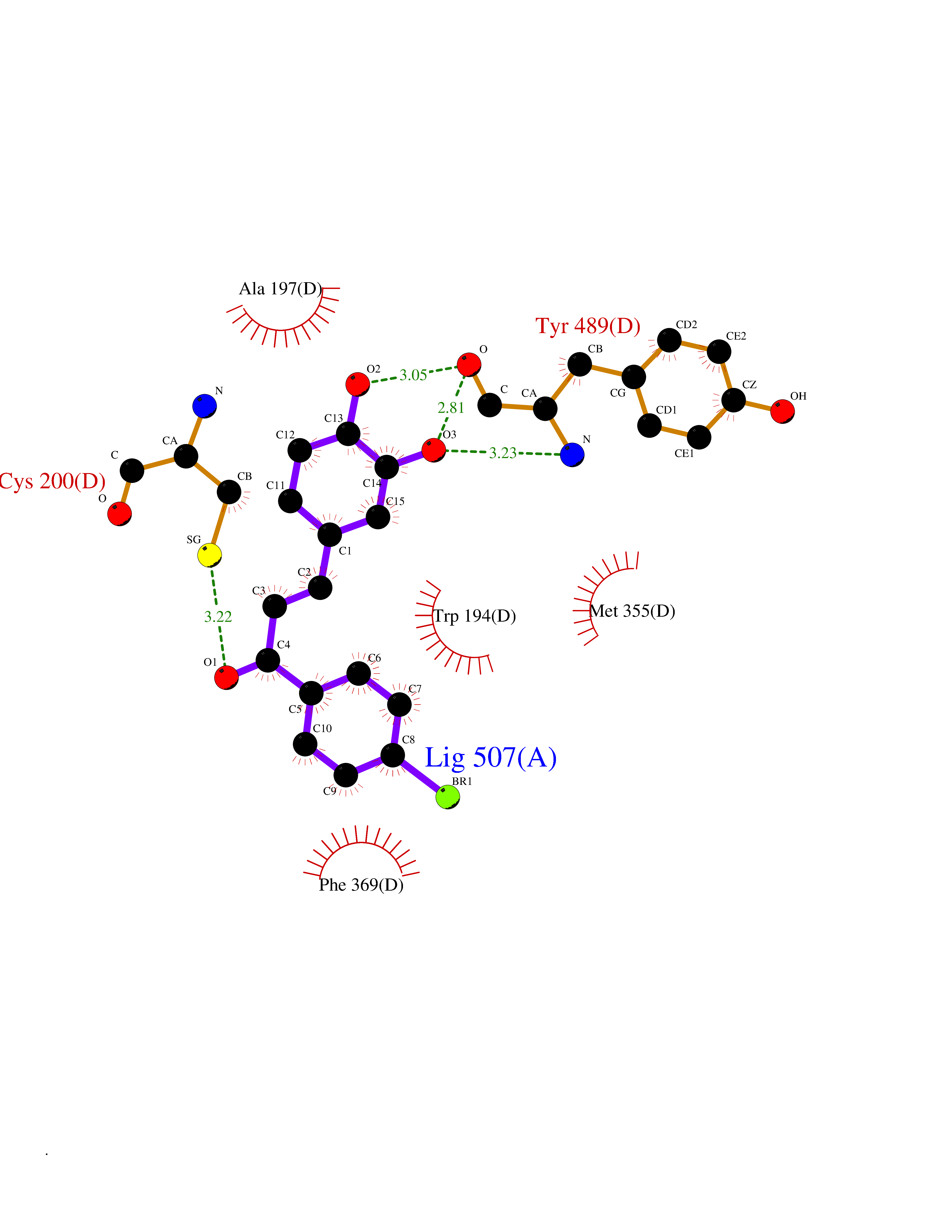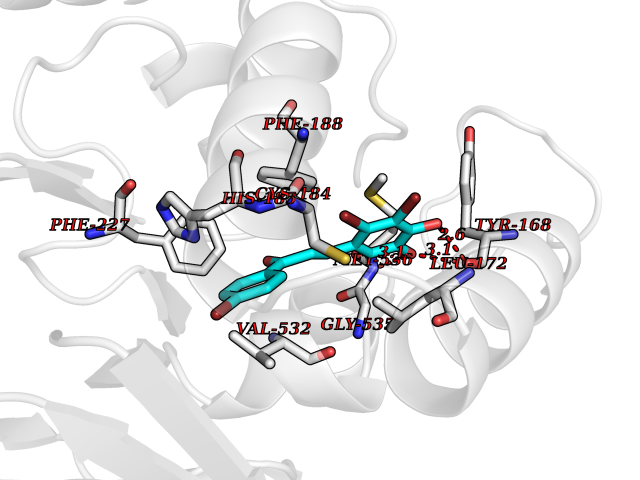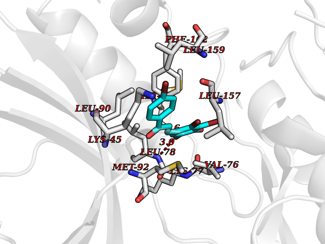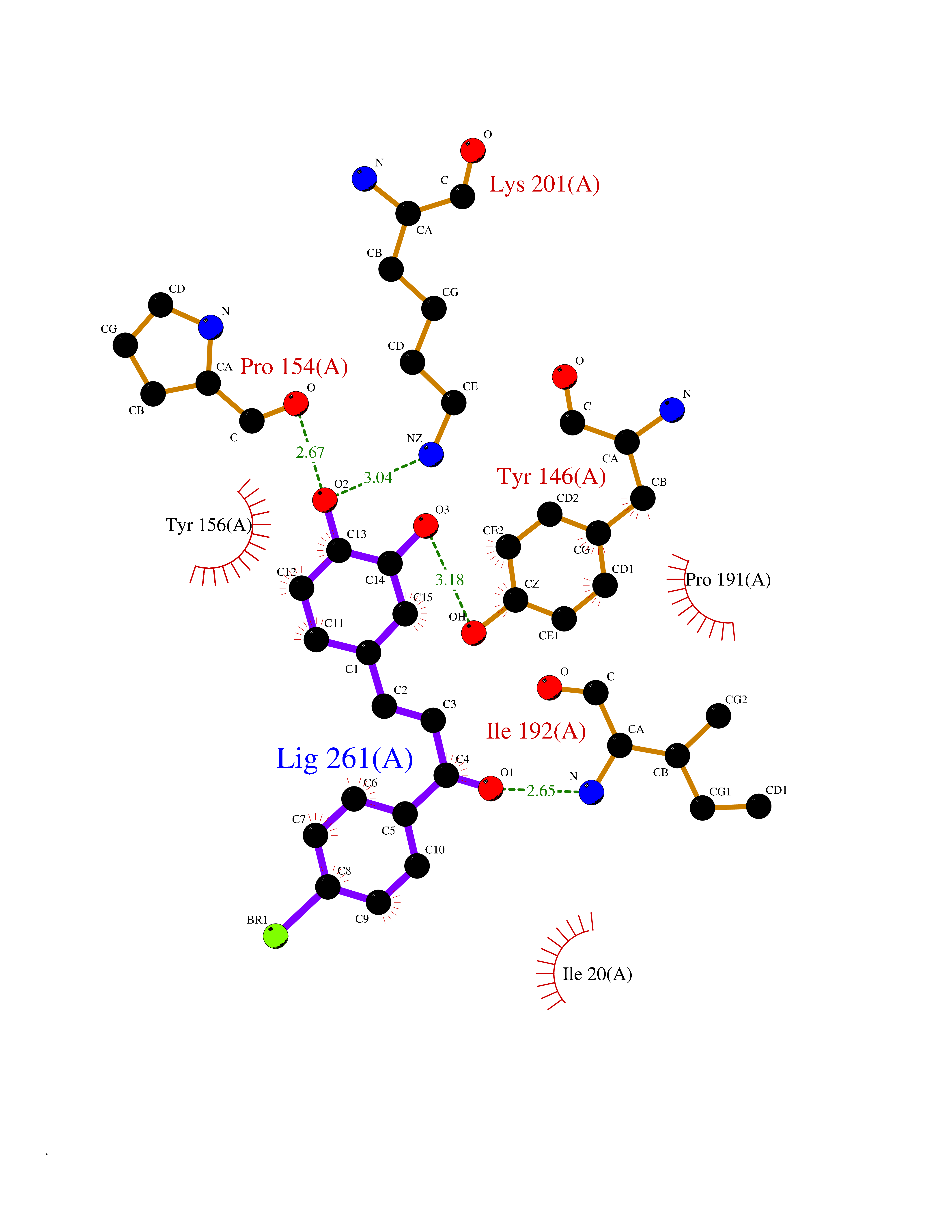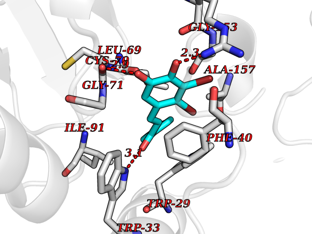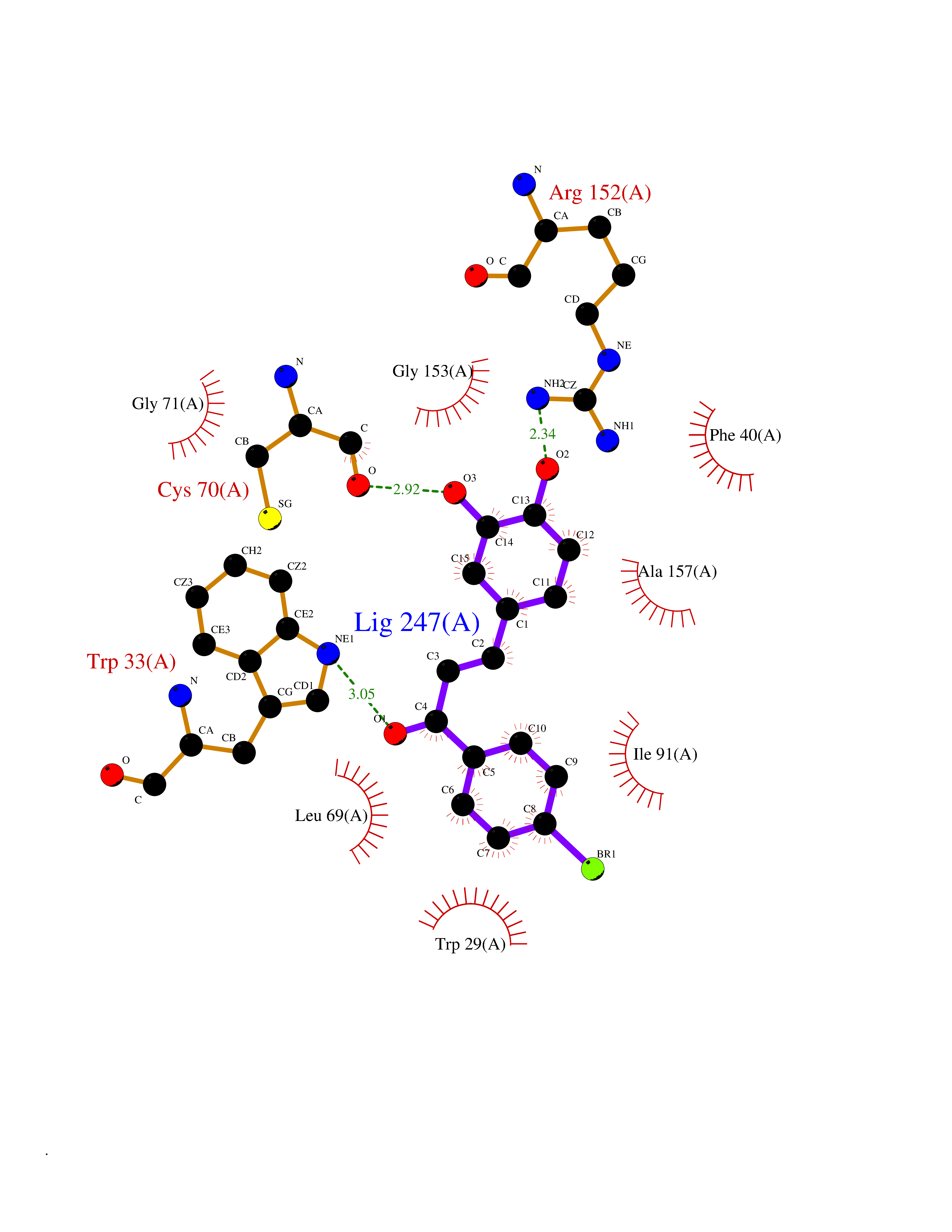 Target general information Gen name GSTK1 Organism Homo sapiens (Human) Uniprot ID TTD ID NA Synonyms HDCMD47P Protein family GST superfamily, Kappa family Biochemical class Transferase / transferase inhibitor Function Glutathione peroxidase activity.Glutathione transferase activity.Protein disulfide oxidoreductase activity.Receptor binding. Related diseases Dyskinesia, limb and orofacial, infantile-onset (IOLOD) [MIM:616921]: An autosomal recessive, early-onset hyperkinetic movement disorder characterized by axial hypotonia, dyskinesia of the limbs and trunk, orofacial dyskinesia, drooling, and dysarthria. The severity of the hyperkinesis is variable. {ECO:0000269|PubMed:27058446}. The disease is caused by variants affecting the gene represented in this entry.; DISEASE: Striatal degeneration, autosomal dominant 2 (ADSD2) [MIM:616922]: An autosomal dominant disorder characterized by striatal degeneration and dysfunction of basal ganglia, resulting in hyperkinesis. {ECO:0000269|PubMed:27058447}. The disease is caused by variants affecting the gene represented in this entry. Drugs (DrugBank ID) DB00143; DB04700 Interacts with O95273; Q8IZU0; Q60994; Q7Z3Y8 EC number 2.5.1.18 Uniprot keywords 3D-structure; Acetylation; Alternative splicing; Peroxisome; Proteomics identification; Reference proteome; Transferase Protein physicochemical properties Chain ID A,B,C,D,E,F Molecular weight (Da) 24811.7 Length 220 Aromaticity 0.08 Instability index 47.17 Isoelectric point 7.96 Charge (pH=7) 1.39 3D Binding mode Sequence GPLPRTVELFYDVLSPYSWLGFEILCRYQNIWNINLQLRPSLITGIMKDSGNKPPGLLPRKGLYMANDLKLLRHHLQIPIHFPKDFLSVMLEKGSLSAMRFLTAVNLEHPEMLEKASRELWMRVWSRNEDITEPQSILAAAEKAGMSAEQAQGLLEKIATPKVKNQLKETTEAACRYGAFGLPITVAHVDGQTHMLFGSDRMELLAHLLGEKWMGPIPPA Hydrogen bonds contact Hydrophobic contact | ||||