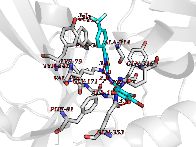 Target general information Gen name ADH7 Organism Homo sapiens (Human) Uniprot ID TTD ID Synonyms Alcohol dehydrogenase class IV mu/sigma chain; Alcohol dehydrogenase class 4 mu/sigma chain; ADH7 Protein family Zinc-containing alcohol dehydrogenase family, Class-IV subfamily Biochemical class Short-chain dehydrogenases reductase Function Could function in retinol oxidation for the synthesis of retinoic acid, a hormone important for cellular differentiation. Medium-chain (octanol) and aromatic (m-nitrobenzaldehyde) compounds are the best substrates. Ethanol is not a good substrate but at the high ethanol concentrations reached in the digestive tract, it plays a role in the ethanol oxidation and contributes to the first pass ethanol metabolism. Related diseases Intellectual developmental disorder, autosomal recessive 80, with variant lissencephaly (MRT80) [MIM:620653]: An autosomal recessive disorder characterized by global developmental delay, mildly to moderately impaired intellectual development, attention deficit-hyperactivity disorder, hypotonia, seizure, poor social skills, and autistic traits. Brain imaging shows fronto-temporal lissencephaly and pachygyria. {ECO:0000269|PubMed:37880421}. The disease is caused by variants affecting the gene represented in this entry. Drugs (DrugBank ID) DB00898; DB00157 Interacts with NA EC number EC 1.1.1.1 Uniprot keywords 3D-structure; Alternative splicing; Cytoplasm; Direct protein sequencing; Lipid metabolism; Metal-binding; NAD; Oxidoreductase; Proteomics identification; Reference proteome; Zinc Protein physicochemical properties Chain ID A,B Molecular weight (Da) 79693.9 Length 746 Aromaticity 0.06 Instability index 28.65 Isoelectric point 8.38 Charge (pH=7) 8.79 3D Binding mode Sequence GTAGKVIKCKAAVLWEQKQPFSIEEIEVAPPKTKEVRIKILATGICRTDDHVIKGTMVSKFPVIVGHEATGIVESIGEGVTTVKPGDKVIPLFLPQCRECNACRNPDGNLCIRSDITGRGVLADGTTRFTCKGKPVHHFLNTSTFTEYTVVDESSVAKIDDAAPPEKVCLIGCGFSTGYGAAVKTGKVKPGSTCVVFGLGGVGLSVIMGCKSAGASRIIGIDLNKDKFEKAMAVGATECISPKDSTKPISEVLSEMTGNNVGYTFEVIGHLETMIDALASCHMNYGTSVVVGVPPSAKMLTYDPMLLFTGRTWKGCVFGGLKSRDDVPKLVTEFLAKKFDLDQLITHVLPFKKISEGFELLNSGQSIRTVLTFGTAGKVIKCKAAVLWEQKQPFSIEEIEVAPPKTKEVRIKILATGICRTDDHVIKGTMVSKFPVIVGHEATGIVESIGEGVTTVKPGDKVIPLFLPQCRECNACRNPDGNLCIRSDITGRGVLADGTTRFTCKGKPVHHFLNTSTFTEYTVVDESSVAKIDDAAPPEKVCLIGCGFSTGYGAAVKTGKVKPGSTCVVFGLGGVGLSVIMGCKSAGASRIIGIDLNKDKFEKAMAVGATECISPKDSTKPISEVLSEMTGNNVGYTFEVIGHLETMIDALASCHMNYGTSVVVGVPPSAKMLTYDPMLLFTGRTWKGCVFGGLKSRDDVPKLVTEFLAKKFDLDQLITHVLPFKKISEGFELLNSGQSIRTVLTF Hydrogen bonds contact Hydrophobic contact | ||||