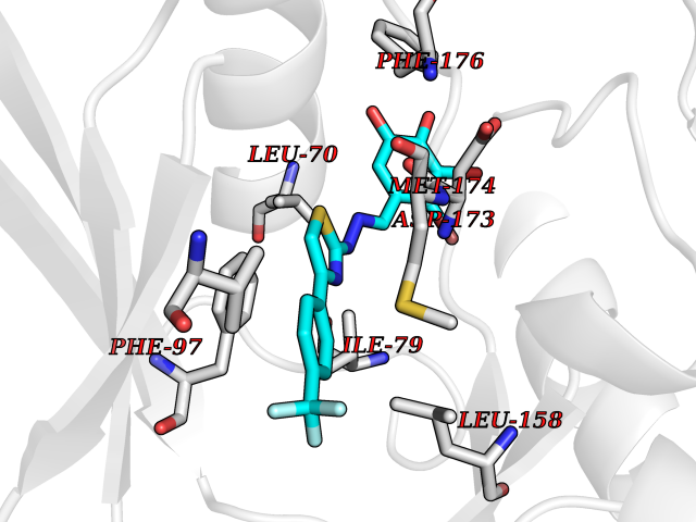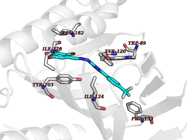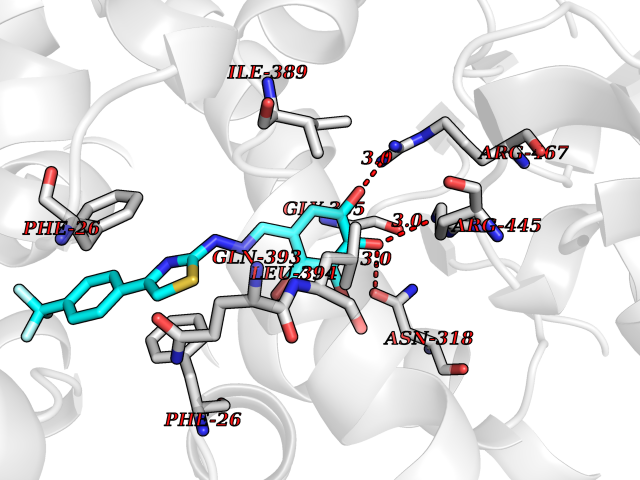 Target general information Gen name camC Organism Pseudomonas putida (Arthrobacter siderocapsulatus) Uniprot ID TTD ID NA Synonyms cyp101 Protein family Cytochrome P450 family Biochemical class Oxidoreductase Function Camphor 5-monooxygenase activity.Heme binding.Iron ion binding. Related diseases Combined oxidative phosphorylation deficiency 6 (COXPD6) [MIM:300816]: A mitochondrial disease resulting in a neurodegenerative disorder characterized by psychomotor delay, hypotonia, areflexia, muscle weakness and wasting. Some patients manifest prenatal ventriculomegaly and severe postnatal encephalomyopathy. {ECO:0000269|PubMed:20362274, ECO:0000269|PubMed:22019070, ECO:0000269|PubMed:25583628, ECO:0000269|PubMed:26004228, ECO:0000269|PubMed:26173962, ECO:0000269|PubMed:27178839}. The disease is caused by variants affecting the gene represented in this entry.; DISEASE: Charcot-Marie-Tooth disease, X-linked recessive, 4, with or without cerebellar ataxia (CMTX4) [MIM:310490]: A neuromuscular disorder characterized by progressive sensorimotor axonal neuropathy, distal sensory impairment, difficulty walking due to peripheral neuropathy and/or cerebellar ataxia, and deafness due to auditory neuropathy. Additional features include cognitive impairment, cerebellar atrophy, dysarthria, abnormal extraocular movements, tremor, dysmetria and spasticity. The age at onset ranges from infancy to young adulthood. {ECO:0000269|PubMed:23217327, ECO:0000269|PubMed:26004228}. The disease is caused by variants affecting the gene represented in this entry.; DISEASE: Deafness, X-linked, 5, with peripheral neuropathy (DFNX5) [MIM:300614]: A form of hearing loss characterized by absent or severely abnormal auditory brainstem response, abnormal middle ear reflexes, abnormal speech discrimination, loss of outer hair cell function, and cochlear nerve hypoplasia. DFNX5 patients manifest auditory neuropathy with childhood onset, associated with distal sensory impairment affecting the peripheral nervous system. {ECO:0000269|PubMed:25986071}. The disease is caused by variants affecting the gene represented in this entry.; DISEASE: Spondyloepimetaphyseal dysplasia, X-linked, with hypomyelinating leukodystrophy (SEMDHL) [MIM:300232]: An X-linked recessive developmental disorder characterized by slowly progressive skeletal and neurologic abnormalities, including short stature, large and deformed joints, significant motor impairment, visual defects, and sometimes cognitive deficits. Affected individuals typically have normal early development in the first year or so of life, followed by development regression and the development of symptoms. Brain imaging shows white matter abnormalities consistent with hypomyelinating leukodystrophy. {ECO:0000269|PubMed:28842795}. The disease is caused by variants affecting the gene represented in this entry. Drugs (DrugBank ID) DB03836; DB02617; DB02817; DB03627; DB04032; DB03031; DB02125; DB04501; DB01744; DB01663; DB01011; DB01703; DB01826; DB03540; DB02851 Interacts with P00259 EC number 1.14.15.1 Uniprot keywords 3D-structure; Cytoplasm; Direct protein sequencing; Heme; Iron; Metal-binding; Monooxygenase; Oxidoreductase Protein physicochemical properties Chain ID A Molecular weight (Da) 45446.3 Length 405 Aromaticity 0.08 Instability index 45.33 Isoelectric point 5.23 Charge (pH=7) -16.08 3D Binding mode Sequence NLAPLPPHVPEHLVFDFDMYNPSNLSAGVQEAWAVLQESNVPDLVWTRCNGGHWIATRGQLIREAYEDYRHFSSECPFIPREAGEAYDFIPTSMDPPEQRQFRALANQVVGMPVVDKLENRIQELACSLIESLRPQGQCNFTEDYAEPFPIRIFMLLAGLPEEDIPHLGYLTDQMTRPDGSMTFAEAKEALYDYLIPIIEQRRQKPGTDAISIVANGQVNGRPITSDEAKRMCGLLLVGGLDTVVNFLSFSMEFLAKSPEHRQELIERPERIPAACEELLRRFSLVADGRILTSDYEFHGVQLKKGDQILLPQMLSGLDERENAAPMHVDFSRQKVSHTTFGHGSHLCAGQHLARREIIVTLKEWLTRIPDFSIAPGAQIQHKSGIVSGVQALPLVWDPATTKAV Hydrogen bonds contact Hydrophobic contact | ||||