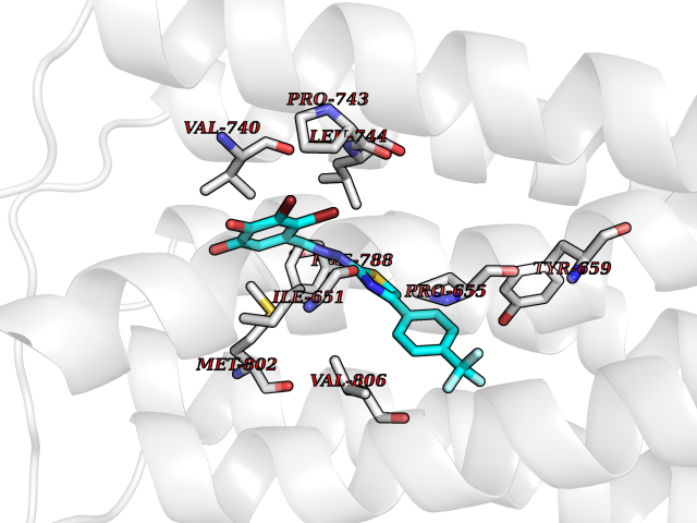 Target general information Gen name SMO Organism Homo sapiens (Human) Uniprot ID TTD ID Synonyms Smo-D473H; SMOH; Protein Gx Protein family G-protein coupled receptor Fz/Smo family Biochemical class GPCR frizzled Function Binding of sonic hedgehog (SHH) to its receptor patched is thought to prevent normal inhibition by patched of smoothened (SMO). Required for the accumulation of KIF7, GLI2 and GLI3 in the cilia. Interacts with DLG5 at the ciliary base to induce the accumulation of KIF7 and GLI2 at the ciliary tip for GLI2 activation. G protein-coupled receptor that probably associates with the patched protein (PTCH) to transduce the hedgehog's proteins signal. Related diseases Curry-Jones syndrome (CRJS) [MIM:601707]: A multisystem disorder characterized by patchy skin lesions, polysyndactyly, diverse cerebral malformations, unicoronal craniosynostosis, iris colobomas, microphthalmia, and intestinal malrotation with myofibromas or hamartomas. {ECO:0000269|PubMed:24859340, ECO:0000269|PubMed:27236920}. The disease is caused by variants affecting the gene represented in this entry. 8 individuals have been identified with the disease-causing mutation Phe-412 and all were mosaic. The mutation could not be reliably detected in blood, greatest success rates were obtained with affected tissues obtained by invasive procedures. It is thought that the mutation has arisen postzygotically early during embryonic development (PubMed:27236920). This mutation has also been identified in ameloblastoma, medulloblastoma, meningioma, and basal cell carcinoma, and has been reported as the oncogenic driver in some of these tumors (PubMed:24859340). {ECO:0000269|PubMed:24859340, ECO:0000269|PubMed:27236920}. Drugs (DrugBank ID) DB01047; DB11978; DB06786; DB09143; DB08828 Interacts with NA EC number NA Uniprot keywords 3D-structure; Cell membrane; Cell projection; Developmental protein; Disease variant; Disulfide bond; G-protein coupled receptor; Glycoprotein; Membrane; Phosphoprotein; Proteomics identification; Receptor; Reference proteome; Signal; Transducer; Transmembrane; Transmembrane helix Protein physicochemical properties Chain ID A,B Molecular weight (Da) 37420.1 Length 333 Aromaticity 0.16 Instability index 25.17 Isoelectric point 6.65 Charge (pH=7) -0.76 3D Binding mode Sequence AYIQKYLSGQCEVPLVRTDNPKSWYEDVEGCGIQCQNPLFTEAEHQDMHSYIAAFGAVTGLCTLFTLATFVADWRNSNRYPAVILFYVNACFFVGSIGWLAQFMDGARREIVCRADGTMRLGEPTSNETLSCVIIFVIVYYALMAGVVWFVVLTYAWHTSFKALGKTSYFHLLTWSLPFVLTVAILAVAQVDGDSVSGICFVGYKNYRYRAGFVLAPIGLVLIVGGYFLIRGVMTLFSIKSNHPGLLSEKAASKINETMLRLGIFGFLAFGFVLITFSCHFYDFFNQAEWERSFRDYVLCQANDCEIKNRPSLLVEKINLFAMFGTGIAMSTW Hydrogen bonds contact Hydrophobic contact | ||||