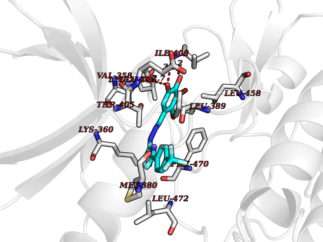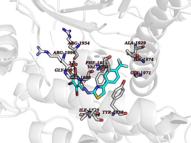 Target general information Gen name CDK8 Organism Homo sapiens (Human) Uniprot ID TTD ID Synonyms Protein kinase K35; Mediator of RNA polymerase II transcription subunit CDK8; Mediator complex subunit CDK8; Cell division protein kinase 8 Protein family Protein kinase superfamily, CMGC Ser/Thr protein kinase family, CDC2/CDKX subfamily Biochemical class Kinase Function Mediator functions as a bridge to convey information from gene-specific regulatory proteins to the basal RNA polymerase II transcription machinery. Mediator is recruited to promoters by direct interactions with regulatory proteins and serves as a scaffold for the assembly of a functional preinitiation complex with RNA polymerase II and the general transcription factors. Phosphorylates the CTD (C-terminal domain) of the large subunit of RNA polymerase II (RNAp II), which may inhibit the formation of a transcription initiation complex. Phosphorylates CCNH leading to down-regulation of the TFIIH complex and transcriptional repression. Recruited through interaction with MAML1 to hyperphosphorylate the intracellular domain of NOTCH, leading to its degradation. Component of the Mediator complex, a coactivator involved in regulated gene transcription of nearly all RNA polymerase II-dependent genes. Related diseases Intellectual developmental disorder with hypotonia and behavioral abnormalities (IDDHBA) [MIM:618748]: An autosomal dominant neurodevelopmental disorder with onset in infancy. IDDHBA is characterized by hypotonia, global developmental delay, learning disability, and behavioral abnormalities, such as autistic features and attention deficit-hyperactivity disorder. Additional variable features may include non-specific facial dysmorphism, congenital heart defects, ocular anomalies, and poor feeding. {ECO:0000269|PubMed:30905399}. The disease is caused by variants affecting the gene represented in this entry. Drugs (DrugBank ID) DB03496 Interacts with P24863; Q01094; P02489; Q14204; Q92876 EC number EC 2.7.11.22 Uniprot keywords 3D-structure; Activator; Alternative splicing; ATP-binding; Autism spectrum disorder; Disease variant; Intellectual disability; Kinase; Nucleotide-binding; Nucleus; Proteomics identification; Reference proteome; Repressor; Serine/threonine-protein kinase; Transcription; Transcription regulation; Transferase Protein physicochemical properties Chain ID A Molecular weight (Da) 37655.2 Length 321 Aromaticity 0.11 Instability index 37.04 Isoelectric point 8.56 Charge (pH=7) 5.13 3D Binding mode Sequence DKMDYDFKVKLSSERERVEDLFEYEGCKVGHVYKAKRKDGKDDKDYALKQIEGTGISMSACREIALLRELKHPNVISLQKVFLSHADRKVWLLFDYAEHDLWHIIKFHRASKLPRGMVKSLLYQILDGIHYLHANWVLHRDLKPANILVMGEGPERGRVKIADMGFARVTFWYRAPELLLGARHYTKAIDIWAIGCIFAELLTSEPIFHCRQNPYHHDQLDRIFNVMGFPADKDWEDIKKMPEHSTLMKDFRRNTYTNCSLIKYMEKHKVKPDSKAFHLLQKLLTMDPIKRITSEQAMQDPYFLEDPLPTSDVFAGCQIPY Hydrogen bonds contact Hydrophobic contact | ||||
