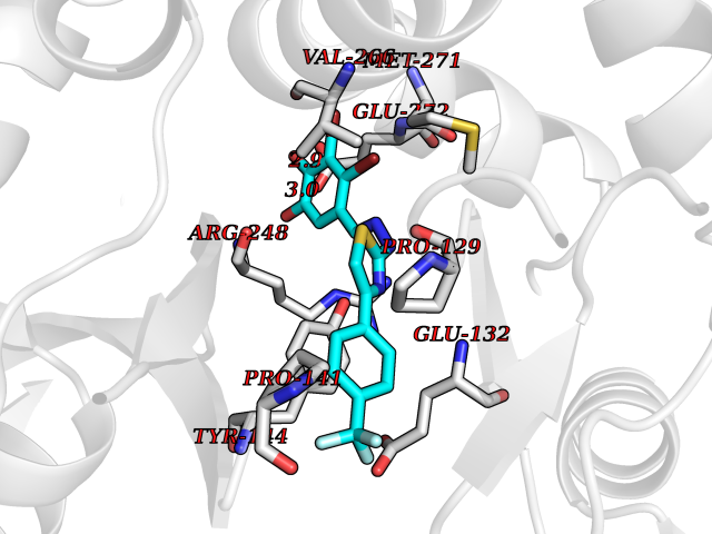 Target general information Gen name IDH1 Organism Homo sapiens (Human) Uniprot ID TTD ID Synonyms PICD (mutated); Oxalosuccinate decarboxylase (mutated); NADP(+)-specific ICDH (mutated); Isocitrate dehydrogenase [NADP] cytoplasmic (mutated); IDP (mutated); IDH (mutated); Cytosolic NADP-isocitrate Protein family Isocitrate and isopropylmalate dehydrogenases family Biochemical class Short-chain dehydrogenases reductase Function Catalyses the NADPH-dependent reduction of alpha-ketoglutarate to R(-)-2-hydroxyglutarate (2HG). Related diseases Glioma (GLM) [MIM:137800]: Gliomas are benign or malignant central nervous system neoplasms derived from glial cells. They comprise astrocytomas and glioblastoma multiforme that are derived from astrocytes, oligodendrogliomas derived from oligodendrocytes and ependymomas derived from ependymocytes. {ECO:0000269|PubMed:19117336, ECO:0000269|PubMed:19935646}. The gene represented in this entry is involved in disease pathogenesis. Mutations affecting Arg-132 are tissue-specific, and suggest that this residue plays a unique role in the development of high-grade gliomas. Mutations of Arg-132 to Cys, His, Leu or Ser abolish magnesium binding and abolish the conversion of isocitrate to alpha-ketoglutarate. Instead, alpha-ketoglutarate is converted to R(-)-2-hydroxyglutarate. Elevated levels of R(-)-2-hydroxyglutarate are correlated with an elevated risk of malignant brain tumors. {ECO:0000269|PubMed:19935646}.; DISEASE: Genetic variations are associated with cartilaginous tumors such as enchondroma or chondrosarcoma. Mutations of Arg-132 to Cys, Gly or His abolish the conversion of isocitrate to alpha-ketoglutarate. Instead, alpha-ketoglutarate is converted to R(-)-2-hydroxyglutarate. {ECO:0000269|PubMed:26161668}. Drugs (DrugBank ID) DB09374; DB01727; DB14568; DB03461; DB16267 Interacts with P0DP23; P27797; P36957; O75874; Q8TDX7; P16284; P17612; P50454; P37173; Q05086-3 EC number EC 1.1.1.42 Uniprot keywords 3D-structure; Acetylation; Cytoplasm; Direct protein sequencing; Glyoxylate bypass; Magnesium; Manganese; Metal-binding; NADP; Oxidoreductase; Peroxisome; Phosphoprotein; Proteomics identification; Reference proteome; Tricarboxylic acid cycle Protein physicochemical properties Chain ID A,B Molecular weight (Da) 92711.7 Length 823 Aromaticity 0.1 Instability index 26.74 Isoelectric point 6.42 Charge (pH=7) -4.48 3D Binding mode Sequence KKISGGSVVEMQGDEMTRIIWELIKEKLIFPYVELDLHSYDLGIENRDATNDQVTKDAAEAIKKHNVGVKCATITPDEKRVEEFKLKQMWKSPNGTIRNILGGTVFREAIICKNIPRLVSGWVKPIIIGHHAYGDQYRATDFVVPGPGKVEITYTPSDGTQKVTYLVHNFEEGGGVAMGMYNQDKSIEDFAHSSFQMALSKGWPLYLSTKNTILKKYDGRFKDIFQEIYDKQYKSQFEAQKIWYEHRLIDDMVAQAMKSEGGFIWACKNYDGDVQSDSVAQGYGSLGMMTSVLVCPDGKTVEAEAAHGTVTRHYRMYQKGQETSTNPIASIFAWTRGLAHRAKLDNNKELAFFANALEEVSIETIEAGFMTKDLAACIKGLPNVQRSDYLNTFEFMDKLGENLKIKLAQAKLKKISGGSVVEMQGDEMTRIIWELIKEKLIFPYVELDLHSYDLGIENRDATNDQVTKDAAEAIKKHNVGVKCATITPDEKRVEEFKLKQMWKSPNGTIRNILGGTVFREAIICKNIPRLVSGWVKPIIIGHHAYGDQYRATDFVVPGPGKVEITYTPSDGTQKVTYLVHNFEEGGGVAMGMYNQDKSIEDFAHSSFQMALSKGWPLYLSTKNTILKKYDGRFKDIFQEIYDKQYKSQFEAQKIWYEHRLIDDMVAQAMKSEGGFIWACKNYDGDVQSDSVAQGYGSLGMMTSVLVCPDGKTVEAEAAHGTVTRHYRMYQKGQETSTNPIASIFAWTRGLAHRAKLDNNKELAFFANALEEVSIETIEAGFMTKDLAACIKGLPNVQRSDYLNTFEFMDKLGENLKIKLAQAK Hydrogen bonds contact Hydrophobic contact | ||||