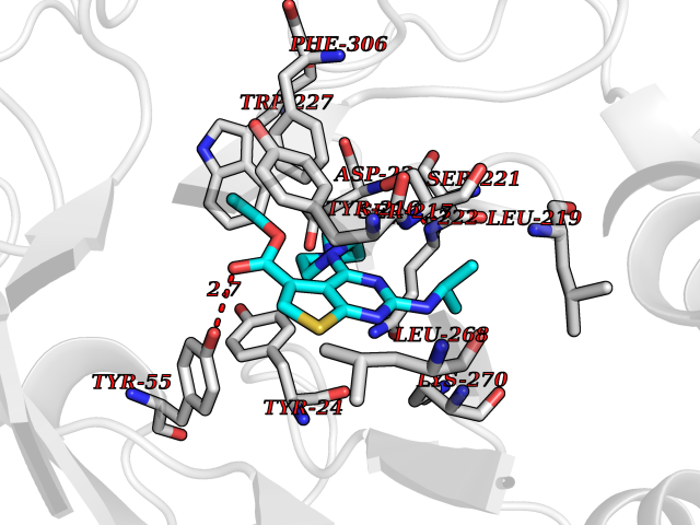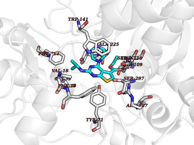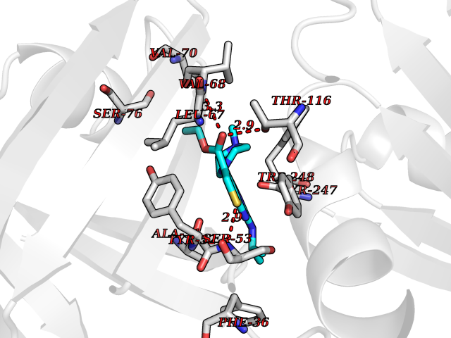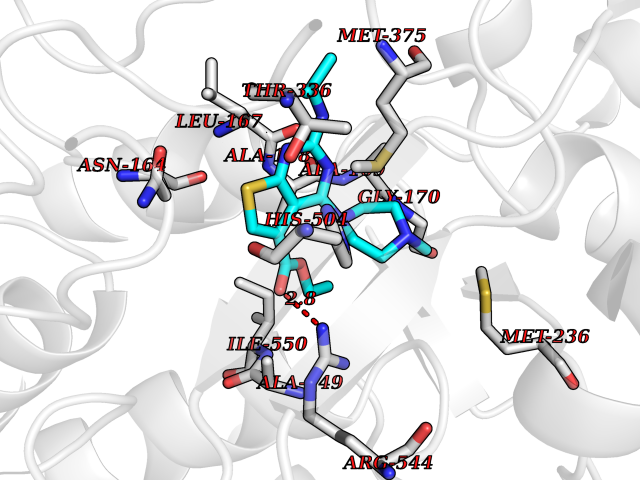 Target general information Gen name nadB Organism Escherichia coli (strain K12) Uniprot ID TTD ID NA Synonyms JW2558;nicB;b2574 Protein family FAD-dependent oxidoreductase 2 family, NadB subfamily Biochemical class Oxidoreductase Function Flavin adenine dinucleotide binding.L-aspartate:fumarate oxidoreductase activity.L-aspartate oxidase activity. Related diseases Thyroid hormone resistance, generalized, autosomal dominant (GRTHD) [MIM:188570]: An autosomal dominant disease characterized by high levels of circulating thyroid hormones (T3-T4), goiter, abnormal mental functions, increased susceptibility to infections, abnormal growth and bone maturation, tachycardia and deafness. Affected individuals may also have attention deficit-hyperactivity disorders (ADHD) and language difficulties. Patients have normal or slightly elevated thyroid stimulating hormone (TSH). {ECO:0000269|PubMed:10660344, ECO:0000269|PubMed:12511610, ECO:0000269|PubMed:12554782, ECO:0000269|PubMed:1314846, ECO:0000269|PubMed:1324420, ECO:0000269|PubMed:1563081, ECO:0000269|PubMed:1587388, ECO:0000269|PubMed:1619012, ECO:0000269|PubMed:1661299, ECO:0000269|PubMed:16804041, ECO:0000269|PubMed:1846005, ECO:0000269|PubMed:19268523, ECO:0000269|PubMed:2153155, ECO:0000269|PubMed:2510172, ECO:0000269|PubMed:7833659, ECO:0000269|PubMed:8175986, ECO:0000269|PubMed:8514853, ECO:0000269|PubMed:8664910, ECO:0000269|PubMed:8889584}. The disease is caused by variants affecting the gene represented in this entry.; DISEASE: Thyroid hormone resistance, generalized, autosomal recessive (GRTHR) [MIM:274300]: An autosomal recessive disorder characterized by goiter, clinical euthyroidism, end-organ unresponsiveness to thyroid hormone, abnormal growth and bone maturation, and deafness. Patients also have high levels of circulating thyroid hormones, with elevated thyroid stimulating hormone. {ECO:0000269|PubMed:1653889}. The disease is caused by variants affecting the gene represented in this entry.; DISEASE: Selective pituitary thyroid hormone resistance (PRTH) [MIM:145650]: Variant form of thyroid hormone resistance and is characterized by clinical hyperthyroidism, with elevated free thyroid hormones, but inappropriately normal serum TSH. Unlike GRTH, where the syndrome usually segregates with a dominant allele, the mode of inheritance in PRTH has not been established. {ECO:0000269|PubMed:7528740, ECO:0000269|PubMed:8381821}. The disease is caused by variants affecting the gene represented in this entry. Drugs (DrugBank ID) DB03147 Interacts with NA EC number 1.4.3.16; 1.5.99.- Uniprot keywords 3D-structure; Cytoplasm; Direct protein sequencing; FAD; Flavoprotein; Nucleotide-binding; Oxidoreductase; Pyridine nucleotide biosynthesis; Reference proteome Protein physicochemical properties Chain ID A Molecular weight (Da) 58993.2 Length 529 Aromaticity 0.07 Instability index 36.96 Isoelectric point 5.76 Charge (pH=7) -15.84 3D Binding mode Sequence PEHSCDVLIIGSGAAGLSLALRLADQHQVIVLSKGPVTEGSTFYAQGGIAAVFDETDSIDSHVEDTLIAGAGICDRHAVEFVASNARSCVQWLIDQGVLFDTHIQPNGEESYHLTREGGHSHRRILHAADATGREVETTLVSKALNHPNIRVLERTNAVDLIVSDKIGLPGTRRVVGAWVWNRNKETVETCHAKAVVLATGGASKVYQYTTNPDISSGDGIAMAWRAGCRVANLEFNQFHPTALYHPQARNFLLTEALRGEGAYLKRPDGTRFMPDFDERGELAPRDIVARAIDHEMKRLGADCMFLDISHKPADFIRQHFPMIYEKLLGLGIDLTQEPVPIVPAAHYTCGGVMVDDHGRTDVEGLYAIGEVSYTGLHGANLMASNSLLECLVYGWSAAEDITRRMPYAHDISTLPPWDESRVENPDERVVIQHNWHELRLFMWDYVGIVRTTKRLERALRRITMLQQEIDEYYAHFRVSNNLLELRNLVQVAELIVRCAMMRKESRGLHFTLDYPELLTHSGPSILSP Hydrogen bonds contact Hydrophobic contact | ||||
