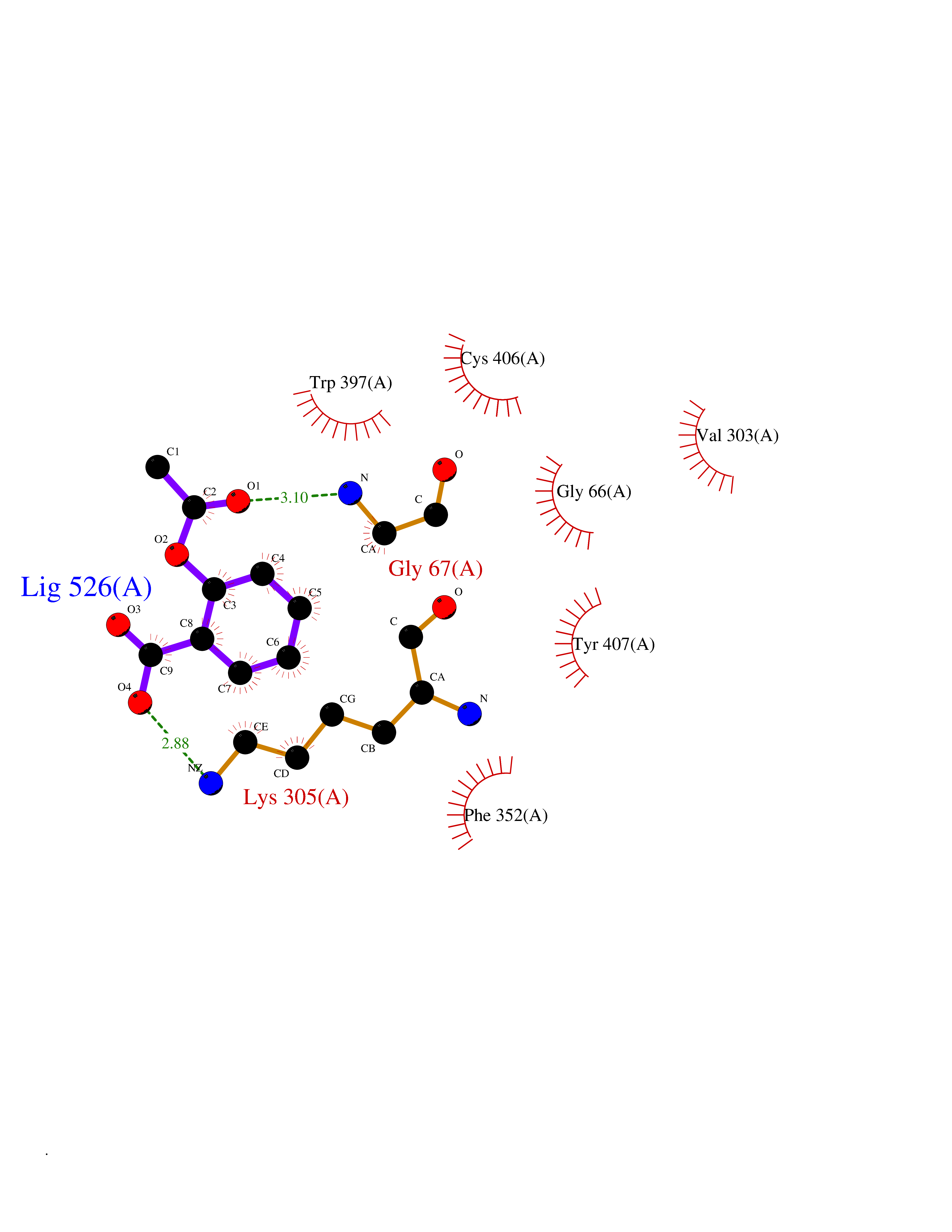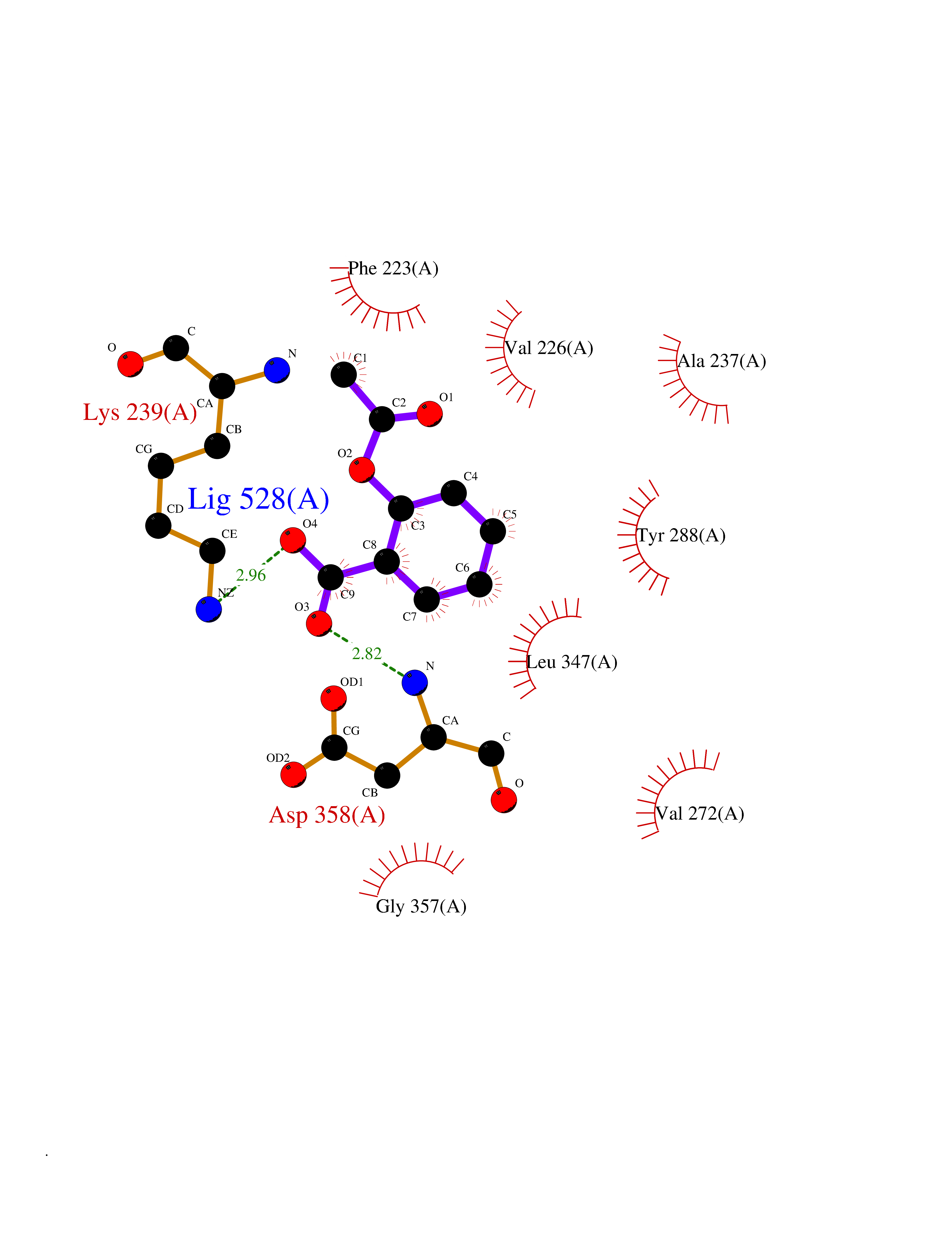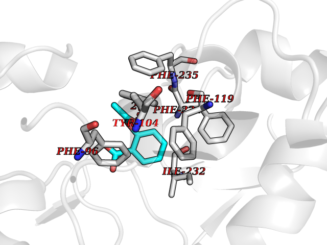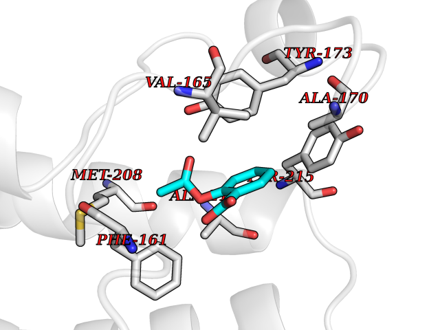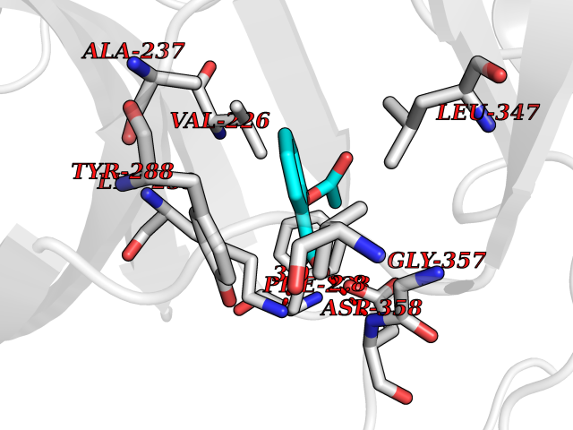 Target general information Gen name MAOA Organism Homo sapiens (Human) Uniprot ID TTD ID Synonyms Monoamine oxidase A; Amine oxidase [flavin-containing] A Protein family Flavin monoamine oxidase family Biochemical class CH-NH(2) donor oxidoreductase Function MAOA preferentially oxidizes biogenic amines such as 5-hydroxytryptamine (5-HT), norepinephrine and epinephrine. Catalyzes the oxidative deamination of biogenic and xenobiotic amines and has important functions in the metabolism of neuroactive and vasoactive amines in the central nervous system and peripheral tissues. Related diseases Brunner syndrome (BRNRS) [MIM:300615]: A form of X-linked non-dysmorphic mild intellectual disability. Male patients are affected by borderline intellectual deficit and exhibit abnormal behavior, including disturbed regulation of impulsive aggression. Obligate female carriers have normal intelligence and behavior. {ECO:0000269|PubMed:8211186}. The disease is caused by variants affecting the gene represented in this entry. Drugs (DrugBank ID) DB01472; DB00918; DB00182; DB06698; DB04889; DB13876; DB01445; DB06774; DB00215; DB04017; DB09130; DB05205; DB07641; DB00988; DB01363; DB00668; DB12329; DB01175; DB03147; DB14914; DB00614; DB01381; DB07919; DB04818; DB01247; DB00601; DB01577; DB00805; DB01442; DB01171; DB08804; DB00952; DB04820; DB00184; DB04821; DB06412; DB01626; DB00780; DB00191; DB00388; DB00397; DB09244; DB04850; DB00721; DB01168; DB00571; DB00852; DB09363; DB00140; DB00953; DB06654; DB01037; DB01104; DB00669; DB14569; DB09042; DB00624; DB13943; DB13944; DB13946; DB09245; DB00752; DB15328; DB09185; DB04832; DB00315; DB00909 Interacts with P27338 EC number EC 1.4.3.4 Uniprot keywords 3D-structure; Acetylation; Alternative splicing; Catecholamine metabolism; Direct protein sequencing; Disease variant; FAD; Flavoprotein; Intellectual disability; Membrane; Mitochondrion; Mitochondrion outer membrane; Neurotransmitter degradation; Oxidoreductase; Phosphoprotein; Proteomics identification; Reference proteome; Transmembrane; Transmembrane helix Protein physicochemical properties Chain ID A Molecular weight (Da) 58195.3 Length 513 Aromaticity 0.11 Instability index 34.97 Isoelectric point 7.98 Charge (pH=7) 2.87 3D Binding mode Sequence HMFDVVVIGGGISGLSAAKLLTEYGVSVLVLEARDRVGGRTYTIRNEHVDYVDVGGAYVGPTQNRILRLSKELGIETYKVNVSERLVQYVKGKTYPFRAAFPPVWNPIAYLDYNNLWRTIDNMGKEIPTDAPWEAQHADKWDKMTMKELIDKICWTKTARRFAYLFVNINVTSEPHEVSALWFLWYVKQCGGTTRIFSVTNGGQERKFVGGSGQVSERIMDLLGDQVKLNHPVTHVDQSSDNIIIETLNHEHYECKYVINAIPPTLTAKIHFRPELPAERNQLIQRLPMGAVIKCMMYYKEAFWKKKDYCGCMIIEDEDAPISITLDDTKPDGSLPAIMGFILARKADRLAKLHKEIRKKKICELYAKVLGSQEALHPVHYEEKNWCEEQYSGGCYTAYFPPGIMTQYGRVIRQPVGRIFFAGTETATKWSGYMEGAVEAGERAAREVLNGLGKVTEKDIWVQEPESKDVPAVEITHTFWERNLPSVSGLLKIIGFSTSVTALGFVLYKYKLL Hydrogen bonds contact Hydrophobic contact | ||||