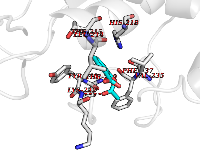 Target general information Gen name pox5 Organism Lactiplantibacillus plantarum (strain ATCC BAA-793 / NCIMB 8826 / WCFS1) (Lactobacillus plantarum) Uniprot ID TTD ID NA Synonyms lp_3589 Protein family TPP enzyme family Biochemical class Oxidoreductase Function Magnesium ion binding.Pyruvate oxidase activity.Thiamine pyrophosphate binding. Related diseases Telangiectasia, hereditary hemorrhagic, 2 (HHT2) [MIM:600376]: A multisystemic vascular dysplasia leading to dilation of permanent blood vessels and arteriovenous malformations of skin, mucosa, and viscera. The disease is characterized by recurrent epistaxis and gastro-intestinal hemorrhage. Visceral involvement includes arteriovenous malformations of the lung, liver, and brain. {ECO:0000269|PubMed:10694922, ECO:0000269|PubMed:10767348, ECO:0000269|PubMed:11170071, ECO:0000269|PubMed:11484689, ECO:0000269|PubMed:14684682, ECO:0000269|PubMed:15024723, ECO:0000269|PubMed:15712270, ECO:0000269|PubMed:16525724, ECO:0000269|PubMed:16752392, ECO:0000269|PubMed:20414677, ECO:0000269|PubMed:26176610, ECO:0000269|PubMed:8640225, ECO:0000269|PubMed:9245985}. The disease is caused by variants affecting the gene represented in this entry. Drugs (DrugBank ID) DB01987; DB03147 Interacts with NA EC number 1.2.3.3 Uniprot keywords 3D-structure; FAD; Flavoprotein; Magnesium; Metal-binding; Oxidoreductase; Reference proteome; Thiamine pyrophosphate Protein physicochemical properties Chain ID A,B Molecular weight (Da) 64137.9 Length 585 Aromaticity 0.08 Instability index 28.31 Isoelectric point 5.17 Charge (pH=7) -18.41 3D Binding mode Sequence TNILAGAAVIKVLEAWGVDHLYGIPGGSINSIMDALSAERDRIHYIQVRHEEVGAMAAAADAKLTGKIGVCFGSAGPGGTHLMNGLYDAREDHVPVLALIGQFGTTGMNMDTFQEMNENPIYADVADYNVTAVNAATLPHVIDEAIRRAYAHQGVAVVQIPVDLPWQQIPAEDWYASANSYQTPLLPEPDVQAVTRLTQTLLAAERPLIYYGIGARKAGKELEQLSKTLKIPLMSTYPAKGIVADRYPAYLGSANRVAQKPANEALAQADVVLFVGNNYPFAEVSKAFKNTRYFLQIDIDPAKLGKRHKTDIAVLADAQKTLAAILAQVSERESTPWWQANLANVKNWRAYLASLEDKQEGPLQAYQVLRAVNKIAEPDAIYSIDVGDINLNANRHLKLTPSNRHITSNLFATMGVGIPGAIAAKLNYPERQVFNLAGDGGASMTMQDLATQVQYHLPVINVVFTNCQYGWIKDEQEDTNQNDFIGVEFNDIDFSKIADGVHMQAFRVNKIEQLPDVFEQAKAIAQHEPVLIDAVITGDRPLPAEKLRLDSAMSSAADIEAFKQRYEAQDLQPLSTYLKQFGLDD Hydrogen bonds contact Hydrophobic contact | ||||