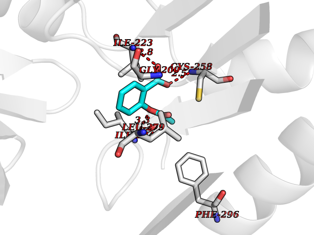 Target general information Gen name DOT1L Organism Homo sapiens (Human) Uniprot ID TTD ID Synonyms Lysine N-methyltransferase 4; KMT4; KIAA1814; Histone-lysine N-methyltransferase, H3 lysine-79 specific; Histone H3-K79 methyltransferase; H3-K79-HMTase; DOT1-like protein Protein family Class I-like SAM-binding methyltransferase superfamily, DOT1 family Biochemical class Methyltransferase Function Histone methyltransferase. Methylates 'Lys-79' of histone H3. Nucleosomes are preferred as substrate compared to free histones. Binds to DNA. Related diseases Defects in DOTL1 are associated with an autosomal dominant form of global developmental delay and intellectual disability, with or without one or more major congenital anomalies (PubMed:37827158). The patient phenotypes are characterized by central nervous system (CNS) dysfunction, such as mild motor delay and significant speech and language delay, and a range of congenital anomalies, including brain structural anomalies, cardiac defects, varied urogenital features and growth restriction (PubMed:37827158). Variants may cause a gain-of-function effect leading to an increase in cellular H3K79 methylation levels (PubMed:37827158). {ECO:0000269|PubMed:37827158}. Drugs (DrugBank ID) NA Interacts with Q03111; P42568 EC number EC 2.1.1.43 Uniprot keywords 3D-structure; Alternative splicing; Chromatin regulator; Disease variant; DNA-binding; Methyltransferase; Nucleus; Phosphoprotein; Proteomics identification; Reference proteome; Repeat; S-adenosyl-L-methionine; Transferase Protein physicochemical properties Chain ID A Molecular weight (Da) 37367.1 Length 322 Aromaticity 0.11 Instability index 32.71 Isoelectric point 6.03 Charge (pH=7) -5.25 3D Binding mode Sequence KLELRLKSPVGAEPAVYPWPLPVYDKHHDAAHEIIETIRWVCEEIPDLKLAMENYLIDYDTKSFESMQRLCDKYNRAIDSIHQLWKGTTQPMKLNTRPSTGLLRHILQQVYNHSVTDPEKLNNYEPFSPEVYGETSFDLVAQMIDEIKMTDDDLFVDLGSGVGQVVLQVAAATNCKHHYGVEKADIPAKYAETMDREFRKWMKWYGKKHAEYTLERGDFLSEEWRERIANTSVIFVNNFAFGPEVDHQLKERFANMKEGGRIVSSKPFAPLNFRINSRNLSDIGTIMRVVELSPLKWTGKPVSYYLHTIDRTILENYFSSLK Hydrogen bonds contact Hydrophobic contact | ||||