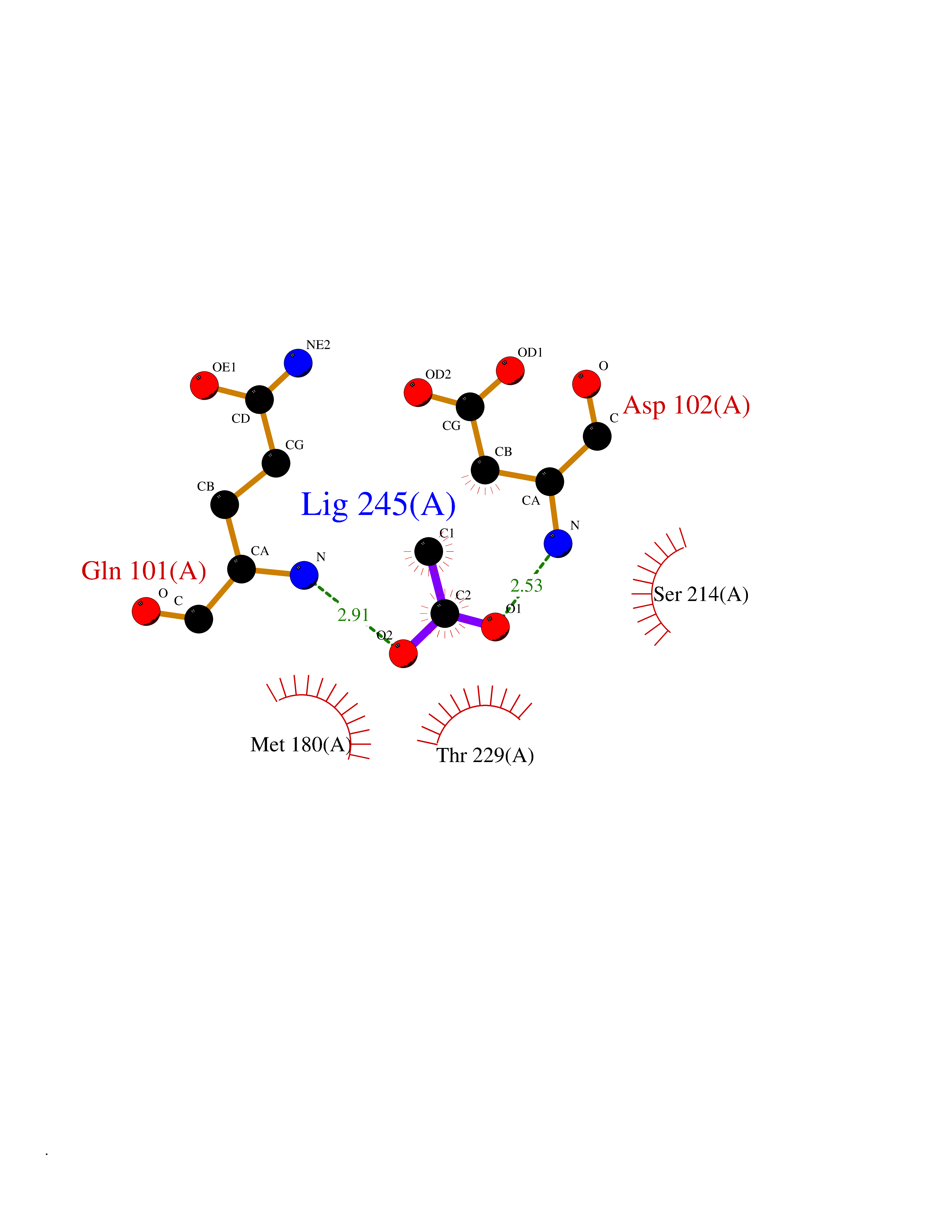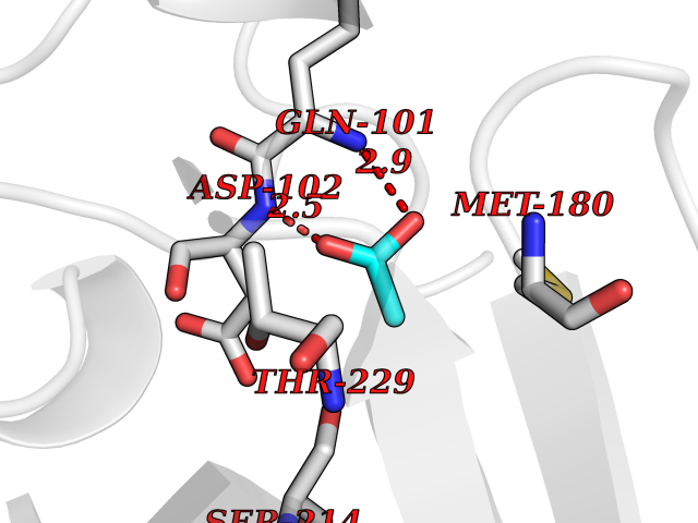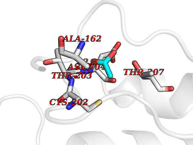 Target general information Gen name ache Organism Tetronarce californica (Pacific electric ray) (Torpedo californica) Uniprot ID TTD ID NA Synonyms NA Protein family Type-B carboxylesterase/lipase family Biochemical class NA Function Terminates signal transduction at the neuromuscular junction by rapid hydrolysis of the acetylcholine released into the synaptic cleft. May be involved in cell-cell interactions. Related diseases Noonan syndrome 5 (NS5) [MIM:611553]: A form of Noonan syndrome, a disease characterized by short stature, facial dysmorphic features such as hypertelorism, a downward eyeslant and low-set posteriorly rotated ears, and a high incidence of congenital heart defects and hypertrophic cardiomyopathy. Other features can include a short neck with webbing or redundancy of skin, deafness, motor delay, variable intellectual deficits, multiple skeletal defects, cryptorchidism, and bleeding diathesis. Individuals with Noonan syndrome are at risk of juvenile myelomonocytic leukemia, a myeloproliferative disorder characterized by excessive production of myelomonocytic cells. {ECO:0000269|PubMed:17603482, ECO:0000269|PubMed:17603483, ECO:0000269|PubMed:20683980}. The disease is caused by variants affecting the gene represented in this entry.; DISEASE: LEOPARD syndrome 2 (LPRD2) [MIM:611554]: A disorder characterized by lentigines, electrocardiographic conduction abnormalities, ocular hypertelorism, pulmonic stenosis, abnormalities of genitalia, retardation of growth, and sensorineural deafness. {ECO:0000269|PubMed:17603483}. The disease is caused by variants affecting the gene represented in this entry.; DISEASE: Cardiomyopathy, dilated, 1NN (CMD1NN) [MIM:615916]: A disorder characterized by ventricular dilation and impaired systolic function, resulting in congestive heart failure and arrhythmia. Patients are at risk of premature death. {ECO:0000269|PubMed:24777450}. The disease is caused by variants affecting the gene represented in this entry. Drugs (DrugBank ID) NA Interacts with NA EC number 3.1.1.7 Uniprot keywords 3D-structure; Alternative splicing; Cell membrane; Direct protein sequencing; Disulfide bond; Glycoprotein; GPI-anchor; Hydrolase; Lipoprotein; Membrane; Neurotransmitter degradation; Serine esterase; Signal; Synapse Protein physicochemical properties Chain ID A Molecular weight (Da) 59779.2 Length 529 Aromaticity 0.12 Instability index 48.49 Isoelectric point 5.8 Charge (pH=7) -8.48 3D Binding mode Sequence SELLVNTKSGKVMGTRVPVLSSHISAFLGIPFAEPPVGNMRFRRPEPKKPWSGVWNASTYPNNCQQYVDEQFPGFSGSEMWNPNREMSEDCLYLNIWVPSPRPKSTTVMVWIYGGGFYSGSSTLDVYNGKYLAYTEEVVLVSLSYRVGAFGFLALHGSQEAPGNVGLLDQRMALQWVHDNIQFFGGDPKTVTIFGESAGGASVGMHILSPGSRDLFRRAILQSGSPNCPWASVSVAEGRRRAVELGRNLNCNLNSDEELIHCLREKKPQELIDVEWNVLPFDSIFRFSFVPVIDGEFFPTSLESMLNSGNFKKTQILLGVNKDEGSFFLLYGAPGFSKDSESKISREDFMSGVKLSVPHANDLGLDAVTLQYTDWMDDNNGIKNRDGLDDIVGDHNVICPLMHFVNKYTKFGNGTYLYFFNHRASNLVWPEWMGVIHGYEIEFVFGLPLVKELNYTAEEEALSRRIMHYWATFAKTGNPNEPESKWPLFTTKEQKFIDLNTEPMKVHQRLRVQMCVFWNQFLPKLLNAT Hydrogen bonds contact Hydrophobic contact | ||||