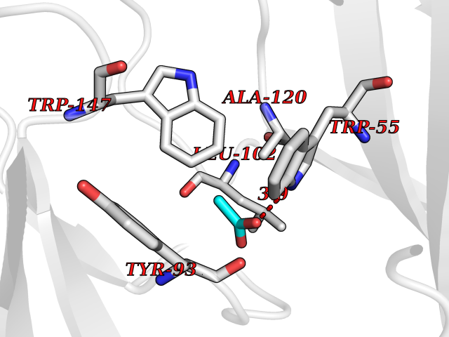 Target general information Gen name pelA Organism Niveispirillum irakense (Azospirillum irakense) Uniprot ID TTD ID NA Synonyms NA Protein family NA Biochemical class Lyase Function Lyase activity. Related diseases A chromosomal aberration involving ALK is found in a form of non-Hodgkin lymphoma. Translocation t(2;5)(p23;q35) with NPM1. The resulting chimeric NPM1-ALK protein homodimerize and the kinase becomes constitutively activated. The constitutively active fusion proteins are responsible for 5-10% of non-Hodgkin lymphomas. {ECO:0000269|PubMed:15938644}.; DISEASE: A chromosomal aberration involving ALK is associated with inflammatory myofibroblastic tumors (IMTs). Translocation t(2;11)(p23;p15) with CARS; translocation t(2;4)(p23;q21) with SEC31A. {ECO:0000269|PubMed:12112524, ECO:0000269|PubMed:16161041}.; DISEASE: A chromosomal aberration involving ALK is associated with anaplastic large-cell lymphoma (ALCL). Translocation t(2;17)(p23;q25) with ALO17. {ECO:0000269|PubMed:12112524}.; DISEASE: Neuroblastoma 3 (NBLST3) [MIM:613014]: A common neoplasm of early childhood arising from embryonic cells that form the primitive neural crest and give rise to the adrenal medulla and the sympathetic nervous system. {ECO:0000269|PubMed:18724359, ECO:0000269|PubMed:18923523, ECO:0000269|PubMed:18923525, ECO:0000269|PubMed:21242967, ECO:0000269|PubMed:22932897}. Disease susceptibility is associated with variants affecting the gene represented in this entry.; DISEASE: The ALK signaling pathway plays an important role in glioblastoma, the most common malignant brain tumor of adults and one of the most lethal cancers. It regulates both glioblastoma migration and growth. {ECO:0000269|PubMed:15908427}.; DISEASE: A chromosomal aberration involving ALK is found in one subject with colorectal cancer. Translocation t(2;2)(p23.1;p23.3). A 5 million base pair tandem duplication generates an in-frame WDCP-ALK gene fusion. {ECO:0000269|PubMed:22327622}.; DISEASE: A chromosomal aberration involving ALK has been identified in a subset of patients with non-small-cell lung carcinoma. This aberration leads to the production of a fusion protein between the N-terminus of EML4 et the C-terminus of ALK. It is unclear whether the fusion protein is caused by a simple inversion within 2p (inv(2)(p21p23)) or whether the chromosome translocation involving 2p is more complex. When tested in a heterologous system, the fusion protein EML4-ALK possesses transforming activity that is dependent on ALK catalytic activity, possibly due to spontaneous dimerization mediated by the EML4 moiety, leading to ALK kinase activation. {ECO:0000269|PubMed:17625570}. Drugs (DrugBank ID) NA Interacts with NA EC number NA Uniprot keywords 3D-structure; Lyase; Signal Protein physicochemical properties Chain ID A Molecular weight (Da) 41907.5 Length 384 Aromaticity 0.08 Instability index 43.72 Isoelectric point 6.11 Charge (pH=7) -3.46 3D Binding mode Sequence AVIGMNEAASALTPSRVSSLPDTQRAAWQEYLARSEAQLSRDKASLAAELAPGQPLPPPPAEGKGADTMPLDKPAAWYTSKAARHVADVIVSFQTPAGGWGKNQPRDGALRLPGQHYTGENVAKVKRDRDWHYVGTIDNDATVTEIRFLAQVVSQLAPEEAAPYRDAALKGIEYLLASQFPNGGWPQVWPLEGGYHDAITYNDDALVHVAELLSDIAAGRDGFGFVPPAIRTRALEATNAAIHCIVETQVVQDGKRLGWGQQHDALTLRPTSARNFEPAALSSTESARILLFLMEIEAPSDAVKQAIRGGVAWLNTSVIRDQGAKPLWSRFYSLDGNKPVFGDRDKTIHDDVMGISQERRTGYAWYTTSPQKALSAFTKWEKRS Hydrogen bonds contact Hydrophobic contact | ||||