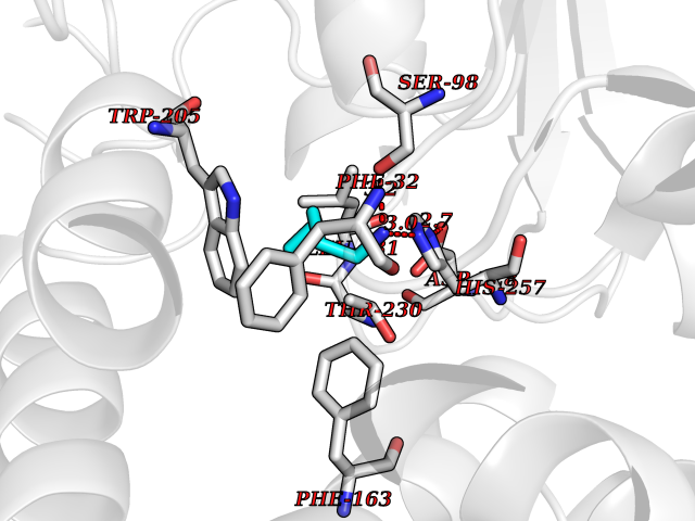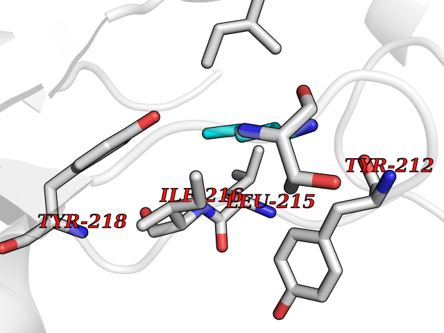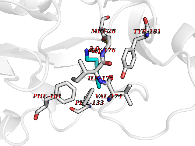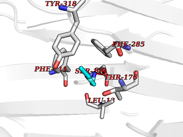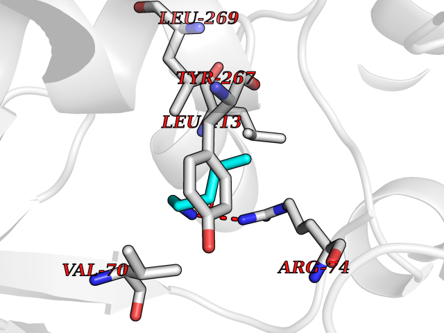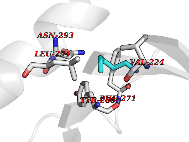 Target general information Gen name cpo Organism Kitasatospora aureofaciens (Streptomyces aureofaciens) Uniprot ID TTD ID NA Synonyms cpoT Protein family AB hydrolase superfamily, Bacterial non-heme haloperoxidase / perhydrolase family Biochemical class Haloperoxidase Function Chloride peroxidase activity. Related diseases Hypervalinemia and hyperleucine-isoleucinemia (HVLI) [MIM:618850]: An autosomal recessive metabolic disorder characterized by highly elevated plasma concentrations of valine and leucine/isoleucine. Affected individuals suffer from headache and mild memory impairment. {ECO:0000269|PubMed:25653144}. The disease is caused by variants affecting the gene represented in this entry. A patient with hypervalinemia and hyperleucine-isoleucinemia was identified as compound heterozygote for Gln-170 (inherited from his father) and Lys-264 (inherited from his mother), both variants reduced the catalytic activity of the enzyme. After treatment with vitamin B6, a precursor of pyridoxal 5'-phosphate, a BCAT2 cofactor, the blood levels of branched chain amino acids, especially valine, were decreased and brain lesions were improved. {ECO:0000269|PubMed:25653144}. Drugs (DrugBank ID) DB03793 Interacts with NA EC number 1.11.1.- Uniprot keywords 3D-structure; Chloride; Oxidoreductase; Peroxidase Protein physicochemical properties Chain ID A,B Molecular weight (Da) 60428.4 Length 554 Aromaticity 0.13 Instability index 31.26 Isoelectric point 4.65 Charge (pH=7) -32.72 3D Binding mode Sequence PFITVGQENSTSIDLYYEDHGAGQPVVLIHGFPLSGHSWERQSAALLDAGYRVITYDRRGFGQSSQPTTGYDYDTFAADLNTVLETLDLQDAVLVGFSMGTGEVARYVSSYGTARIAKVAFLASLEPFLLKTDDNPDGAAPKEFFDGIVAAVKADRYAFYTGFFNDFYNLDENLGTRISEEAVRNSWNTAASGGFFAAAAAPTTWYTDFRADIPRIDVPALILHGTGDRTLPIENTARVFHKALPSAEYVEVEGAPHGLLWTHAEEVNTALLAFLAKPFITVGQENSTSIDLYYEDHGAGQPVVLIHGFPLSGHSWERQSAALLDAGYRVITYDRRGFGQSSQPTTGYDYDTFAADLNTVLETLDLQDAVLVGFSMGTGEVARYVSSYGTARIAKVAFLASLEPFLLKTDDNPDGAAPKEFFDGIVAAVKADRYAFYTGFFNDFYNLDENLGTRISEEAVRNSWNTAASGGFFAAAAAPTTWYTDFRADIPRIDVPALILHGTGDRTLPIENTARVFHKALPSAEYVEVEGAPHGLLWTHAEEVNTALLAFLAK Hydrogen bonds contact Hydrophobic contact | ||||