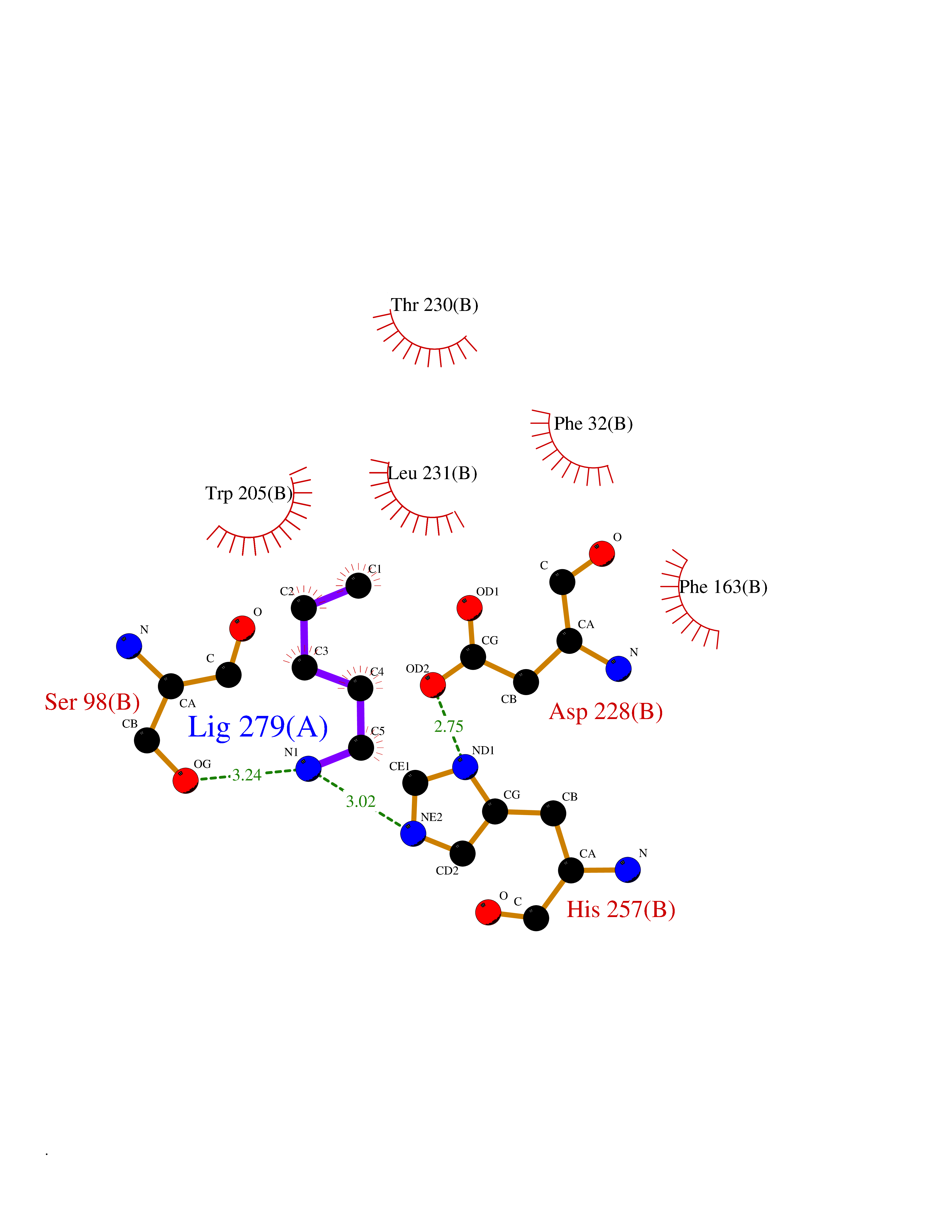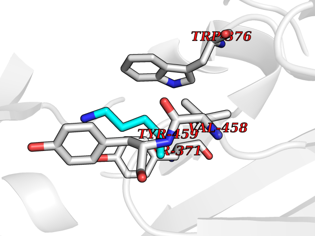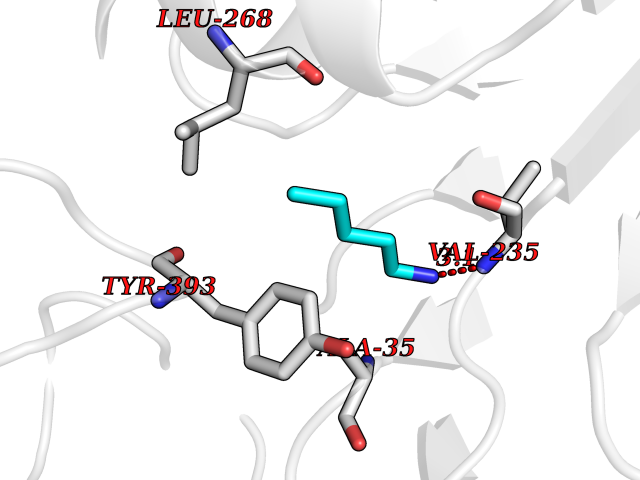 Target general information Gen name AOC1 Organism Homo sapiens (Human) Uniprot ID TTD ID Synonyms Kidney amine oxidase; KAO; Histaminase; Amiloride-binding protein; AOC1; ABP Protein family Copper/topaquinone oxidase family Biochemical class CH-NH(2) donor oxidoreductase Function Catalyzes the degradation of compounds such as putrescine, histamine, spermine, and spermidine, substances involved in allergic and immune responses, cell proliferation, tissue differentiation, tumor formation, and possibly apoptosis. Placental DAO is thought to play a role in the regulation of the female reproductive function. Related diseases Lichtenstein-Knorr syndrome (LIKNS) [MIM:616291]: An autosomal recessive neurologic disorder characterized by progressive cerebellar ataxia and severe progressive sensorineural hearing loss. {ECO:0000269|PubMed:25205112, ECO:0000269|PubMed:30237576}. The disease is caused by variants affecting the gene represented in this entry. Drugs (DrugBank ID) DB00594; DB01373; DB09130; DB03608; DB05383 Interacts with Q15038; O75593; Q8IUC2; Q96HA8; Q7Z3K3; Q6ZRY4; Q01085-2; O43711; Q96K80 EC number EC 1.4.3.22 Uniprot keywords 3D-structure; Alternative splicing; Calcium; Cell membrane; Copper; Direct protein sequencing; Disulfide bond; Glycoprotein; Heparin-binding; Membrane; Metal-binding; Oxidoreductase; Proteomics identification; Reference proteome; Secreted; Signal; TPQ Protein physicochemical properties Chain ID A,B Molecular weight (Da) 69037.3 Length 607 Aromaticity 0.13 Instability index 43.33 Isoelectric point 6.52 Charge (pH=7) -4.61 3D Binding mode Sequence RKAGVFSDLSNQELKAVHSFLWSKKELRLQPSSTTTMAKNTVFLIEMLLPKKYHVLRFLDKGERHPVREARAVIFFGDQEHPNVTEFAVGPLPGPCYMRALSPRPGYQSSWASRPISTAEYALLYHTLQEATKPLHQFFLNTTGFSFQDCHDRCLAFTDVAPRGVASGQRRSWLIIQRYVEGYFLHPTGLELLVDHGSTDAGHWAVEQVWYNGKFYGSPEELARKYADGEVDVVVLEPPLFSSLVQPHGPRFRLEGNAVLYGGWSFAFRLRSSSGLQVLNVHFGGERIAYEVSVQEAVALYGGHTPAGMQTKYLDVGWGLGSVTHELAPGIDCPETATFLDTFHYYDADDPVHYPRALCLFEMPTGVPLKGQVLVLRTTSTVYNXDYIWDFIFYPNGVMEAKMHATGYVHATFYTPEGLRHGTRLHTHLIGNIHTHLVHYRVDLDVAGTKNSFQTLQYSWERQAAFRFKRKLPKYLLFTSPQENPWGHKRSYRLQIHSMADQVLPPGWQEEQAITWARYPLAVTKYRESELCSSSIYHQNDPWDPPVVFEQFLHNNENIENEDLVAWVTVGFLHIPHSEDIPNTATPGNSVGFLLRPFNFNGTYRPV Hydrogen bonds contact Hydrophobic contact | ||||