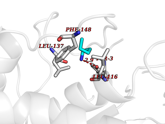 Target general information Gen name Pseudo LasR Organism Pseudomonas aeruginosa (strain ATCC 15692 / DSM 22644 / CIP 104116 / JCM 14847 / LMG 12228 / 1C / PRS 101 / PAO1) Uniprot ID TTD ID Synonyms NA Protein family Autoinducer-regulated transcriptional regulatory protein family Biochemical class NA Function Transcriptional activator of elastase structural gene (LasB). Binds to the PAI autoinducer. Related diseases Growth hormone deficiency, isolated, 1A (IGHD1A) [MIM:262400]: An autosomal recessive, severe deficiency of growth hormone leading to dwarfism. Patients often develop antibodies to administered growth hormone. {ECO:0000269|PubMed:8364549}. The disease is caused by variants affecting the gene represented in this entry.; DISEASE: Growth hormone deficiency, isolated, 1B (IGHD1B) [MIM:612781]: An autosomal recessive deficiency of growth hormone leading to short stature. Patients have low but detectable levels of growth hormone, significantly retarded bone age, and a positive response and immunologic tolerance to growth hormone therapy. {ECO:0000269|PubMed:12655557}. The disease is caused by variants affecting the gene represented in this entry.; DISEASE: Kowarski syndrome (KWKS) [MIM:262650]: A syndrome clinically characterized by short stature associated with bioinactive growth hormone, normal or slightly increased growth hormone secretion, pathologically low insulin-like growth factor 1 levels, and normal catch-up growth on growth hormone replacement therapy. {ECO:0000269|PubMed:17519310, ECO:0000269|PubMed:8552145, ECO:0000269|PubMed:9276733}. The disease is caused by variants affecting the gene represented in this entry.; DISEASE: Growth hormone deficiency, isolated, 2 (IGHD2) [MIM:173100]: An autosomal dominant deficiency of growth hormone leading to short stature. Clinical severity is variable. Patients have a positive response and immunologic tolerance to growth hormone therapy. {ECO:0000269|PubMed:11502836, ECO:0000269|PubMed:9152628}. The disease is caused by variants affecting the gene represented in this entry. Drugs (DrugBank ID) DB08324 Interacts with NA EC number NA Uniprot keywords 3D-structure; Activator; DNA-binding; Quorum sensing; Reference proteome; Transcription; Transcription regulation Protein physicochemical properties Chain ID A Molecular weight (Da) 18305.5 Length 163 Aromaticity 0.12 Instability index 46.52 Isoelectric point 5.19 Charge (pH=7) -6.78 3D Binding mode Sequence FLELERSSGKLEWSAILQKMASDLGFSKILFGLLPKDSQDYENAFIVGNYPAAWREHYDRAGYARVDPTVSHCTQSVLPIFWEPSIYQTRKQHEFFEEASAAGLVYGLTMPLHGARGELGALSLSVEAENRAEANRFMESVLPTLWMLKDYALQSGAGLAFEH Hydrogen bonds contact Hydrophobic contact | ||||