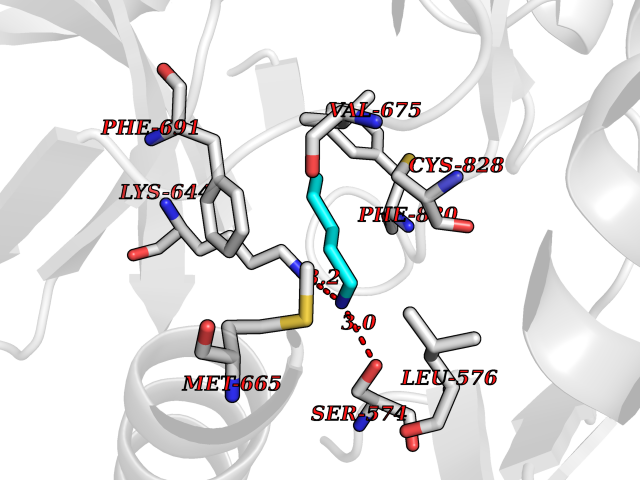 Target general information Gen name FLT3 Organism Homo sapiens (Human) Uniprot ID TTD ID Synonyms Stem cell tyrosine kinase 1; STK1; STK-1; Receptor-type tyrosine-protein kinase FLT3; Fetal liver kinase-2; FLT-3; FLK2; FLK-2; FL cytokine receptor; CD135 Protein family Protein kinase superfamily, Tyr protein kinase family, CSF-1/PDGF receptor subfamily Biochemical class Kinase Function Tyrosine-protein kinase that acts as cell-surface receptor for the cytokine FLT3LG and regulates differentiation, proliferation and survival of hematopoietic progenitor cells and of dendritic cells. Promotes phosphorylation of SHC1 and AKT1, and activation of the downstream effector MTOR. Promotes activation of RAS signaling and phosphorylation of downstream kinases, including MAPK1/ERK2 and/or MAPK3/ERK1. Promotes phosphorylation of FES, FER, PTPN6/SHP, PTPN11/SHP-2, PLCG1, and STAT5A and/or STAT5B. Activation of wild-type FLT3 causes only marginal activation of STAT5A or STAT5B. Mutations that cause constitutive kinase activity promote cell proliferation and resistance to apoptosis via the activation of multiple signaling pathways. Related diseases Leukemia, acute myelogenous (AML) [MIM:601626]: A subtype of acute leukemia, a cancer of the white blood cells. AML is a malignant disease of bone marrow characterized by maturational arrest of hematopoietic precursors at an early stage of development. Clonal expansion of myeloid blasts occurs in bone marrow, blood, and other tissue. Myelogenous leukemias develop from changes in cells that normally produce neutrophils, basophils, eosinophils and monocytes. {ECO:0000269|PubMed:11090077, ECO:0000269|PubMed:11290608, ECO:0000269|PubMed:11442493, ECO:0000269|PubMed:14504097, ECO:0000269|PubMed:16266983, ECO:0000269|PubMed:18305215, ECO:0000269|PubMed:8946930, ECO:0000269|PubMed:9737679}. The gene represented in this entry may be involved in disease pathogenesis. Somatic mutations that lead to constitutive activation of FLT3 are frequent in AML patients. These mutations fall into two classes, the most common being in-frame internal tandem duplications of variable length in the juxtamembrane region that disrupt the normal regulation of the kinase activity. Likewise, point mutations in the activation loop of the kinase domain can result in a constitutively activated kinase. Drugs (DrugBank ID) DB12742; DB12267; DB12500; DB12010; DB12141; DB06469; DB06080; DB06595; DB11763; DB09079; DB11697; DB12978; DB08901; DB15822; DB12874; DB00398; DB01268; DB05465; DB11800; DB05014 Interacts with P00519; P42684; P46108; P46109; P06241; Q13322; Q9Y6K9; P06239; P27986; P20936; P43405; Q8R4L0 EC number EC 2.7.10.1 Uniprot keywords 3D-structure; Alternative splicing; ATP-binding; Disease variant; Disulfide bond; Endoplasmic reticulum; Glycoprotein; Host-virus interaction; Immunoglobulin domain; Kinase; Membrane; Nucleotide-binding; Phosphoprotein; Proteomics identification; Proto-oncogene; Receptor; Reference proteome; Signal; Transferase; Transmembrane; Transmembrane helix; Tyrosine-protein kinase; Ubl conjugation Protein physicochemical properties Chain ID A Molecular weight (Da) 34209.2 Length 298 Aromaticity 0.14 Instability index 39.68 Isoelectric point 5.57 Charge (pH=7) -4.02 3D Binding mode Sequence YESQLQMVQVTGSSDNEYFYVDFREYEYDLKWEFPRENLEFGKVLGSGAFGKVMNATAYGISKTGVSIQVAVKMLKEREALMSELKMMTQLGSHENIVNLLGACTLSGPIYLIFEYCCYGDLLNYLRSKREKFLTFEDLLCFAYQVAKGMEFLEFKSCVHRDLAARNVLVTHGKVVKICDFGLARDIMSDSNYVVRGNARLPVKWMAPESLFEGIYTIKSDVWSYGILLWEIFSLGVNPYPGIPVDANFYKLIQNGFKMDQPFYATEEIYIIMQSCWAFDSRKRPSFPNLTSFLGCQL Hydrogen bonds contact Hydrophobic contact | ||||
