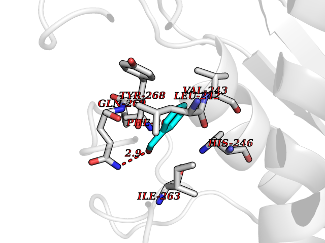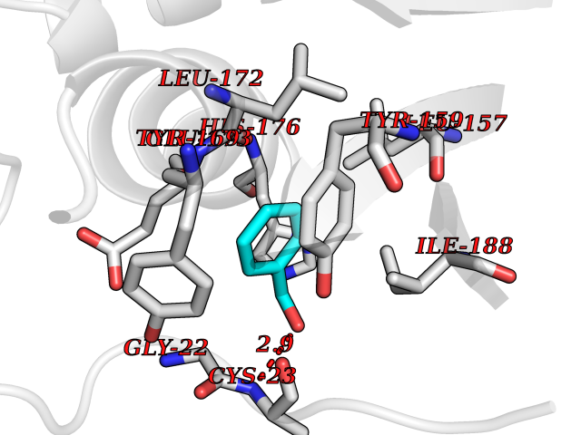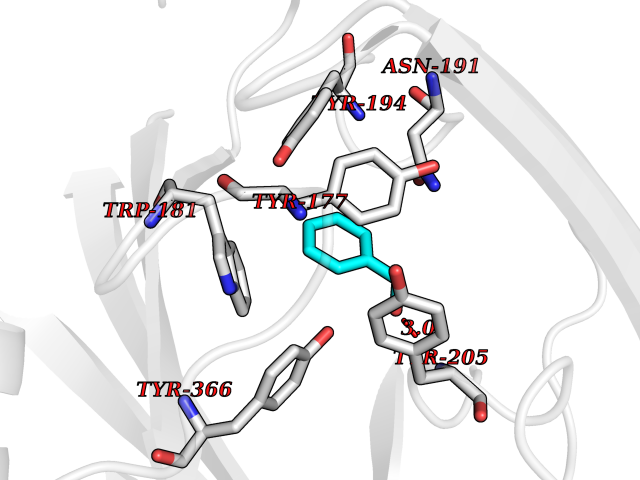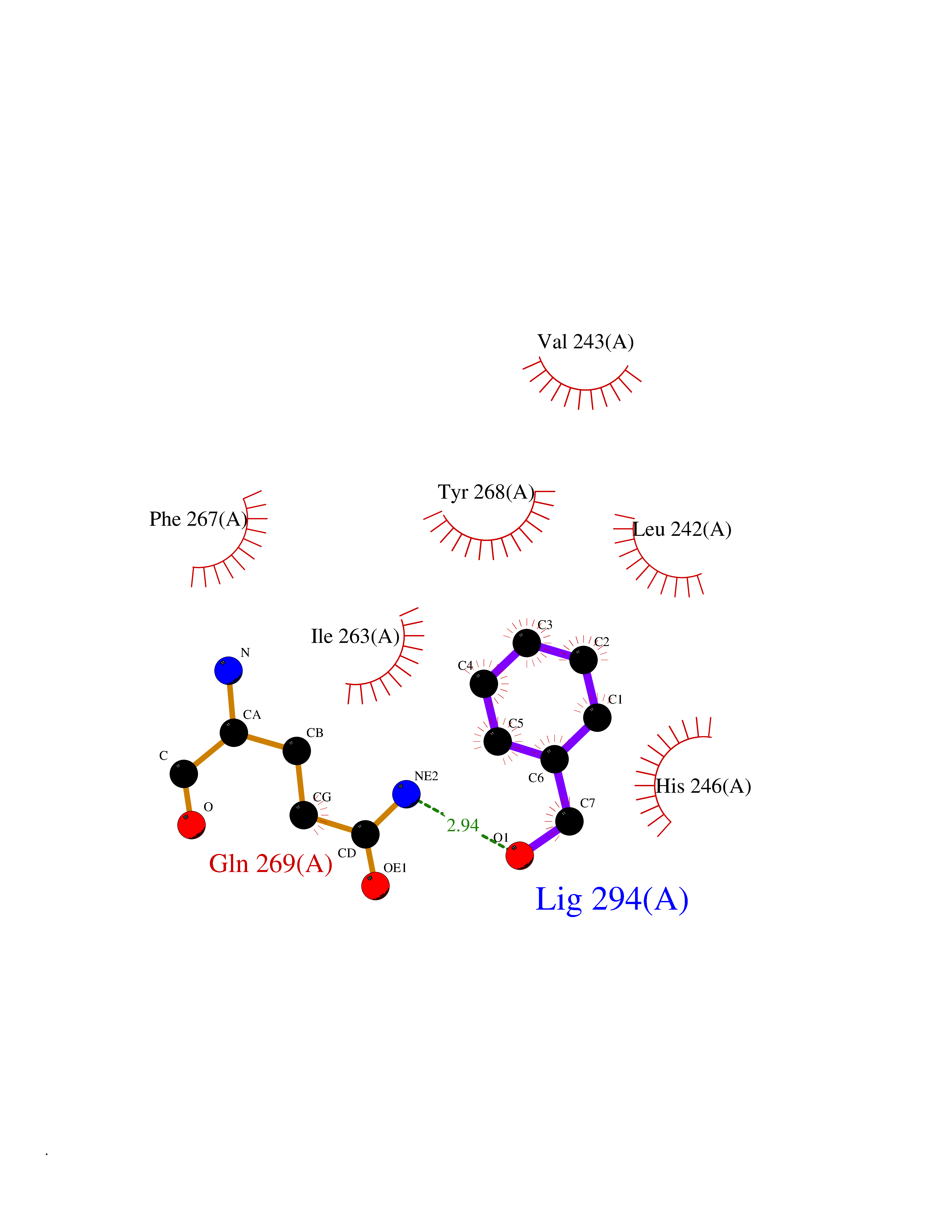 Target general information Gen name ACHE Organism Homo sapiens (Human) Uniprot ID TTD ID Synonyms YT; N-ACHE; ARACHE Protein family Type-B carboxylesterase/lipase family Biochemical class Carboxylic ester hydrolase Function Role in neuronal apoptosis. Terminates signal transduction at the neuromuscular junction by rapid hydrolysis of the acetylcholine released into the synaptic cleft. Related diseases Phosphoribosylaminoimidazole carboxylase deficiency (PAICSD) [MIM:619859]: An autosomal recessive inborn error of purine metabolism, clinically characterized by multiple congenital anomalies and early neonatal death. {ECO:0000269|PubMed:31600779}. The disease is caused by variants affecting the gene represented in this entry. Drugs (DrugBank ID) DB07846; DB02673; DB04617; DB04614; DB04615; DB07756; DB07701; DB02404; DB03814; DB08615; DB02343; DB02226; DB03005; DB04114; DB03128; DB01122; DB03283; DB00411; DB00122; DB14006; DB01245; DB00944; DB08357; DB08996; DB00449; DB00843; DB01010; DB01364; DB00898; DB00674; DB00483; DB06525; DB04864; DB03348; DB07555; DB00677; DB04924; DB03359; DB00358; DB00940; DB02825; DB02845; DB08167; DB04021; DB00805; DB01805; DB03740; DB04556; DB01400; DB04892; DB00981; DB00733; DB02166; DB00545; DB00863; DB00989; DB00382; DB04616; DB12816; DB01199; DB13503; DB04859 Interacts with Q9Y215; P06733; P63244 EC number EC 3.1.1.7 Uniprot keywords 3D-structure; Alternative splicing; Blood group antigen; Cell membrane; Direct protein sequencing; Disulfide bond; Glycoprotein; GPI-anchor; Hydrolase; Lipoprotein; Membrane; Neurotransmitter degradation; Nucleus; Proteomics identification; Reference proteome; Secreted; Serine esterase; Signal; Synapse Protein physicochemical properties Chain ID A,B Molecular weight (Da) 58804.1 Length 537 Aromaticity 0.11 Instability index 40.85 Isoelectric point 5.73 Charge (pH=7) -8.18 3D Binding mode Sequence EDAELLVTVRGGRLRGIRLKTPGGPVSAFLGIPFAEPPMGPRRFLPPEPKQPWSGVVDATTFQSVCYQYVDTLYPGFEGTEMWNPNRELSEDCLYLNVWTPYPRPTSPTPVLVWIYGGGFYSGASSLDVYDGRFLVQAERTVLVSMNYRVGAFGFLALPGSREAPGNVGLLDQRLALQWVQENVAAFGGDPTSVTLFGESAGAASVGMHLLSPPSRGLFHRAVLQSGAPNGPWATVGMGEARRRATQLAHLVGCPPGGTGGNDTELVACLRTRPAQVLVNHEWHVLPQESVFRFSFVPVVDGDFLSDTPEALINAGDFHGLQVLVGVVKDEGSYFLVYGAPGFSKDNESLISRAEFLAGVRVGVPQVSDLAAEAVVLHYTDWLHPEDPARLREALSDVVGDHNVVCPVAQLAGRLAAQGARVYAYVFEHRASTLSWPLWMGVPHGYEIEFIFGIPLDPSRNYTAEEKIFAQRLMRYWANFARTGDPNEPPKAPQWPPYTAGAQQYVSLDLRPLEVRRGLRAQACAFWNRFLPKLLSA Hydrogen bonds contact Hydrophobic contact | ||||