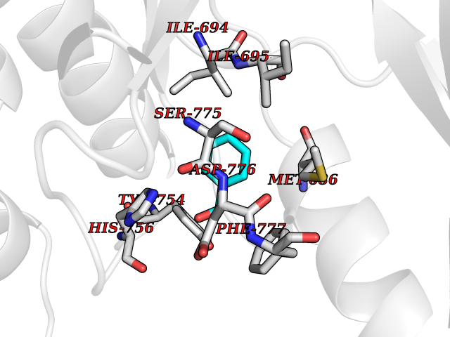 Target general information Gen name EPHB3 Organism Homo sapiens (Human) Uniprot ID TTD ID Synonyms hEK2; Tyrosine-protein kinase TYRO6; TYRO6; Embryonic kinase 2; ETK2; EPH-like tyrosine kinase 2; EPH-like kinase 2; EK2 Protein family Protein kinase superfamily, Tyr protein kinase family, Ephrin receptor subfamily Biochemical class Kinase Function The signaling pathway downstream of the receptor is referred to as forward signaling while the signaling pathway downstream of the ephrin ligand is referred to as reverse signaling. Generally has an overlapping and redundant function with EPHB2. Like EPHB2, functions in axon guidance during development regulating for instance the neurons forming the corpus callosum and the anterior commissure, 2 major interhemispheric connections between the temporal lobes of the cerebral cortex. In addition to its role in axon guidance plays also an important redundant role with other ephrin-B receptors in development and maturation of dendritic spines and the formation of excitatory synapses. Controls other aspects of development through regulation of cell migration and positioning. This includes angiogenesis, palate development and thymic epithelium development for instance. Forward and reverse signaling through the EFNB2/EPHB3 complex also regulate migration and adhesion of cells that tubularize the urethra and septate the cloaca. Finally, plays an important role in intestinal epithelium differentiation segregating progenitor from differentiated cells in the crypt. Receptor tyrosine kinase which binds promiscuously transmembrane ephrin-B family ligands residing on adjacent cells, leading to contact-dependent bidirectional signaling into neighboring cells. Related diseases A chromosomal aberration involving TRIM24/TIF1 is found in papillary thyroid carcinomas (PTCs). Translocation t(7;10)(q32;q11) with RET. The translocation generates the TRIM24/RET (PTC6) oncogene. {ECO:0000269|PubMed:10439047}. Drugs (DrugBank ID) NA Interacts with P37235; O75031 EC number EC 2.7.10.1 Uniprot keywords 3D-structure; Angiogenesis; ATP-binding; Cell membrane; Cell projection; Developmental protein; Disulfide bond; Glycoprotein; Kinase; Membrane; Neurogenesis; Nucleotide-binding; Phosphoprotein; Proteomics identification; Receptor; Reference proteome; Repeat; Signal; Transferase; Transmembrane; Transmembrane helix; Tyrosine-protein kinase; Ubl conjugation Protein physicochemical properties Chain ID A Molecular weight (Da) 30412.9 Length 267 Aromaticity 0.09 Instability index 37.42 Isoelectric point 7.74 Charge (pH=7) 1 3D Binding mode Sequence CVKIEEVIGAGEVCRGRLKQPGRREVFVAIKTLKVGYTERQRRDFLSEASIMGQFDHPNIIRLEGVVTKSRPVMILTEFMENCALDSFLRLNDGQFTVIQLVGMLRGIAAGMKYLSEMNYVHRDLAARNILVNSNLVCKVSDFGLEDDPSDPTYTSSLGGKIPIRWTAPEAIAYRKFTSASDVWSYGIVMWEVMSYGERPYWDMSNQDVINAVEQDYRLPPPMDCPTALHQLMLDCWVRDRNLRPKFSQIVNTLDKLIRNPASLKVI Hydrogen bonds contact Hydrophobic contact | ||||