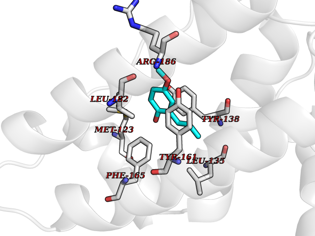 Target general information Gen name FFAR1 Organism Homo sapiens (Human) Uniprot ID TTD ID NA Synonyms GPR40 Protein family G-protein coupled receptor 1 family Biochemical class Fatty acid binding protein / hydrolase Function Bioactive lipid receptor activity.G-protein coupled receptor activity.Guanyl-nucleotide exchange factor activity.Lipid binding. Related diseases Refsum disease (RD) [MIM:266500]: A rare autosomal recessive peroxisomal disorder characterized by the accumulation of the branched-chain fatty acid, phytanic acid, in blood and tissues. Cardinal clinical features are retinitis pigmentosa, peripheral neuropathy, cerebellar ataxia, and elevated protein levels in the cerebrospinal fluid (CSF). Half of all patients exhibit generalized, mild to moderate ichthyosis resembling ichthyosis vulgaris. Less constant features are nerve deafness, anosmia, skeletal abnormalities, cataracts and cardiac impairment. {ECO:0000269|PubMed:10709665, ECO:0000269|PubMed:10767344, ECO:0000269|PubMed:14974078, ECO:0000269|PubMed:9326939, ECO:0000269|PubMed:9326940}. The disease is caused by variants affecting the gene represented in this entry. Drugs (DrugBank ID) DB00159 Interacts with NA EC number NA Uniprot keywords 3D-structure; Cell membrane; Disulfide bond; G-protein coupled receptor; Glycoprotein; Lipid-binding; Membrane; Receptor; Reference proteome; Transducer; Transmembrane; Transmembrane helix Protein physicochemical properties Chain ID A Molecular weight (Da) 28319.1 Length 272 Aromaticity 0.11 Instability index 27.3 Isoelectric point 9.07 Charge (pH=7) 6.85 3D Binding mode Sequence MDLPPQLSFGLYVAAFALGFPLNVLAIRGATAHARLRLTPSAVYALNLGCSDLLLTVSLPLKAVEALASGAWPLPASLCPVFAVAHFAPLYAGGGFLAALSAARYLGAAFPPCYSWGVCAAIWALVLCHLGLVFGLEAPGGWLDHSNTSLGINTPVNGSPVCLEAWDPASAGPARFSLSLLLFFLPLAITAFCFVGCLRALARGSLTHRRKLRAAWVAGGALLTLLLCVGPYNASNVASFLYPNLGGSWRKLGLITGAWSVVLNPLVTGYLG Hydrogen bonds contact Hydrophobic contact | ||||